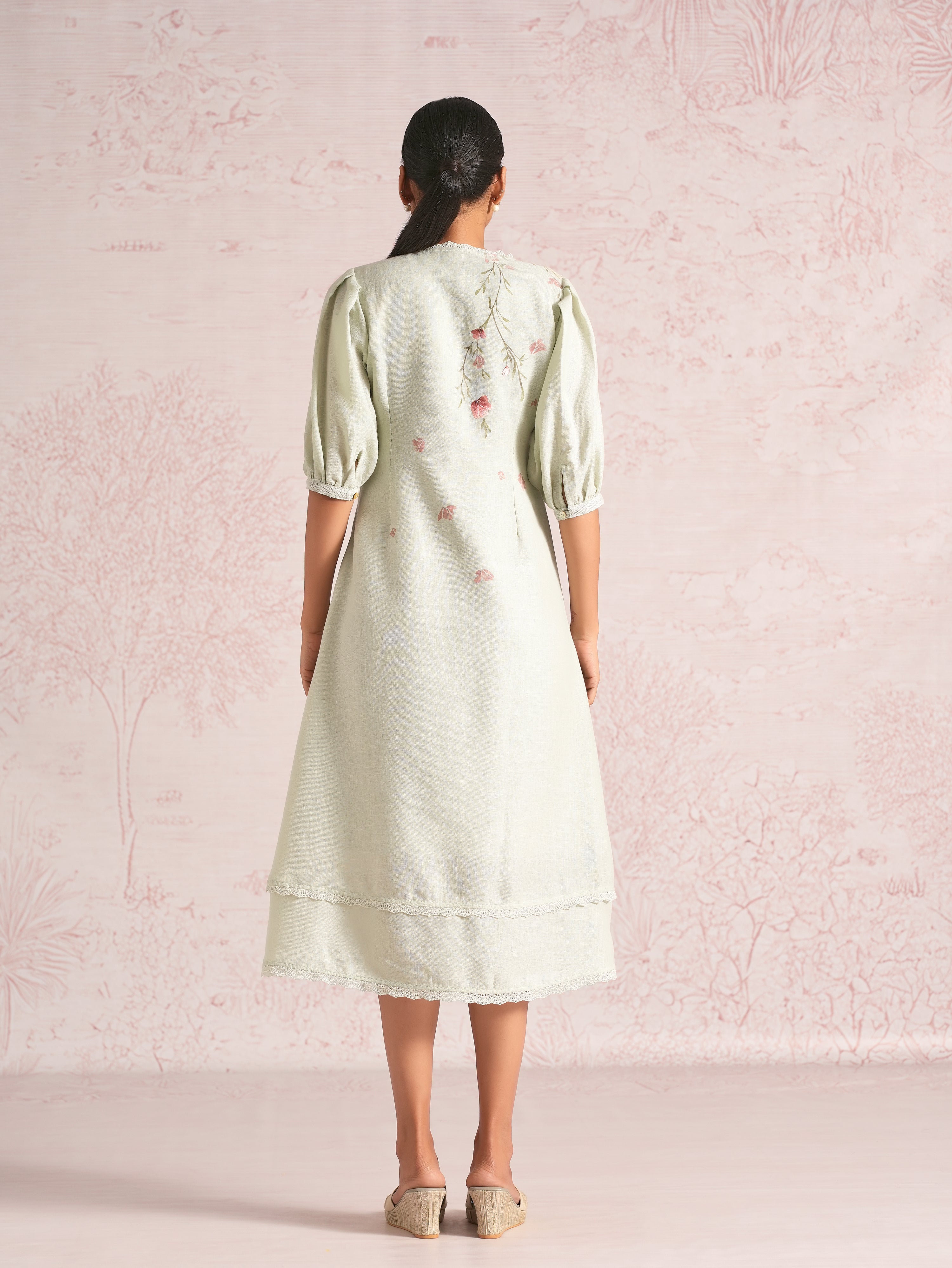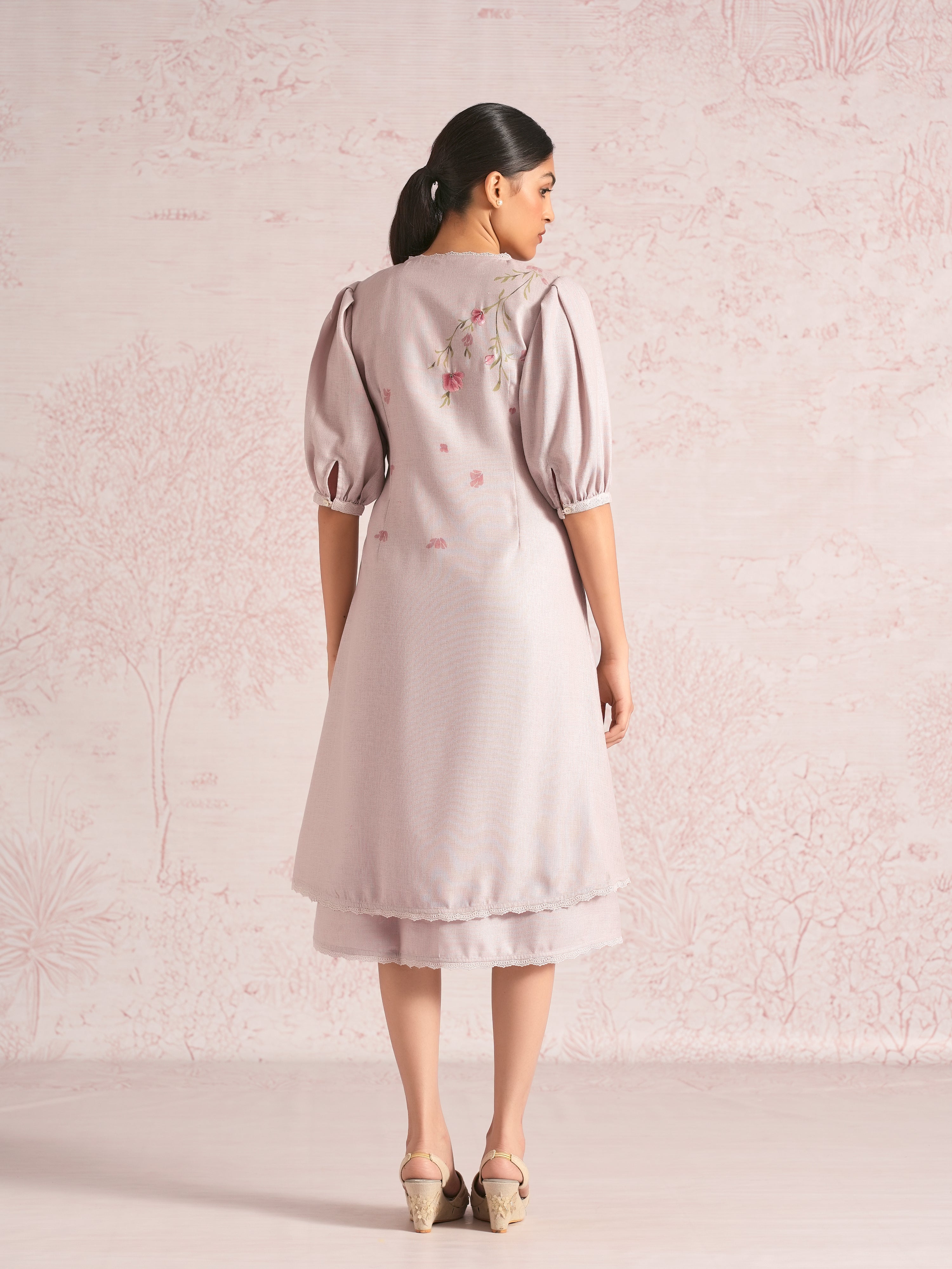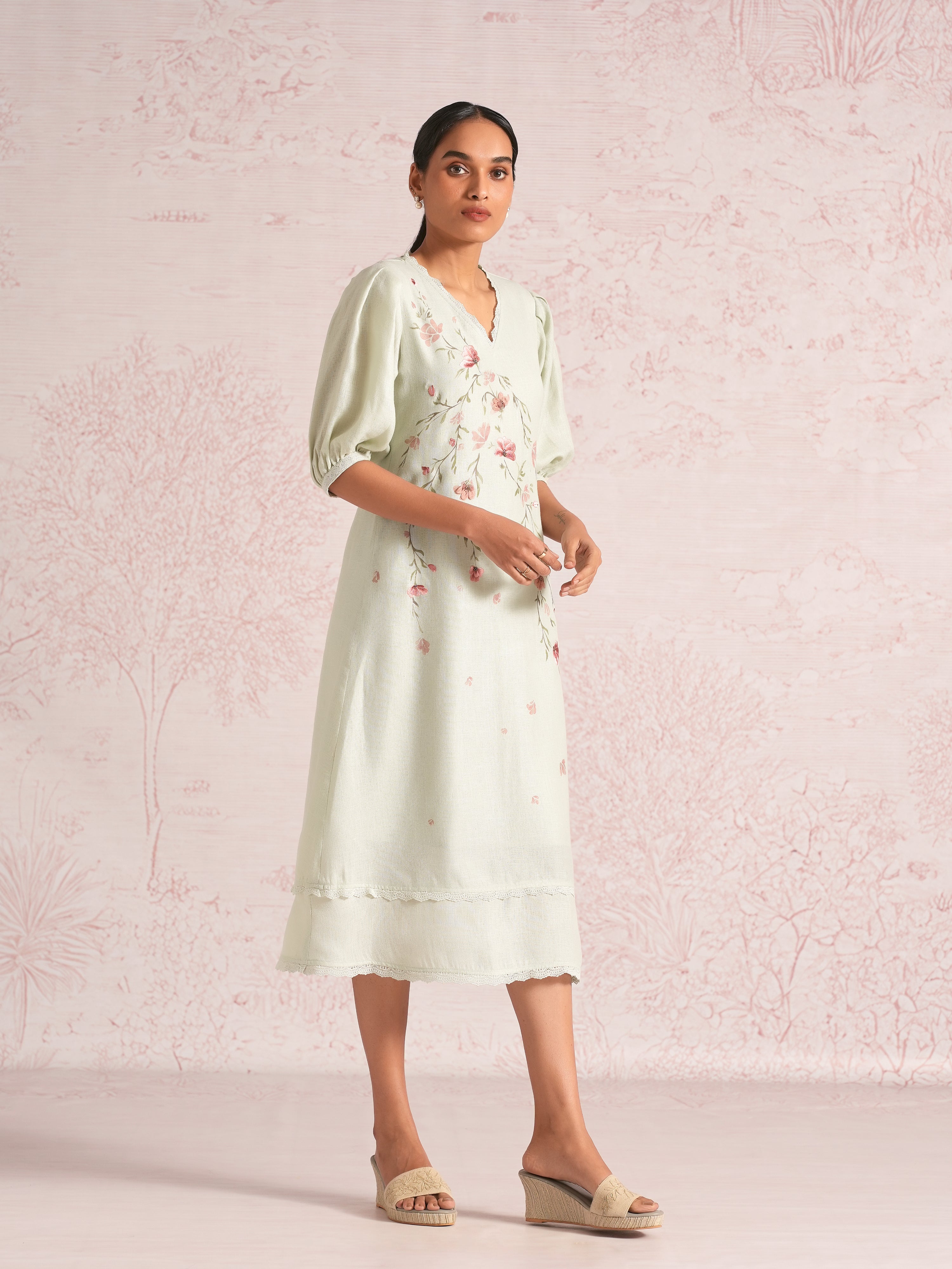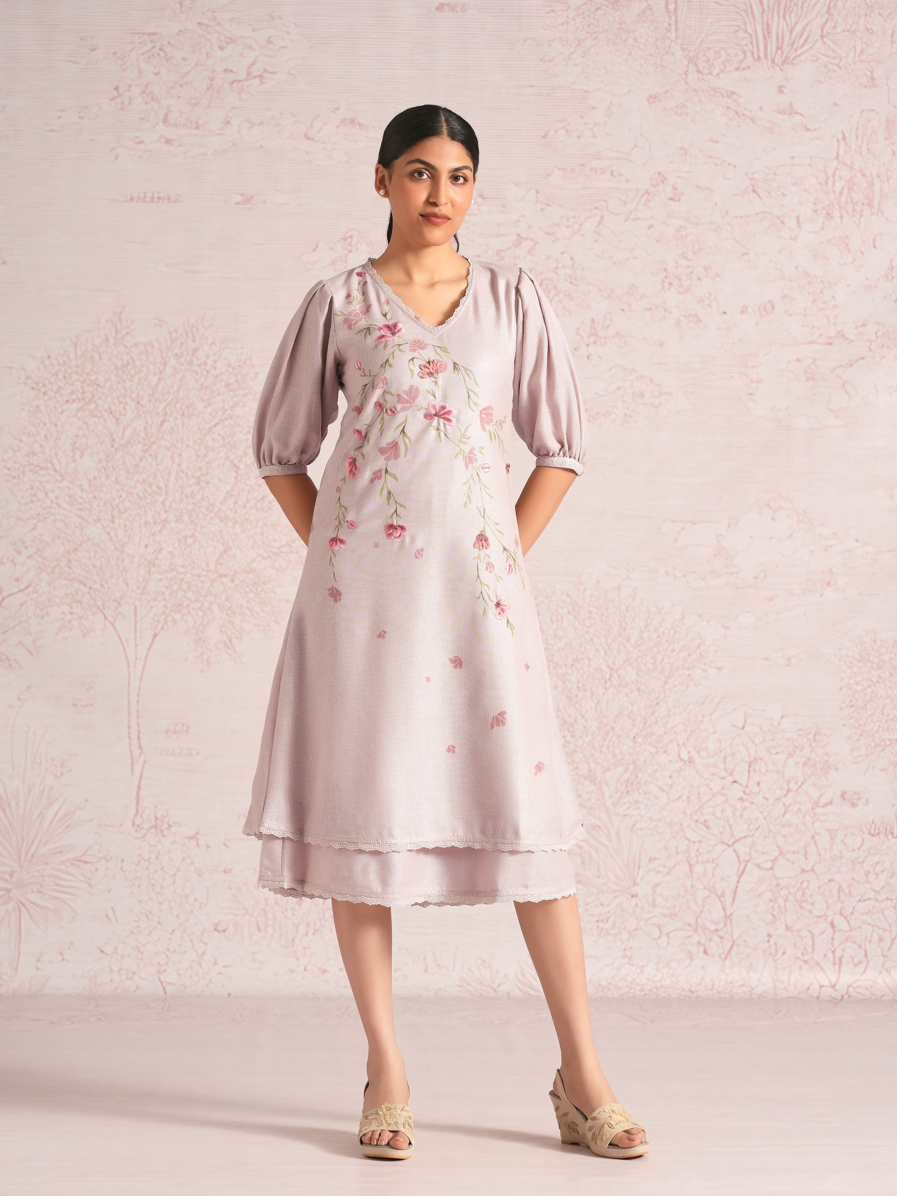 Blush Vines unfolds as a quiet ode to spring, where graceful vines wander delicately across each garment, creating a sense of natural movement and understated elegance. Soft, watercolor-washed florals lend the collection a painterly lightness, as though brushed gently onto fabric, enhancing its refined and airy character. Presented in serene hues of Bonny Green and Mauve, the palette evokes freshness, calm, and subtle romance. Feminine silhouettes such as peplum tops, tree tops, and a timeless waistcoat bring structure to the fluid compositions, striking a beautiful balance between softness and form. Light, elegant, and thoughtfully detailed, Blush Vines is designed for the spring–summer season — an effortless expression of grace, charm, and modern femininity.