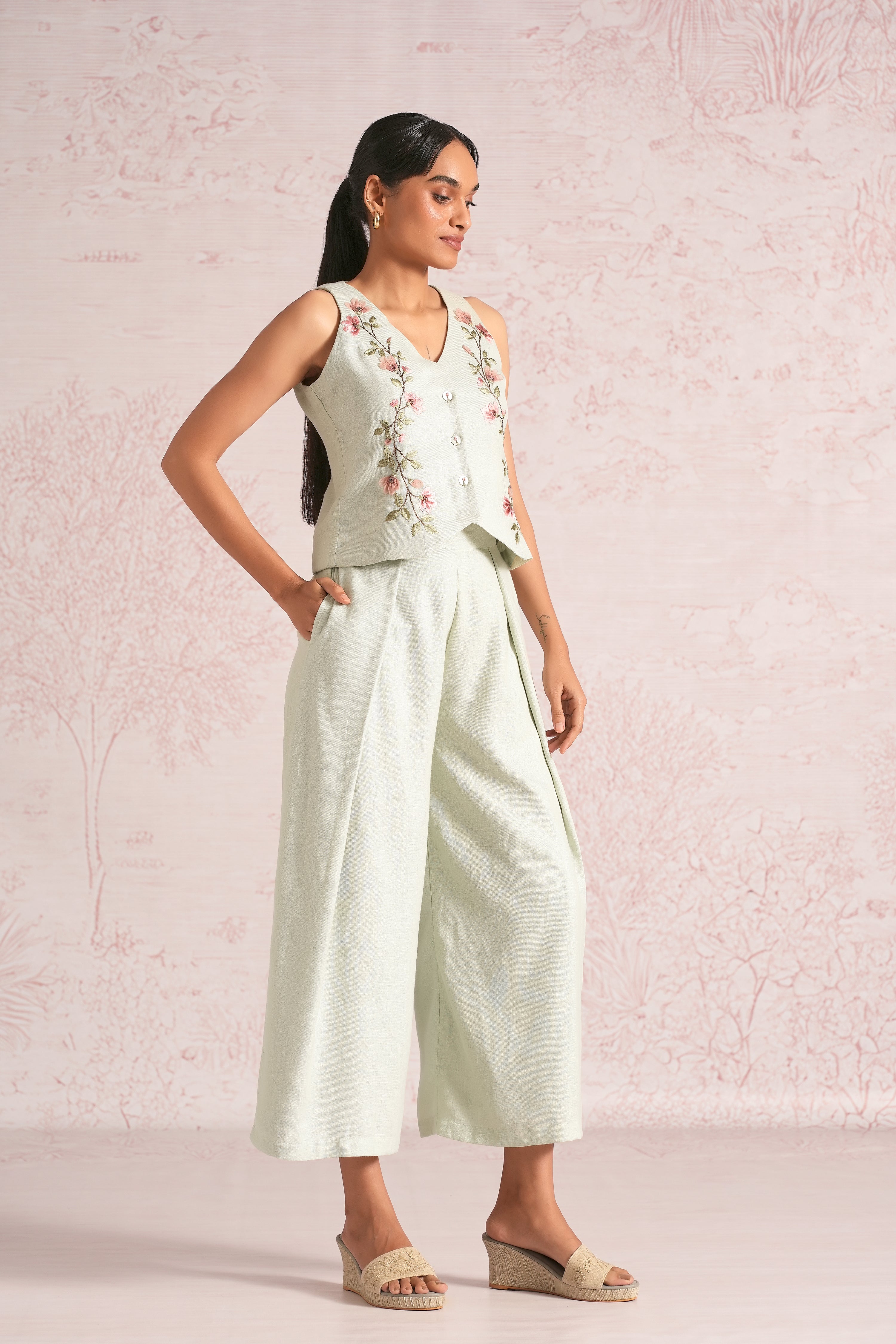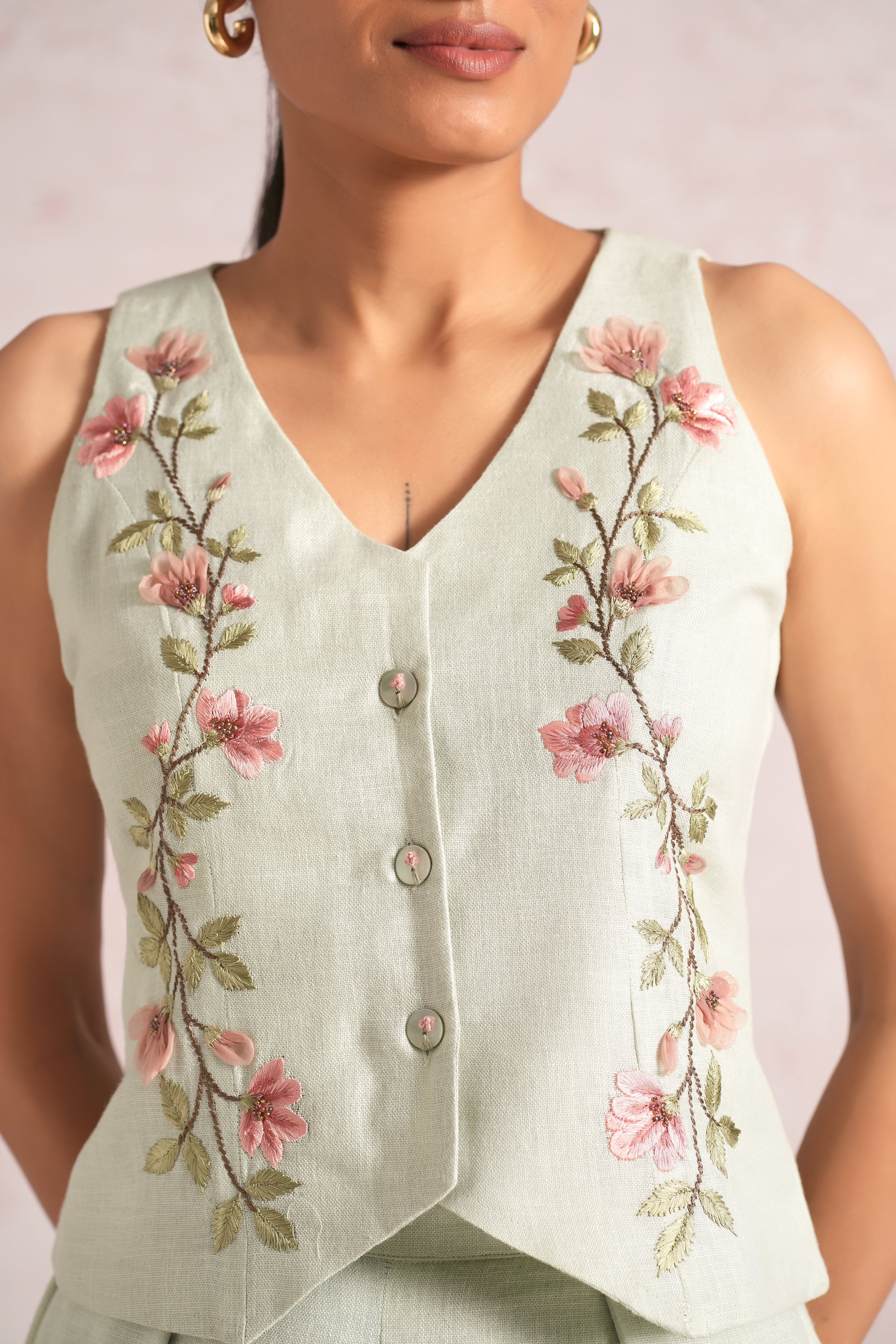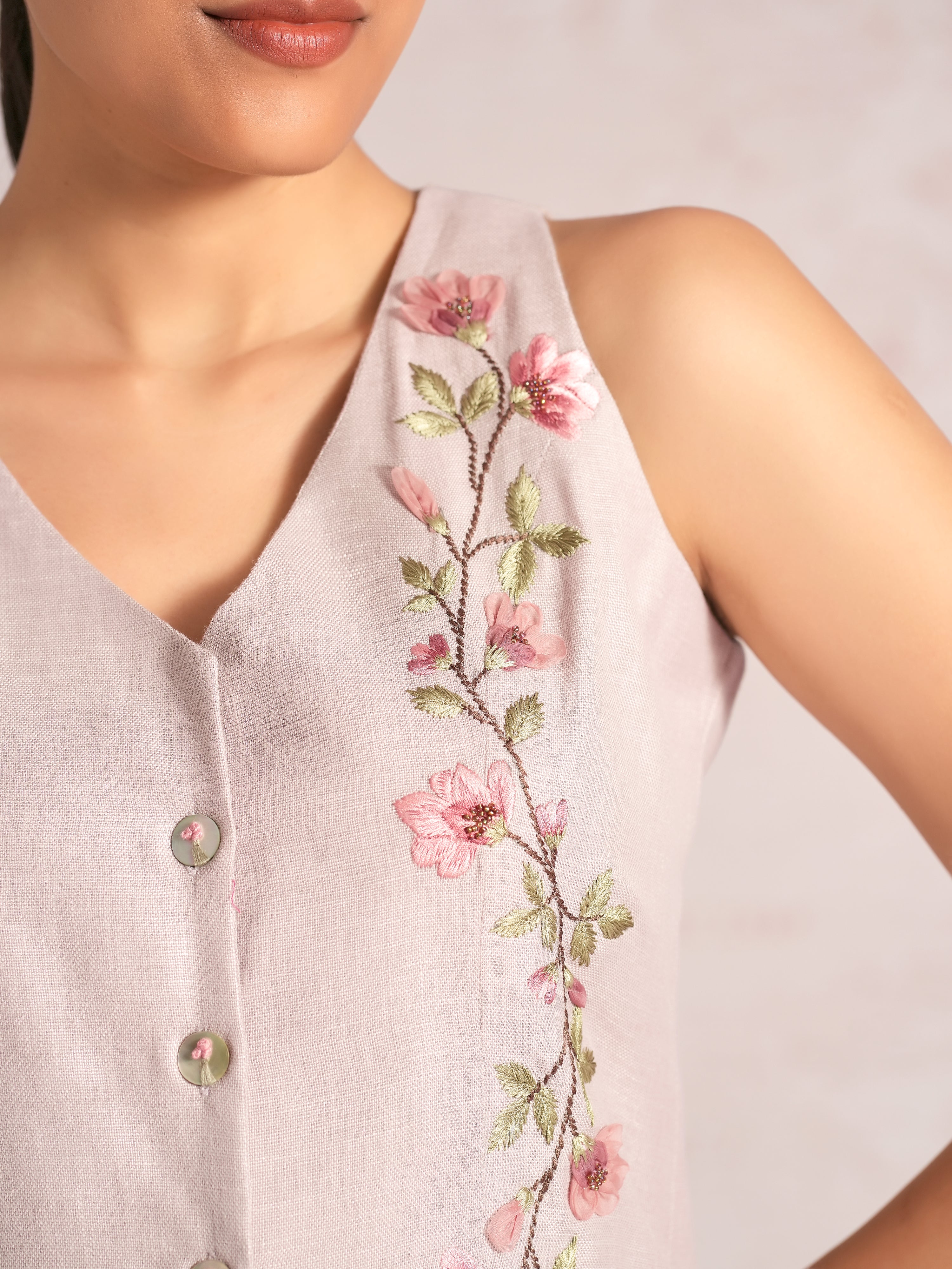 Blush Vines Waist Coat Co-ord