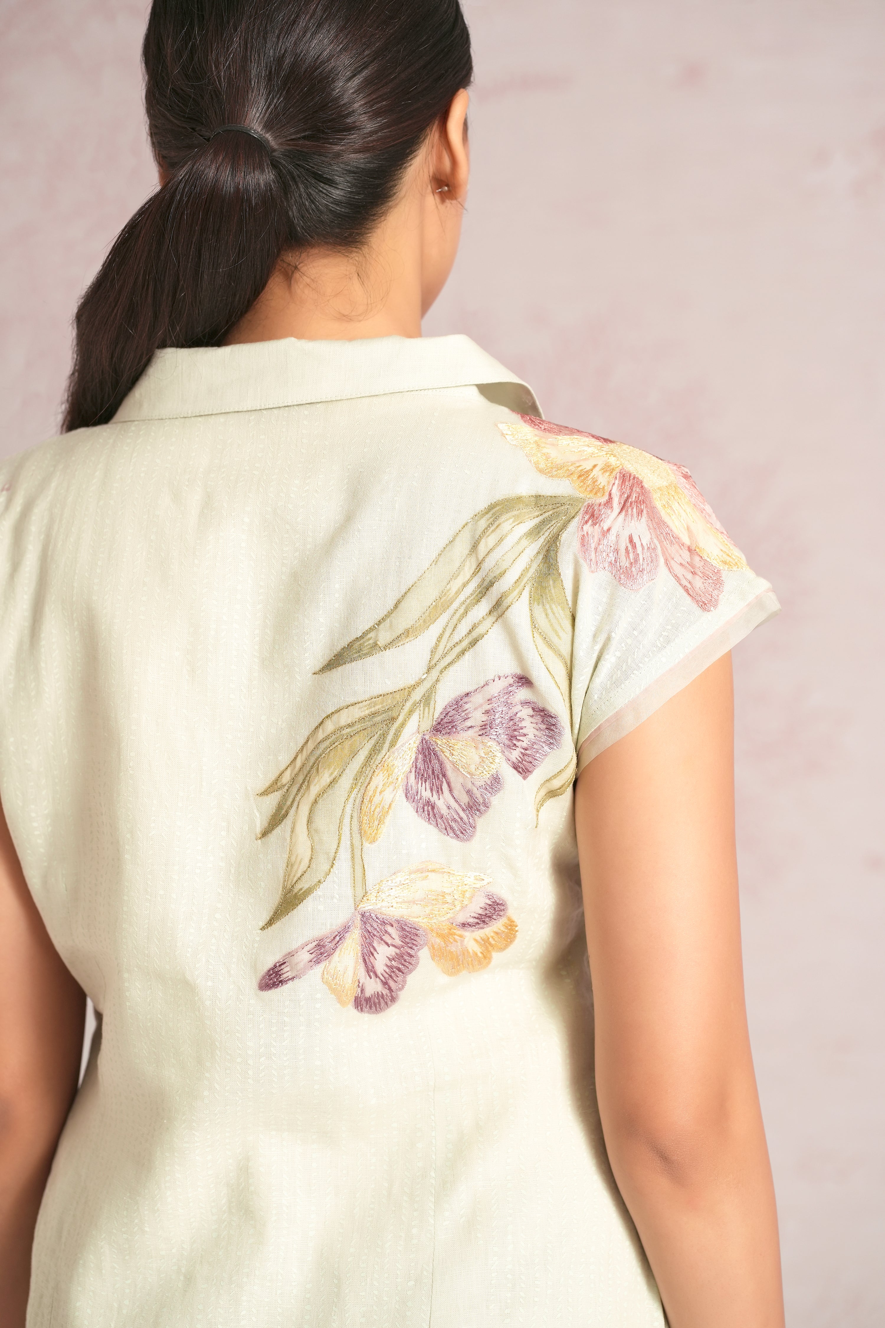Painted Petals is a delicate interplay of art and craftsmanship, where soft floral forms come alive through gentle washes of watercolor. Each petal is thoughtfully hand-painted and layered with fine embroidery stitches, adding texture, depth, and a quiet sense of dimension. Rendered in the serene hues of Bonny and Parchment, the palette enhances the collection’s light, sun-kissed elegance. The silhouettes feel airy and graceful, allowing the artwork to flow effortlessly across the garments. Refined yet expressive, the collection captures the romance of summer florals with subtle detail and timeless charm. Light, feminine, and beautifully composed, Painted Petals is designed to feel poetic, elegant, and effortlessly captivating for the season.