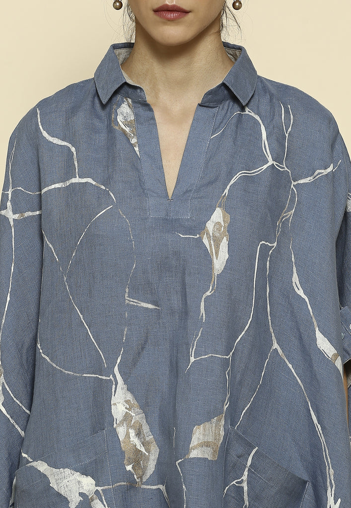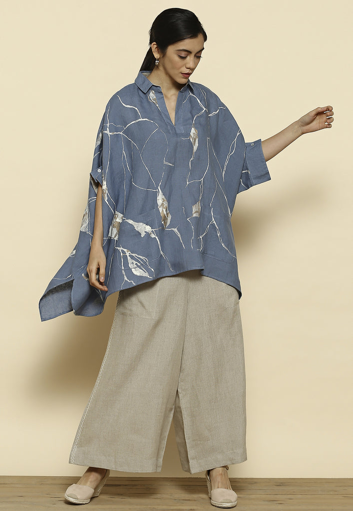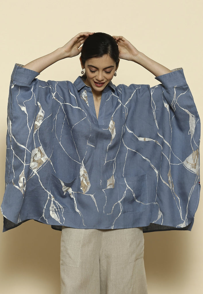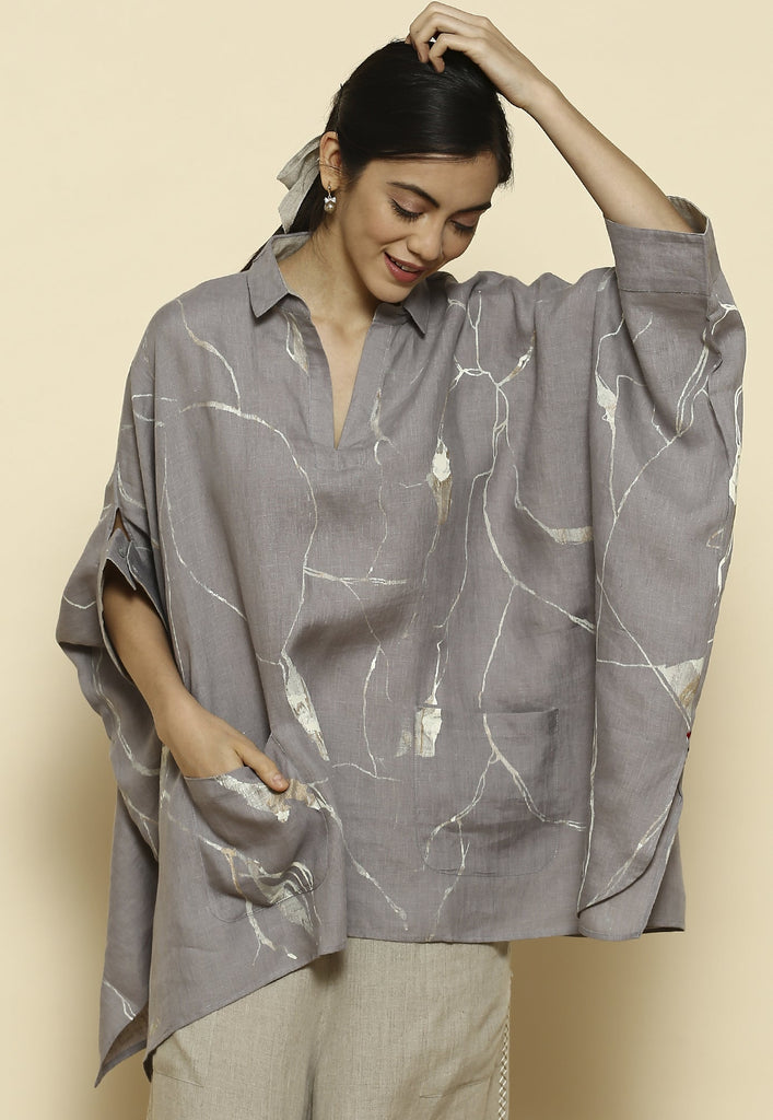 The square top with abstract print is versatile and is perfect for casual or work wear. It will see many seasons to come.