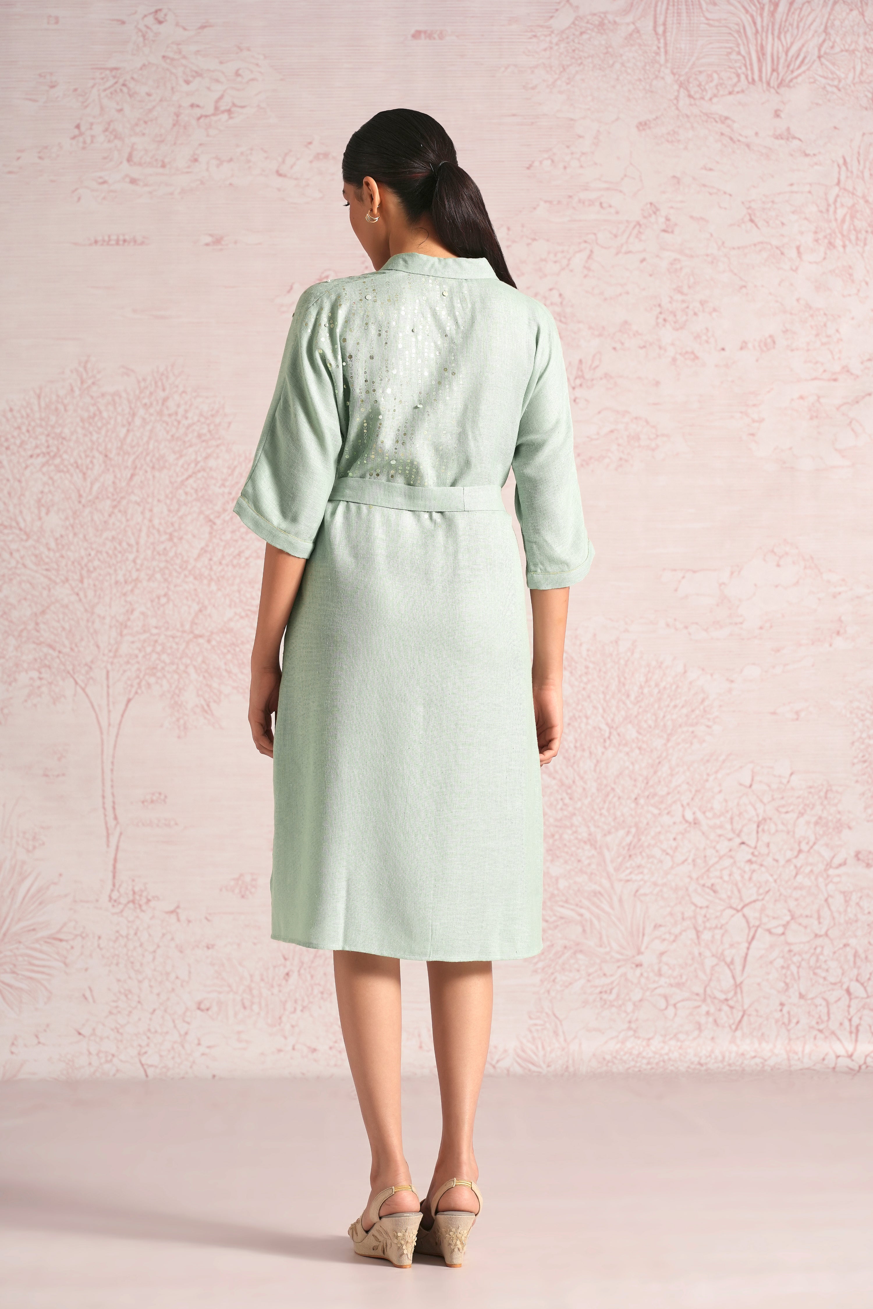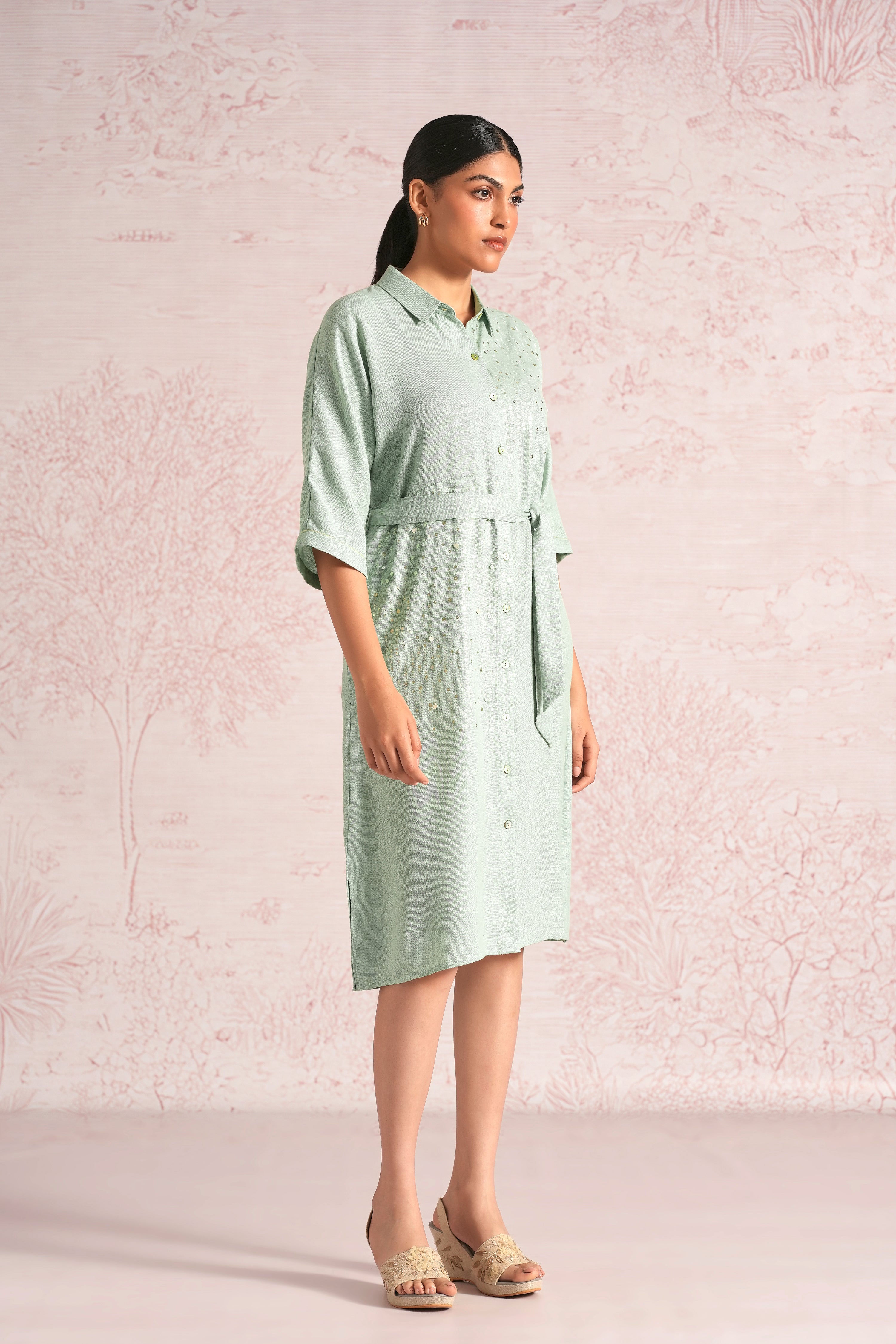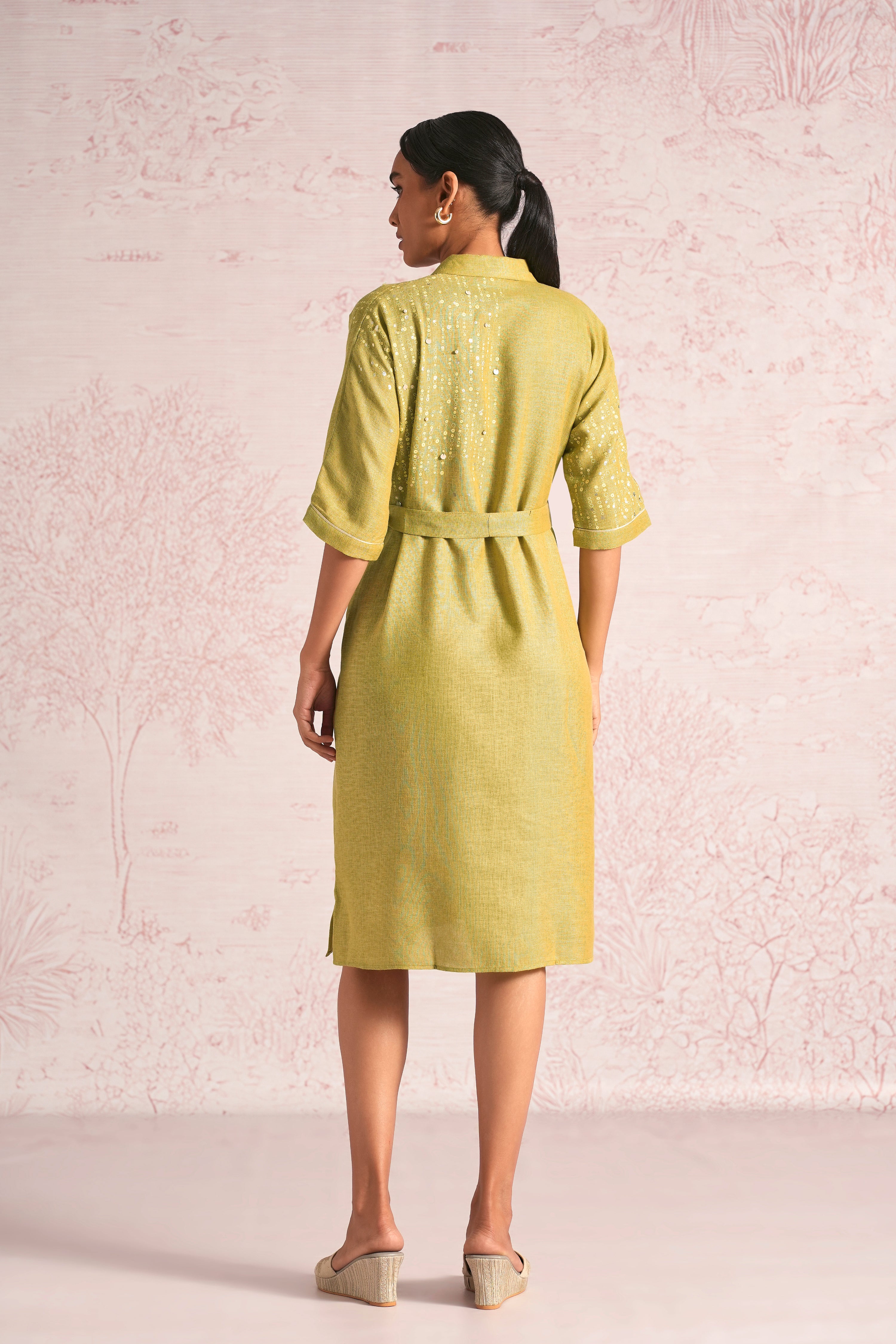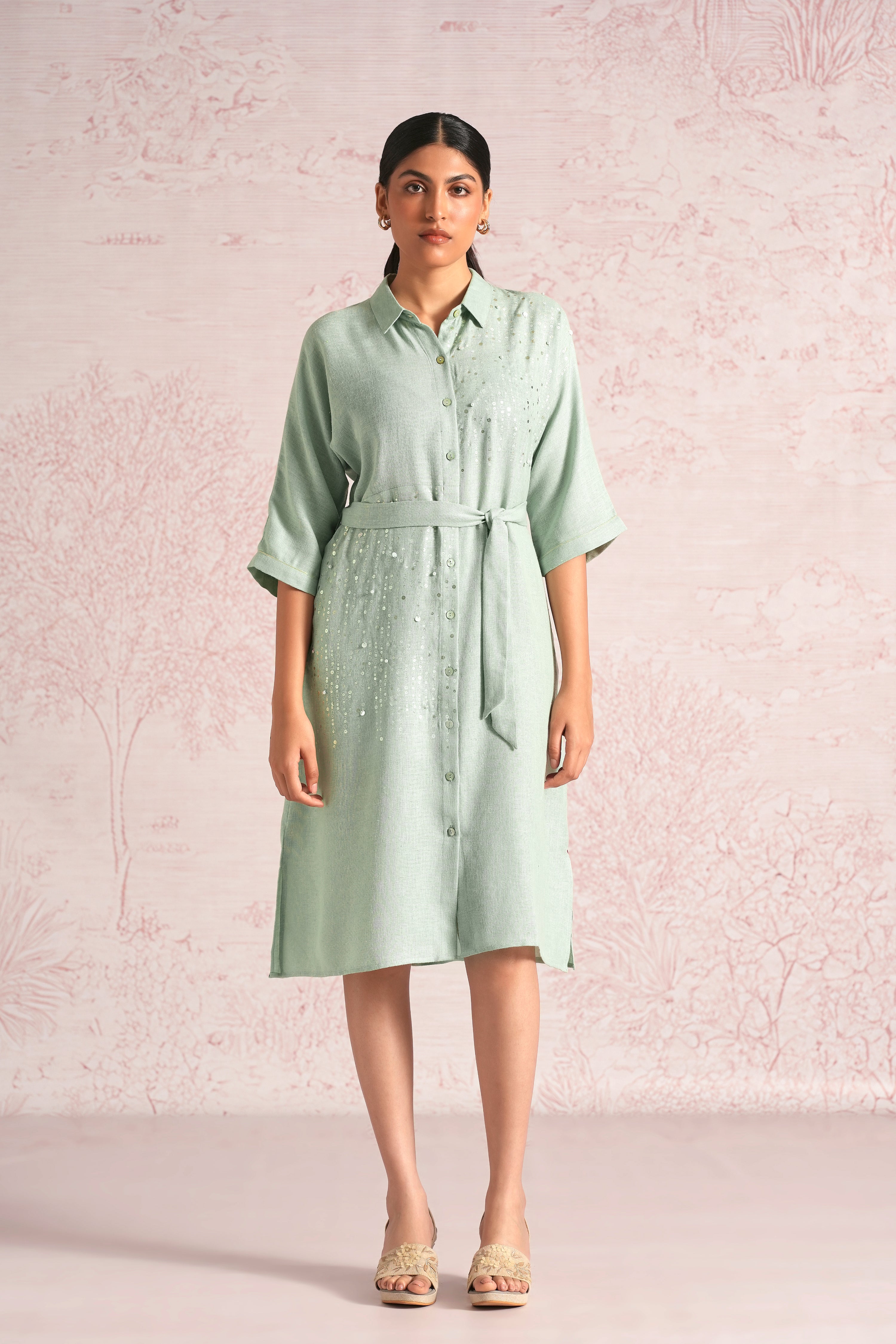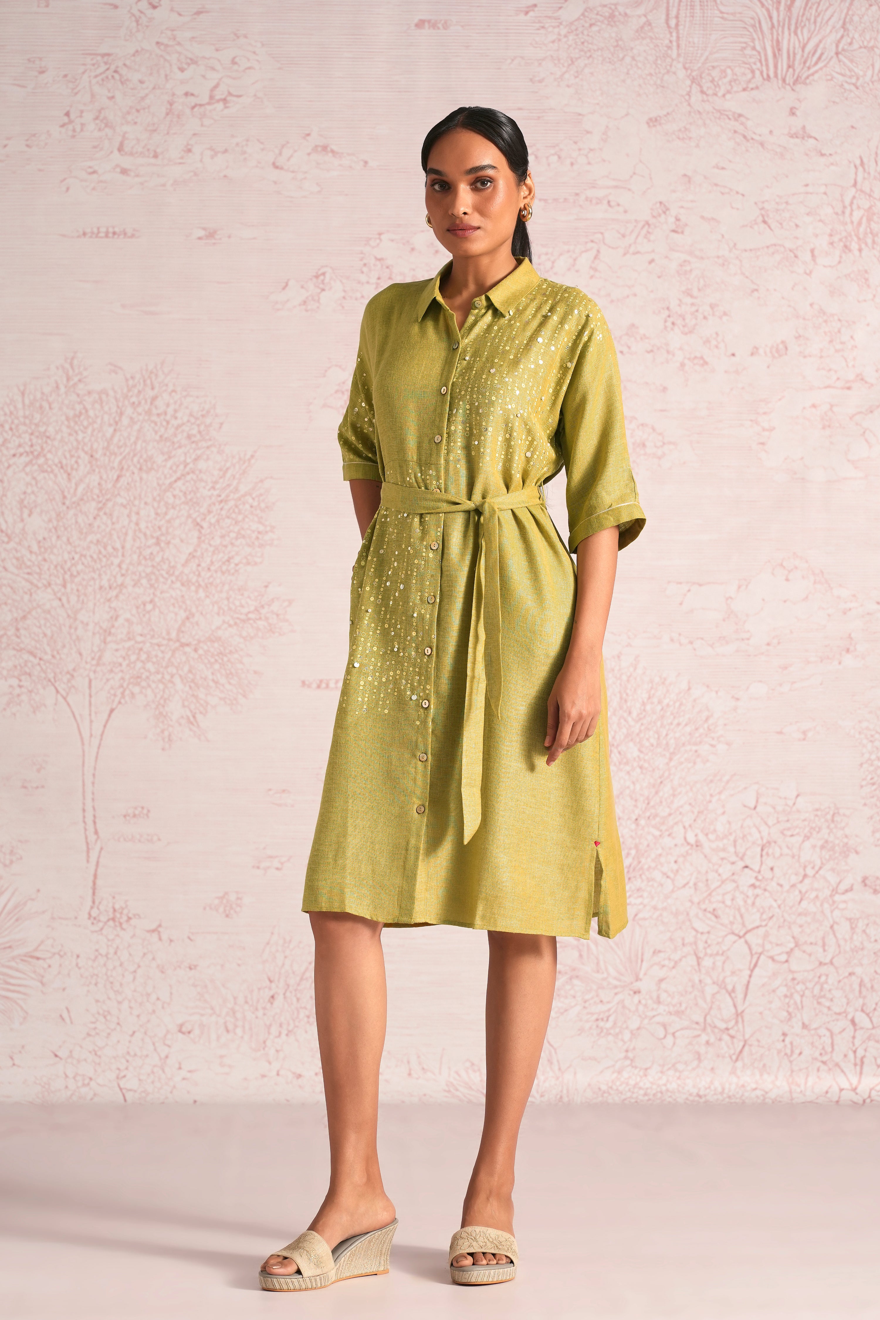 Shimmer strings is a quiet celebration of light and movement, where delicate shimmery strings fall like a gentle drizzle across each silhouette. A thoughtful play of prints is layered with subtle sequin and bead embroidery, finished with soft touches of foil to create a beautiful play of light. The harmony of techniques keeps the design effortlessly elegant. The styles are relaxed, easy to wear, and stylish, making them perfect for all occasions. Finished in soft pear and warm cashew tones, Strings of shimmer captures understated glamour with timeless ease.