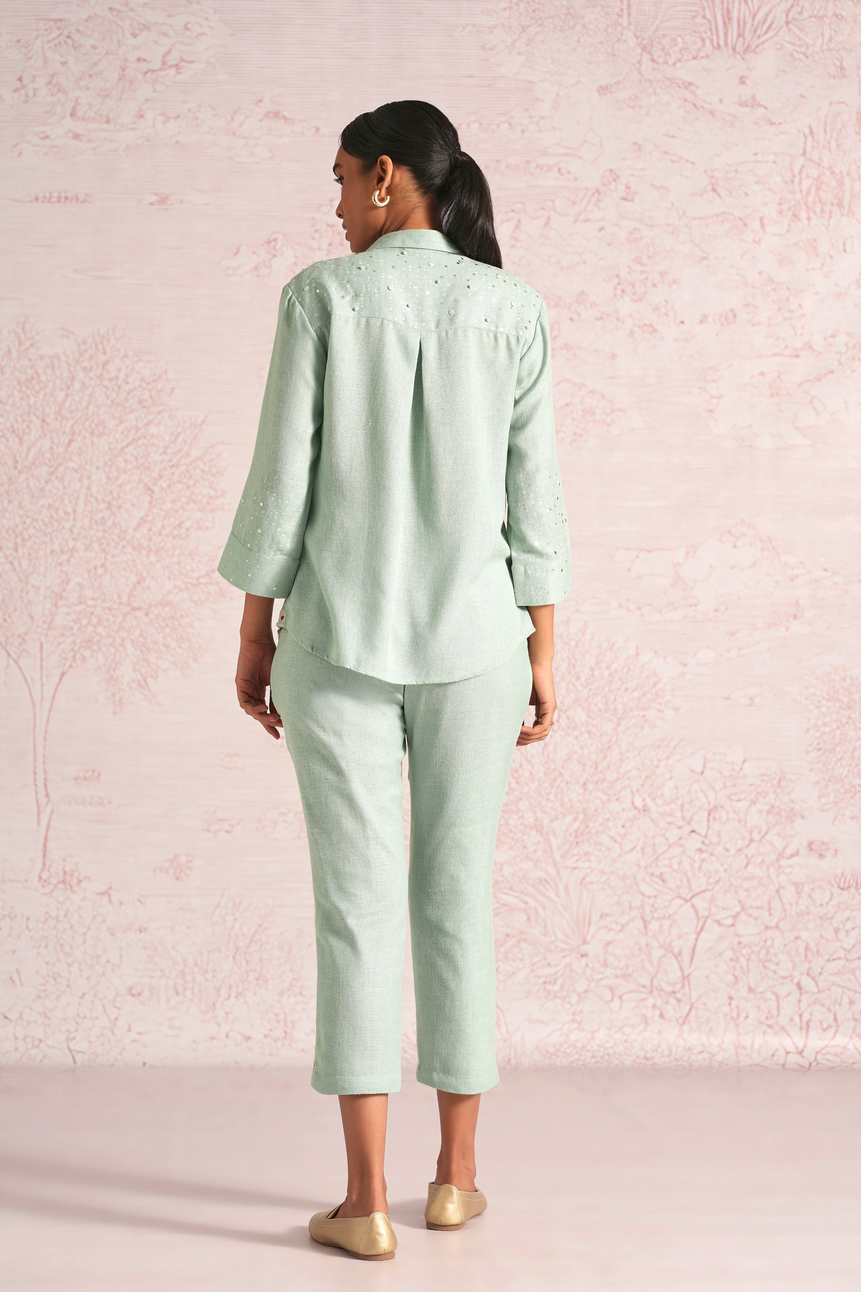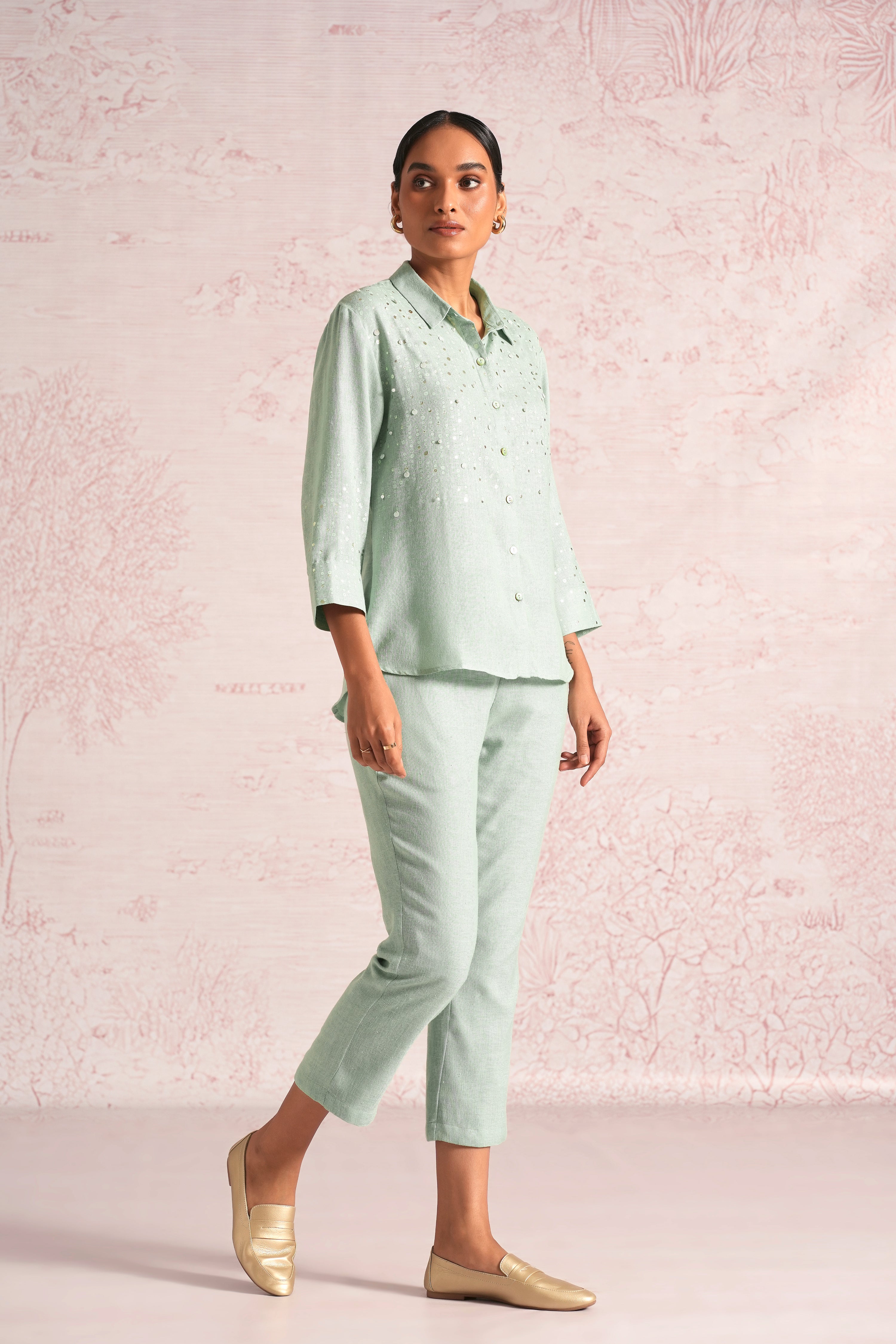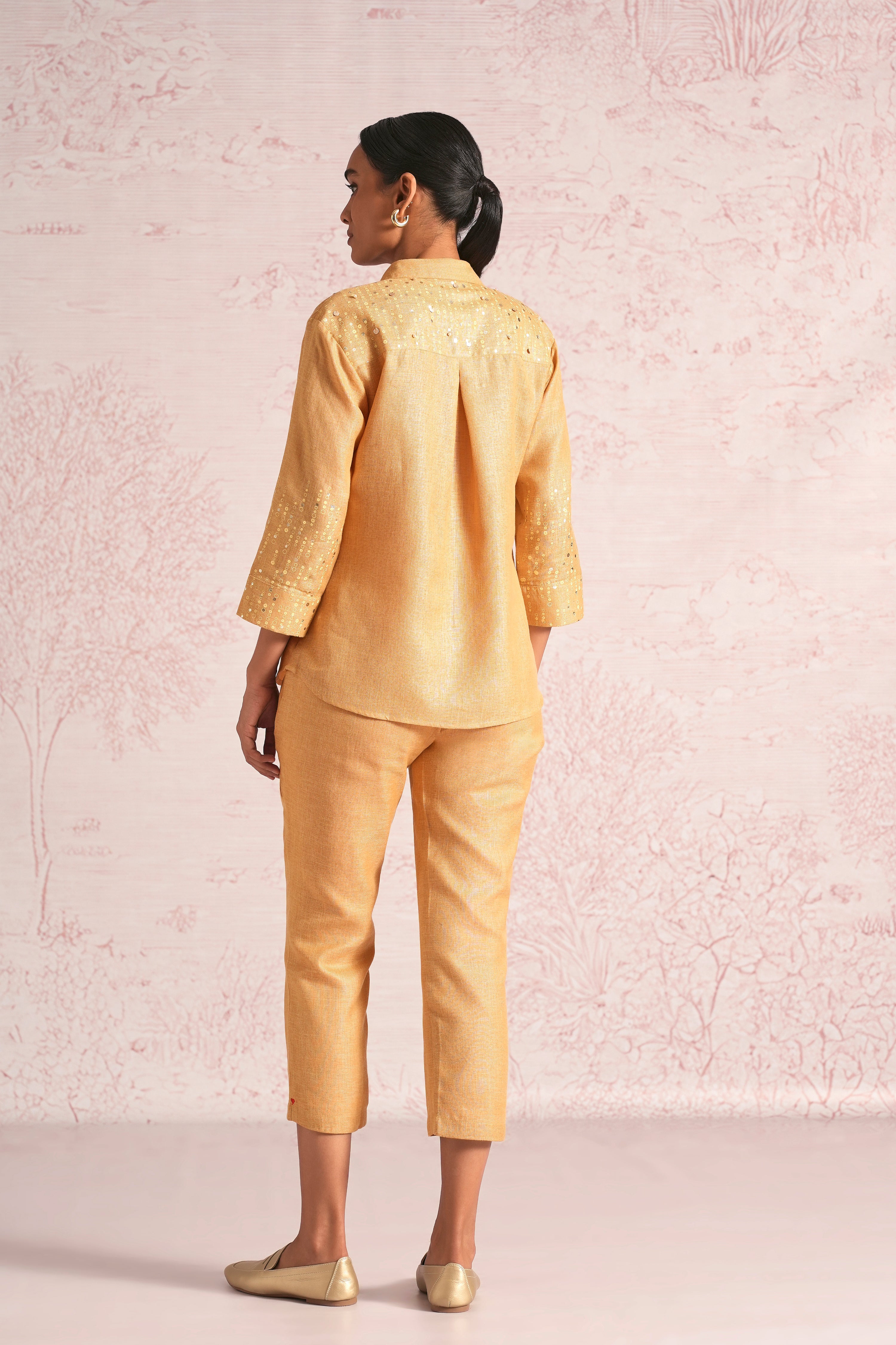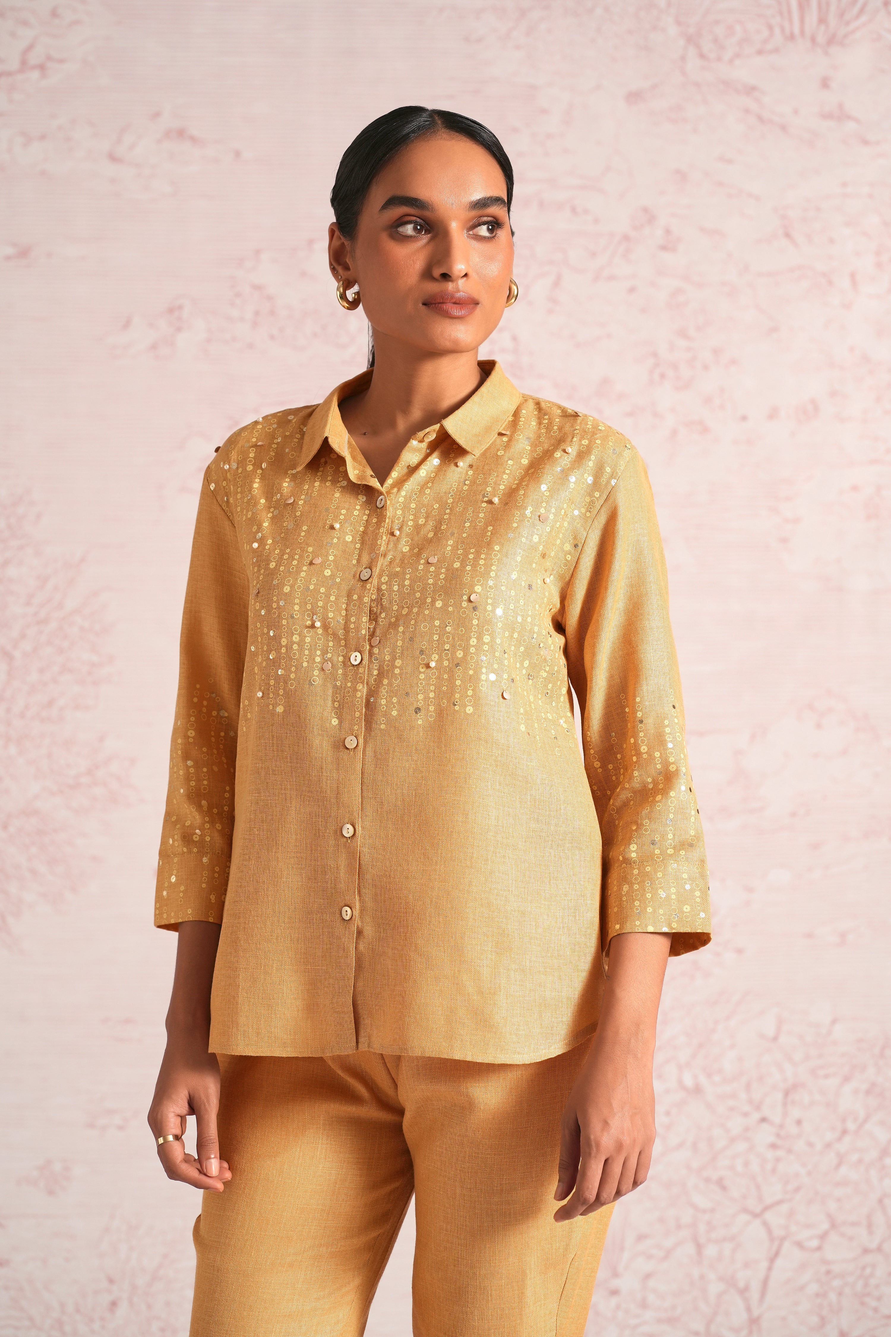 Shimmer strings is a quiet celebration of light and movement, where delicate shimmery strings fall like a gentle drizzle across each silhouette. A thoughtful play of prints is layered with subtle sequin and bead embroidery, finished with soft touches of foil to create a beautiful play of light. The harmony of techniques keeps the design effortlessly elegant. The styles are relaxed, easy to wear, and stylish, making them perfect for all occasions. Finished in soft pear and warm cashew tones, Strings of shimmer captures understated glamour with timeless ease.