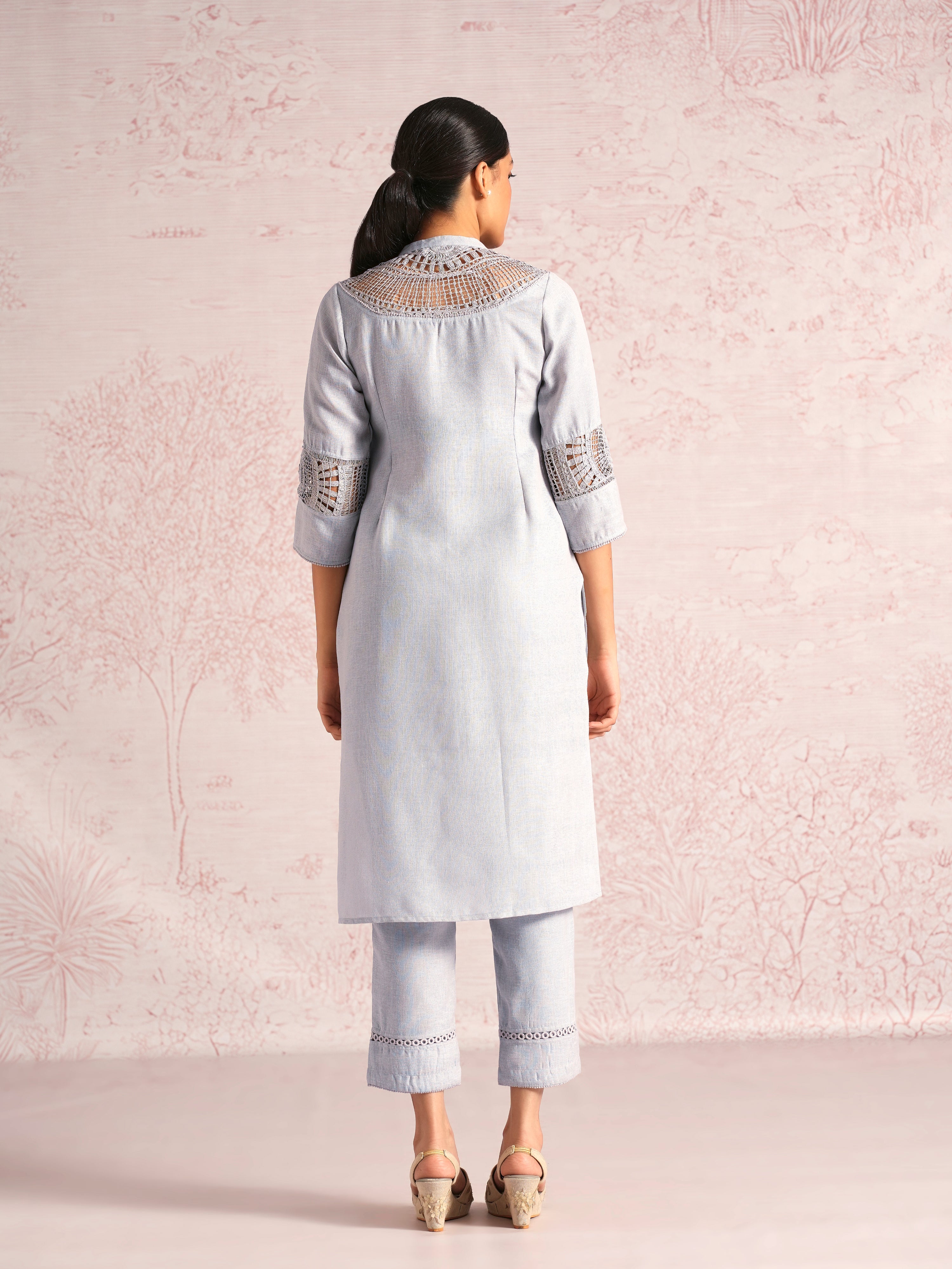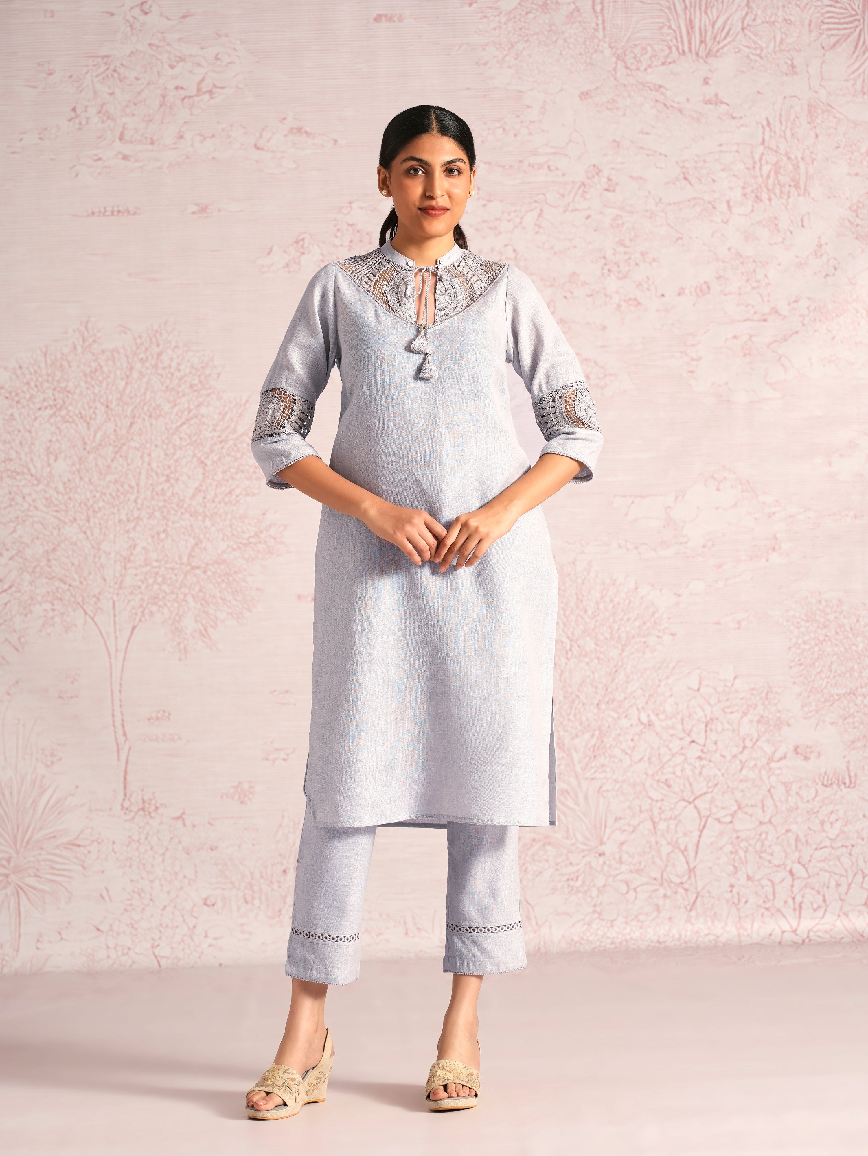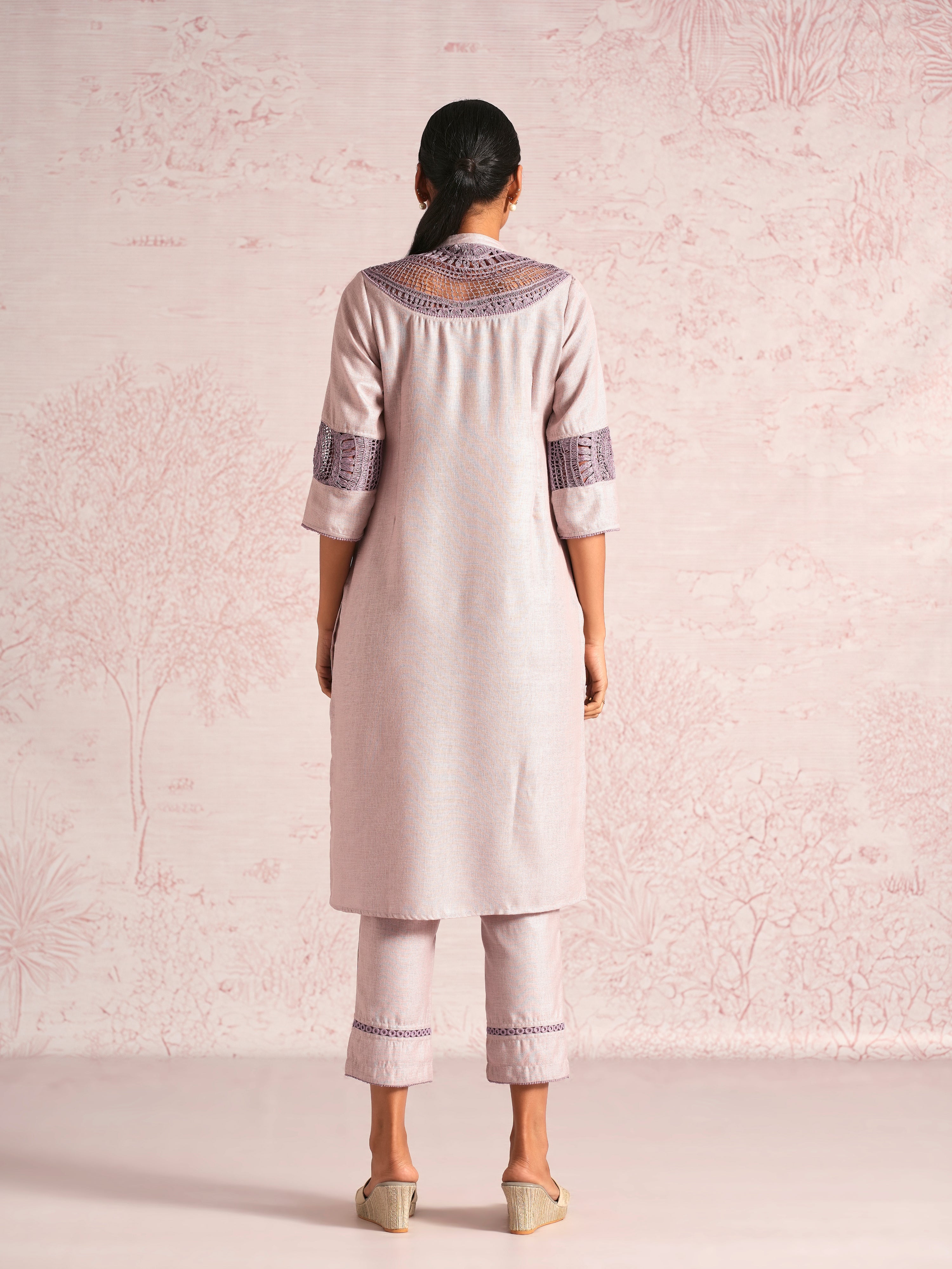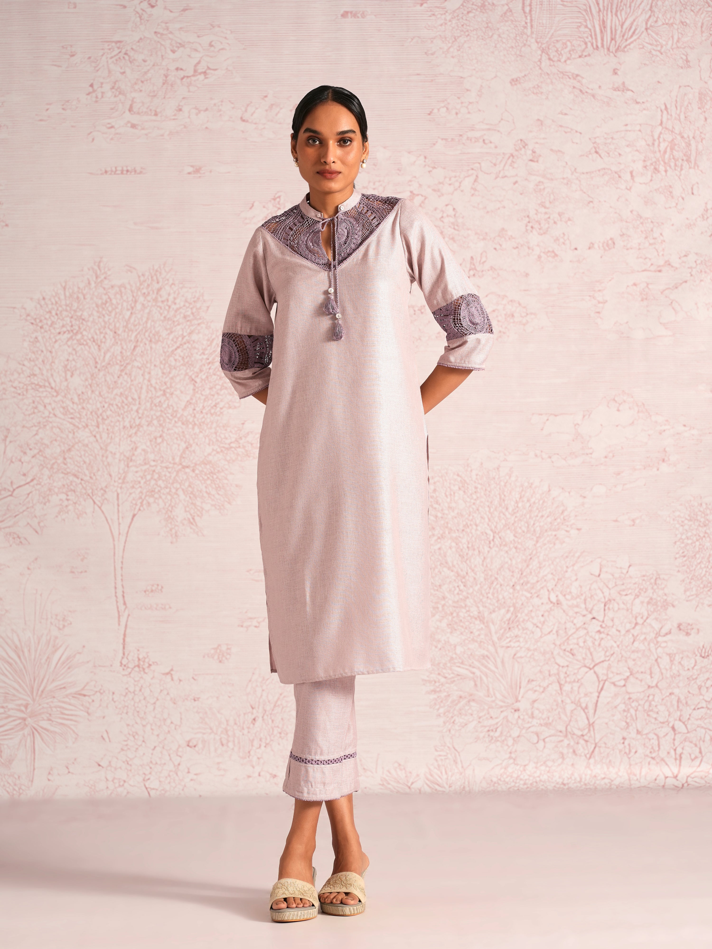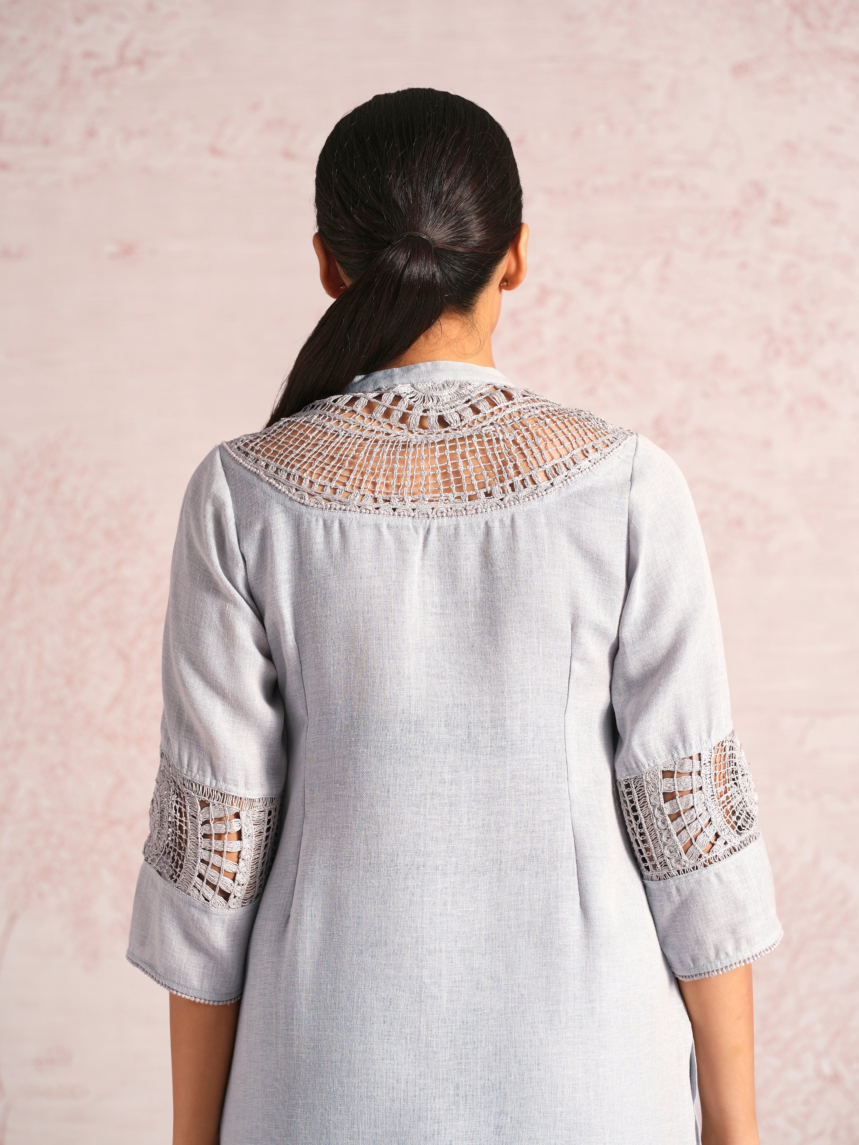 Summer Threads is a quiet celebration of craftsmanship, where elegance is expressed through the simplest of gestures. At its heart, a single thread journeys gracefully across each garment, forming abstract, symmetrical patterns that feel both thoughtful and poetic. Delicately handcrafted crochet accents trace the neckline and cuffs, adding texture and refinement without overwhelming the silhouette. Rendered in soft, sophisticated hues of Smoke and Mauve, the palette enhances the collection’s understated charm. Each piece is designed to feel light yet considered, balancing structure with fluidity. Timeless, distinctive, and effortlessly refined, Summer Threads is a rare expression of modern elegance — subtle in detail, yet quietly unforgettable.