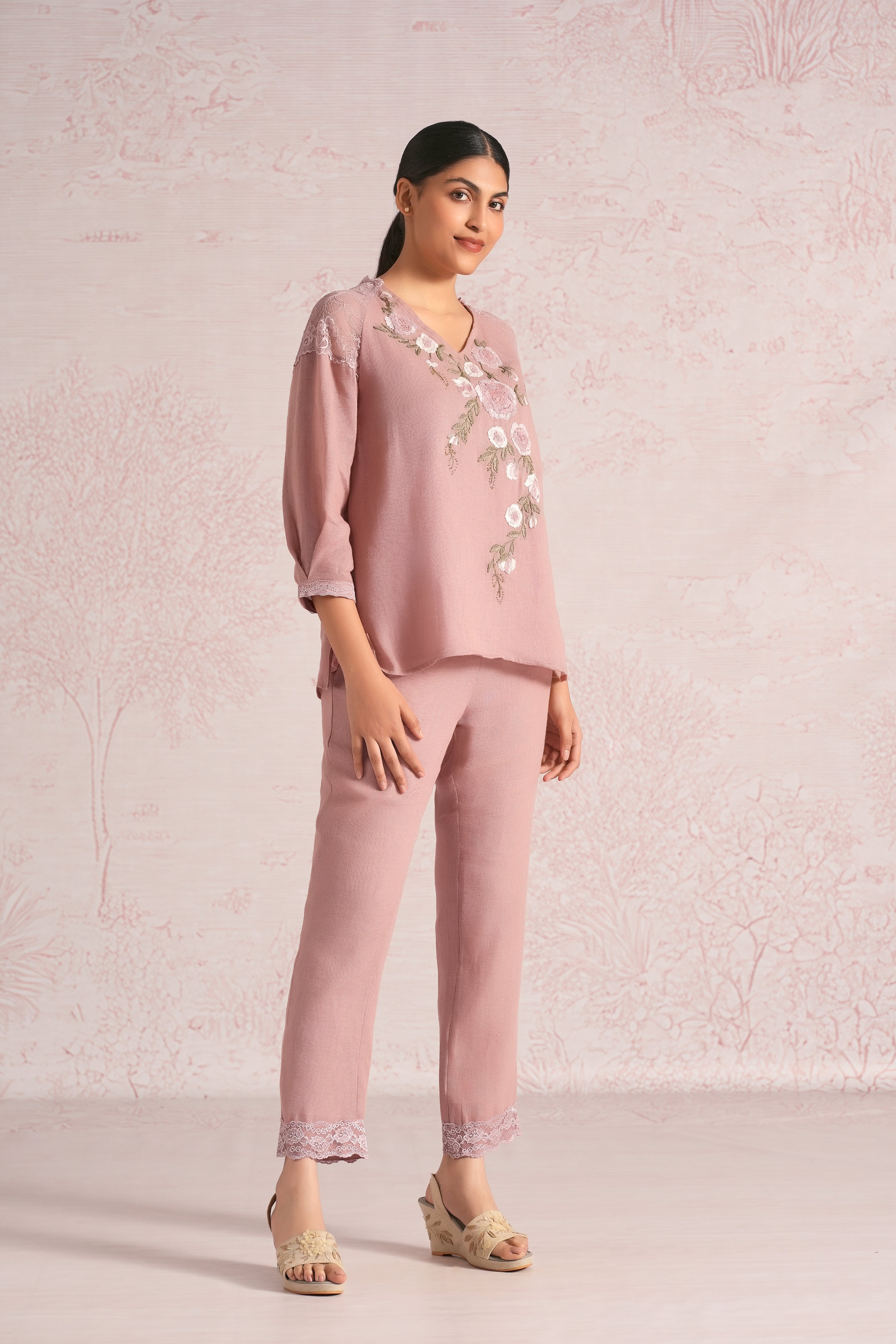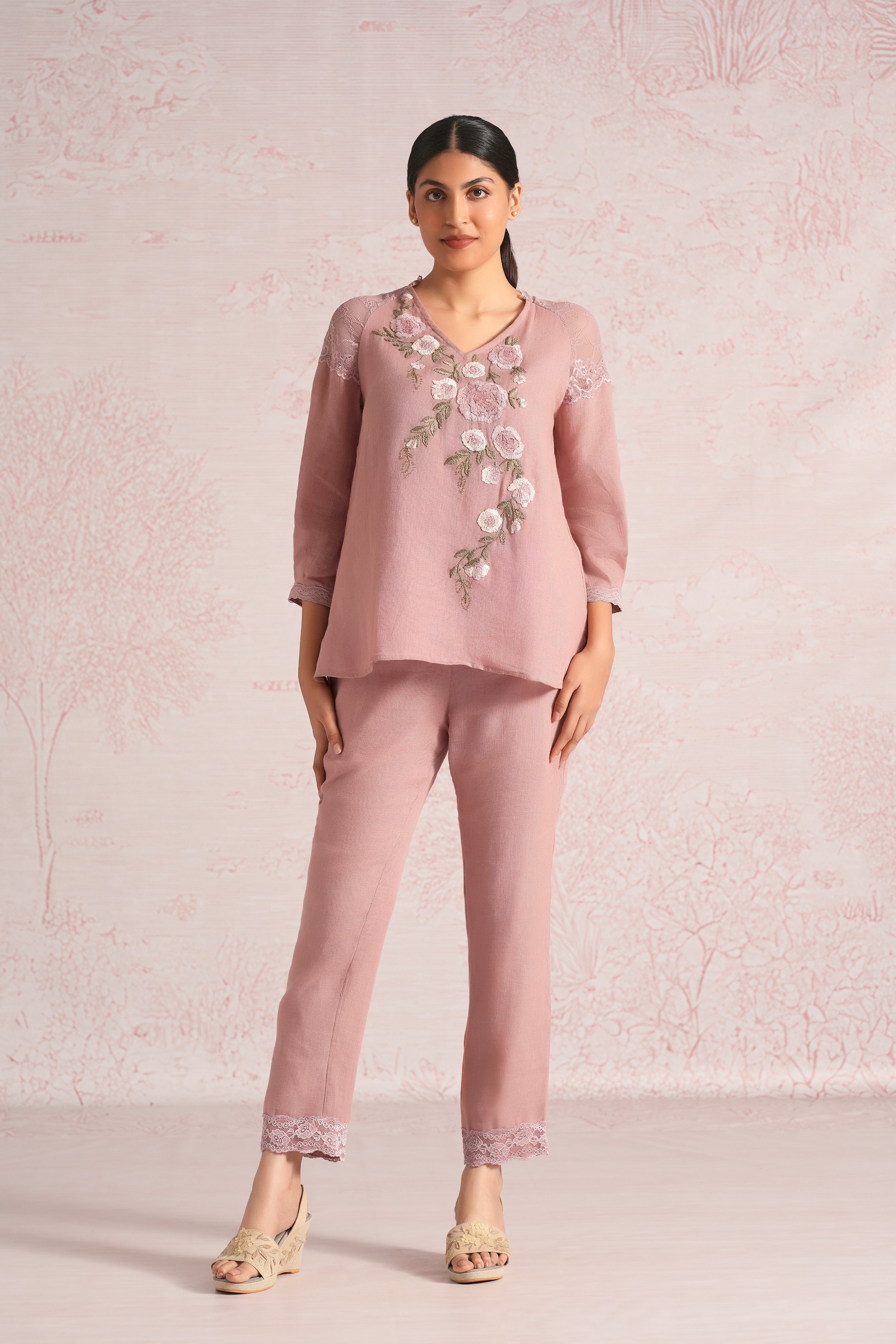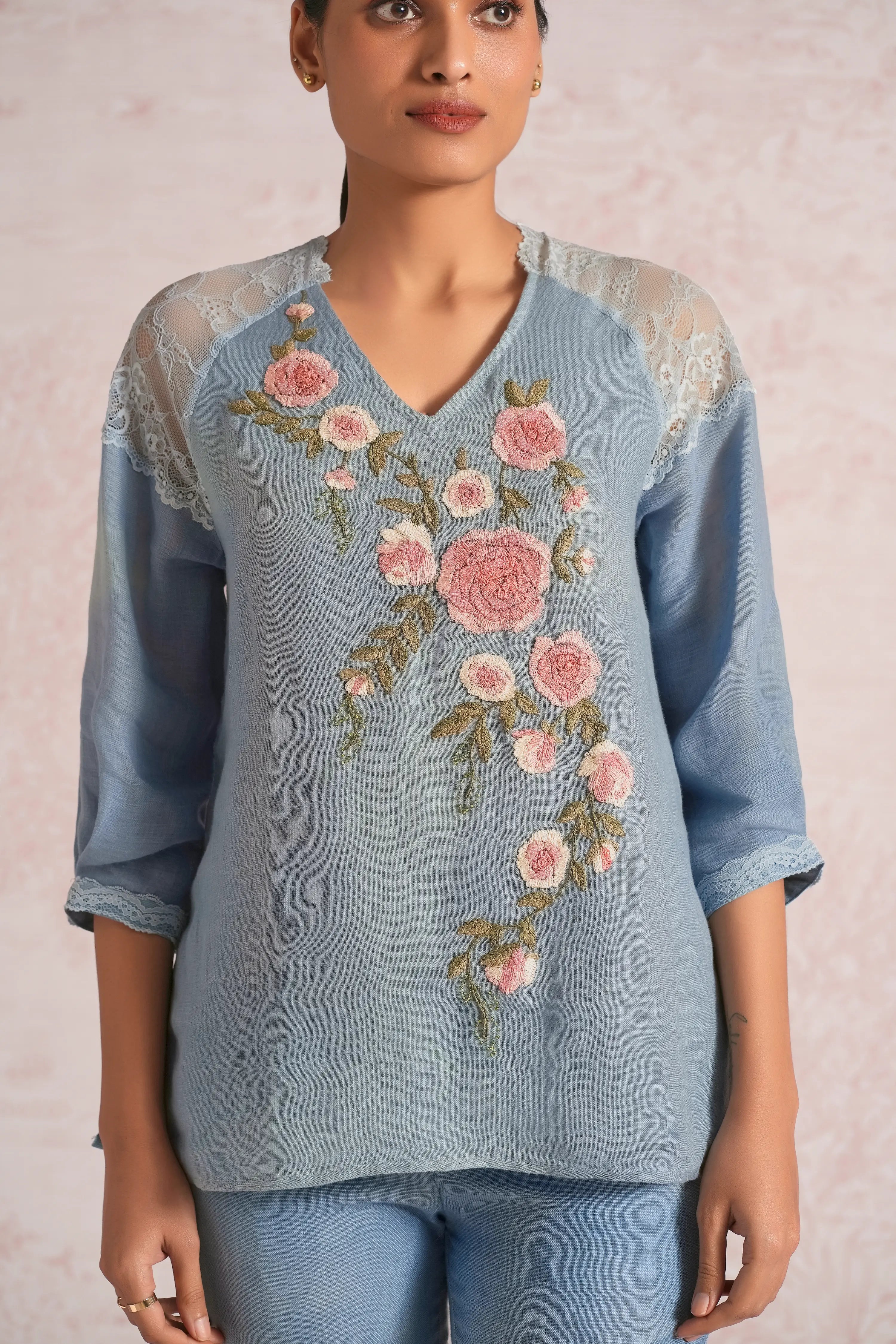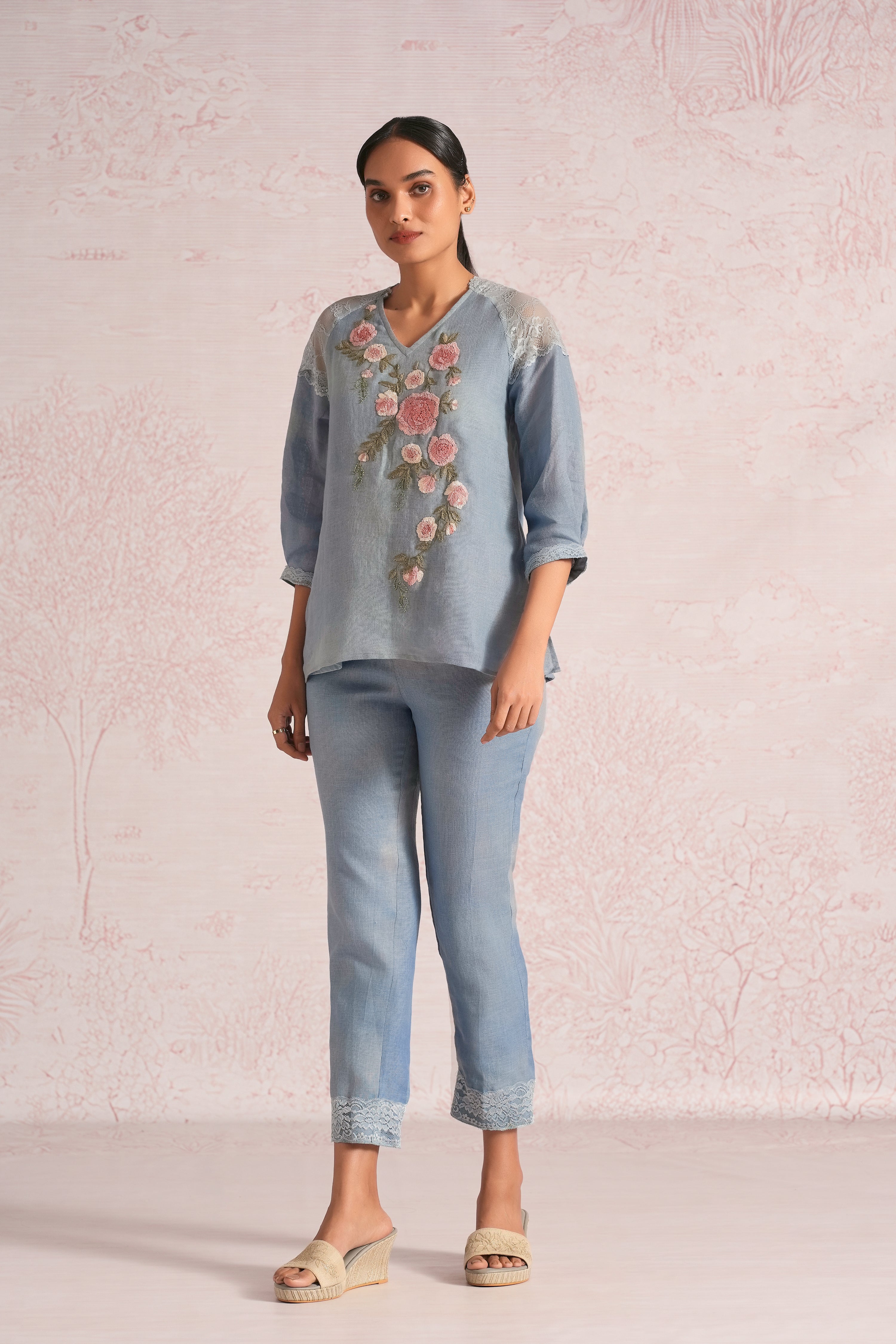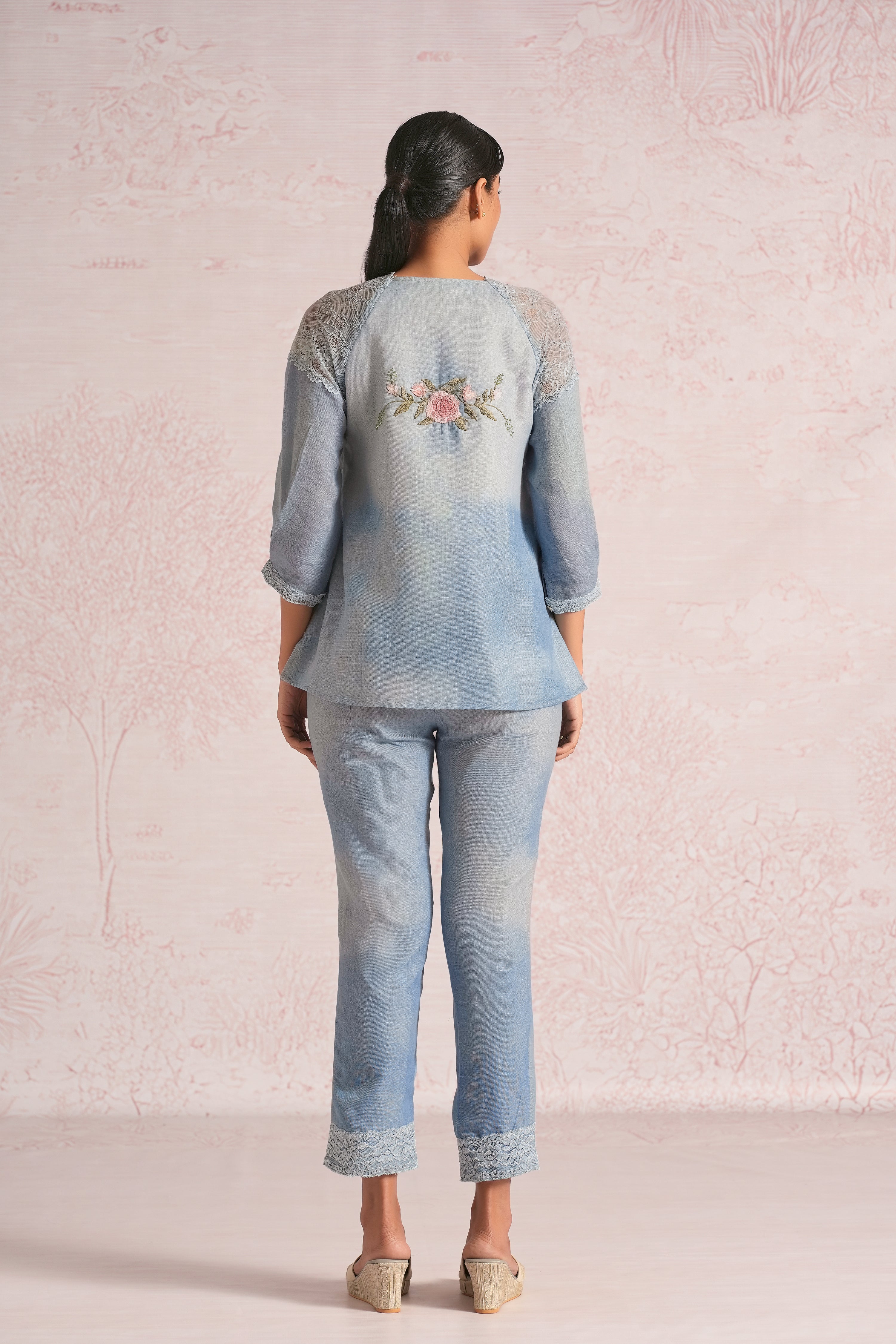 Whimsical Garden is a dreamy escape into a world where art and nature bloom together. Abstract tie-dyed fabrics create a soft, painterly canvas — like skies brushed with colour at golden hour — in two enchanting hues: the tender warmth of Rose Bud and the serene depth of Inkblot. Intricate laces trail across each silhouette like delicate vines, while florals bloom in exquisite embroidery, evoking the romance of a secret garden in full flourish. Sugar beads shimmer like drops of morning dew, lending a luminous texture that dances with light and movement. The neckline is beautifully enhanced with ornate embroidery and finished with charming floral tassels that sway gracefully at the neck and sleeves. Romantic, ethereal, and irresistibly elegant, Whimsical Garden invites you to step into a story where every detail blossoms with beauty.