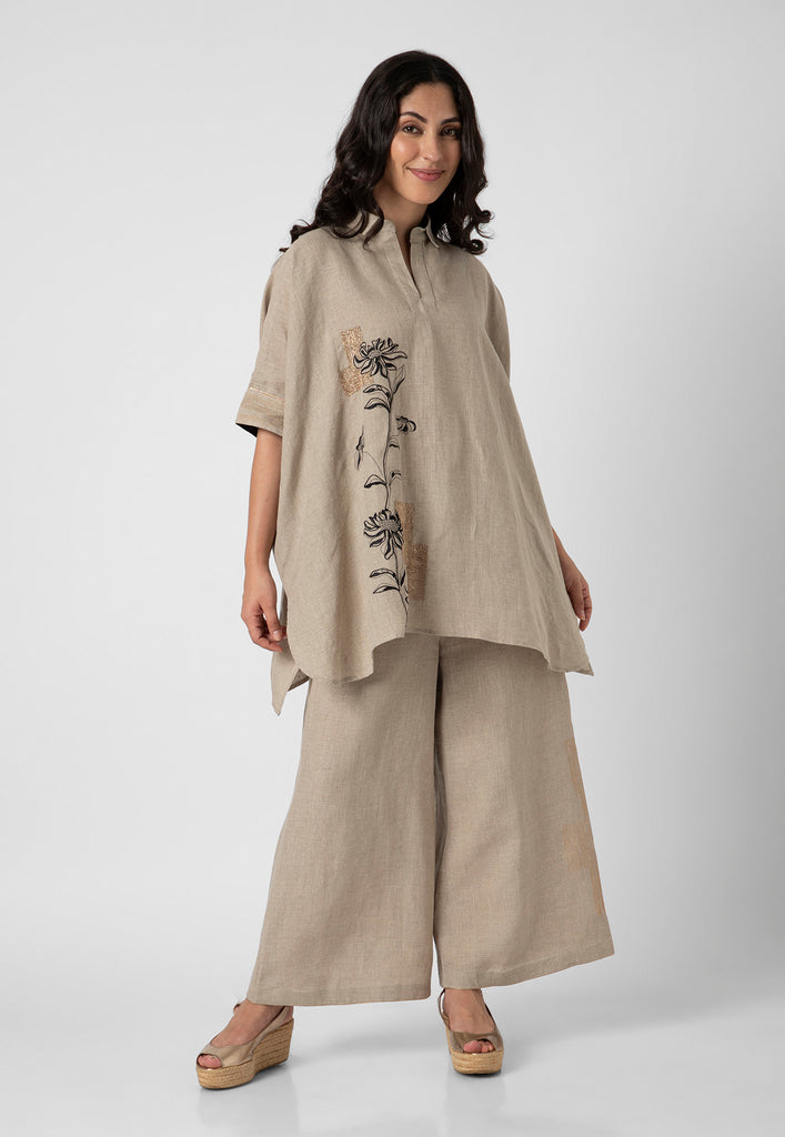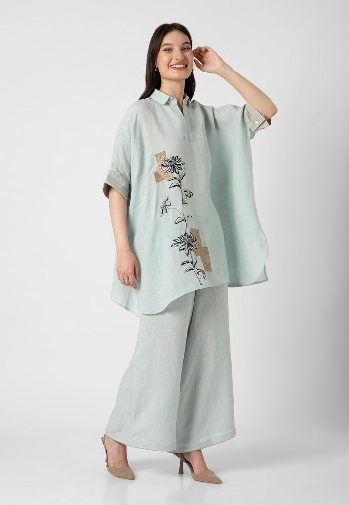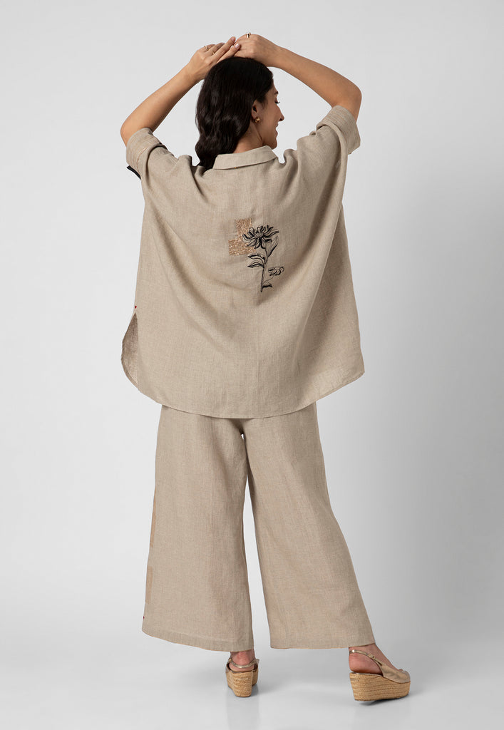 Fall in love with an illusion where depth and dimension unite forming a hypnotic focal point from intersecting lines; with neon studs heat crafted in between the geometric motifs on luxurious linen further elevating the vibrancy of the garment. Available in striking shades of hot pink, misty lilac, star and off-white.