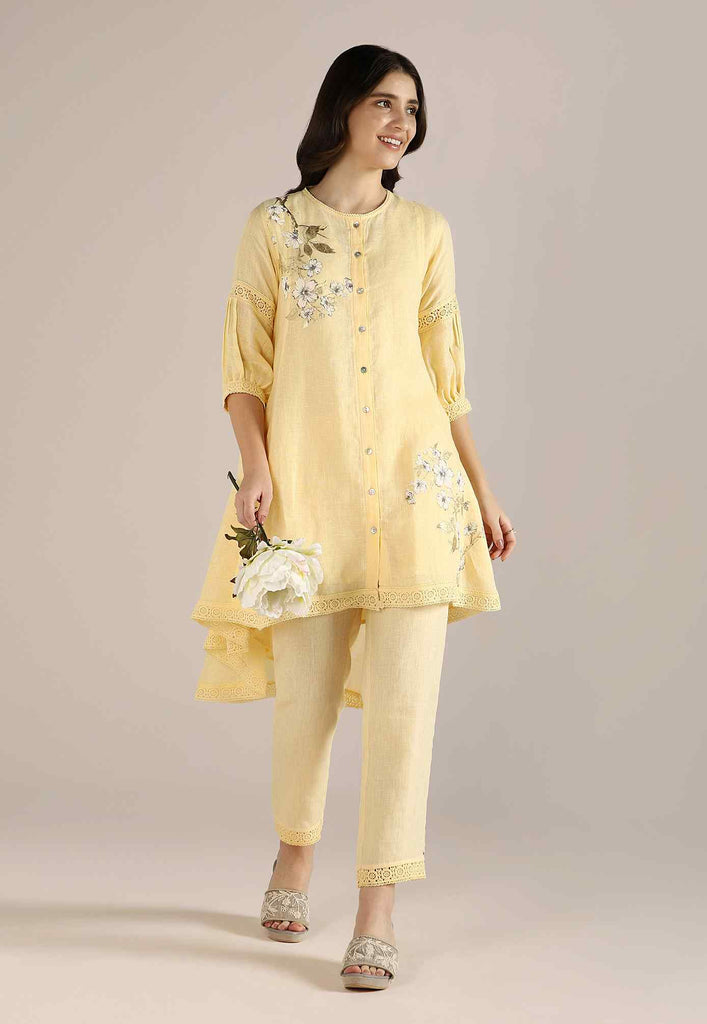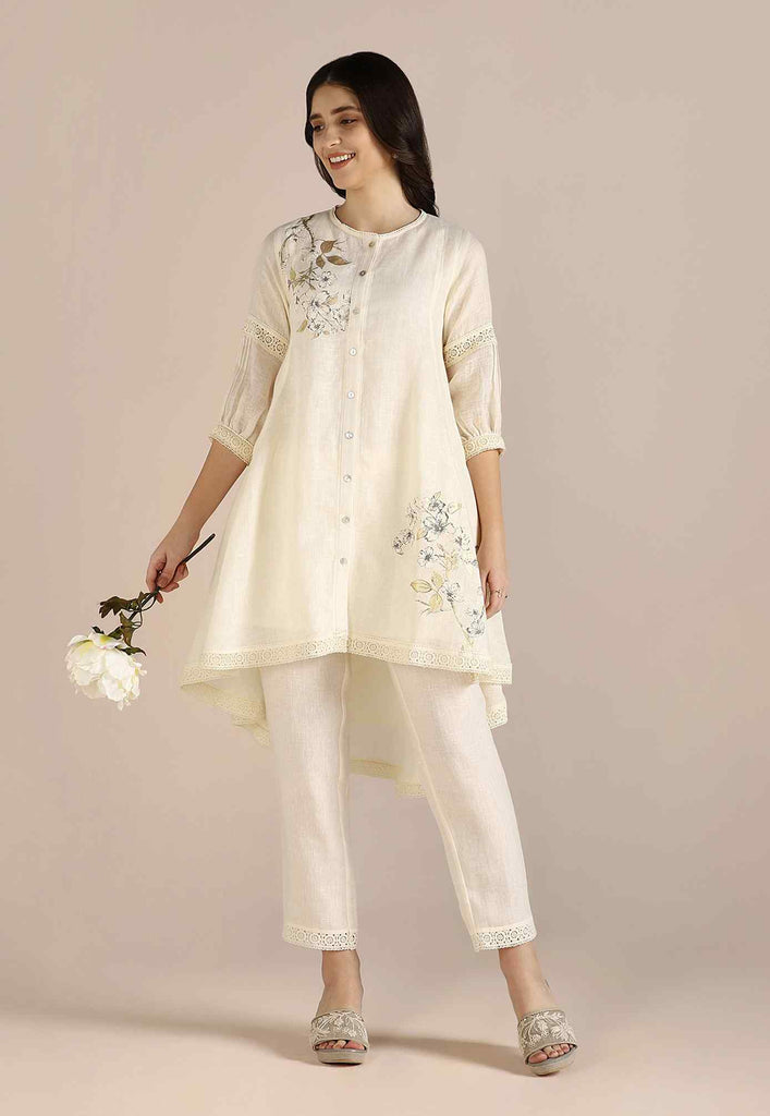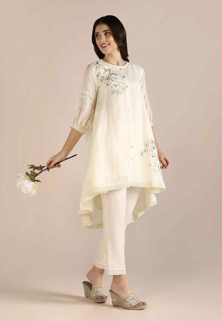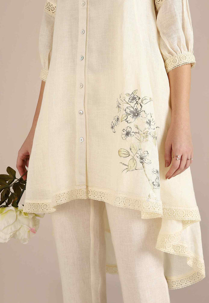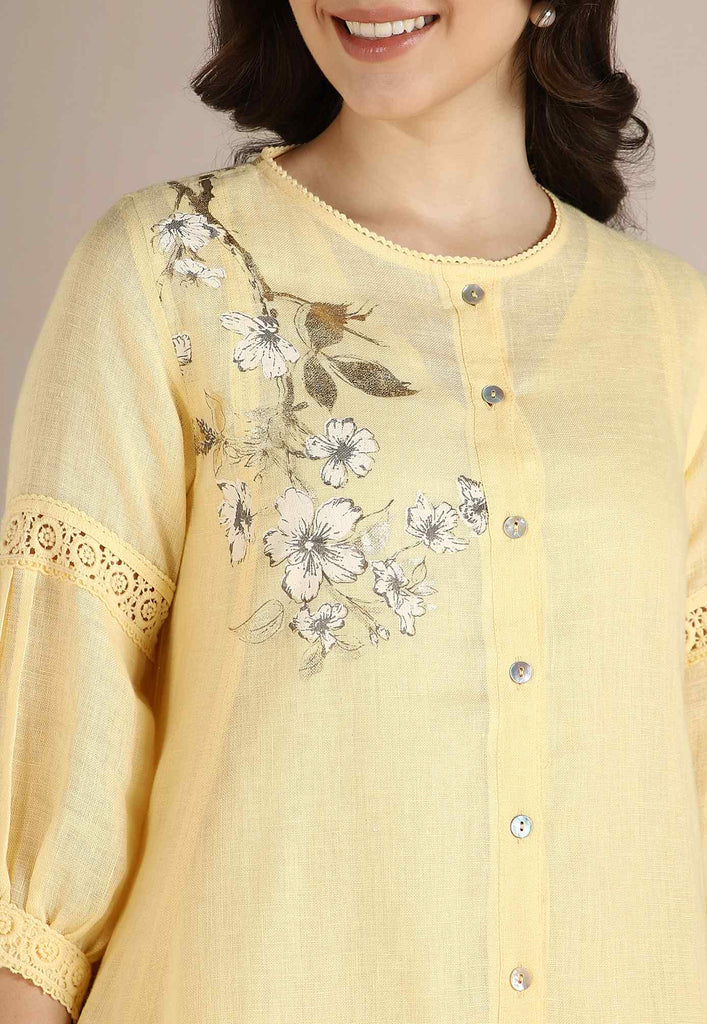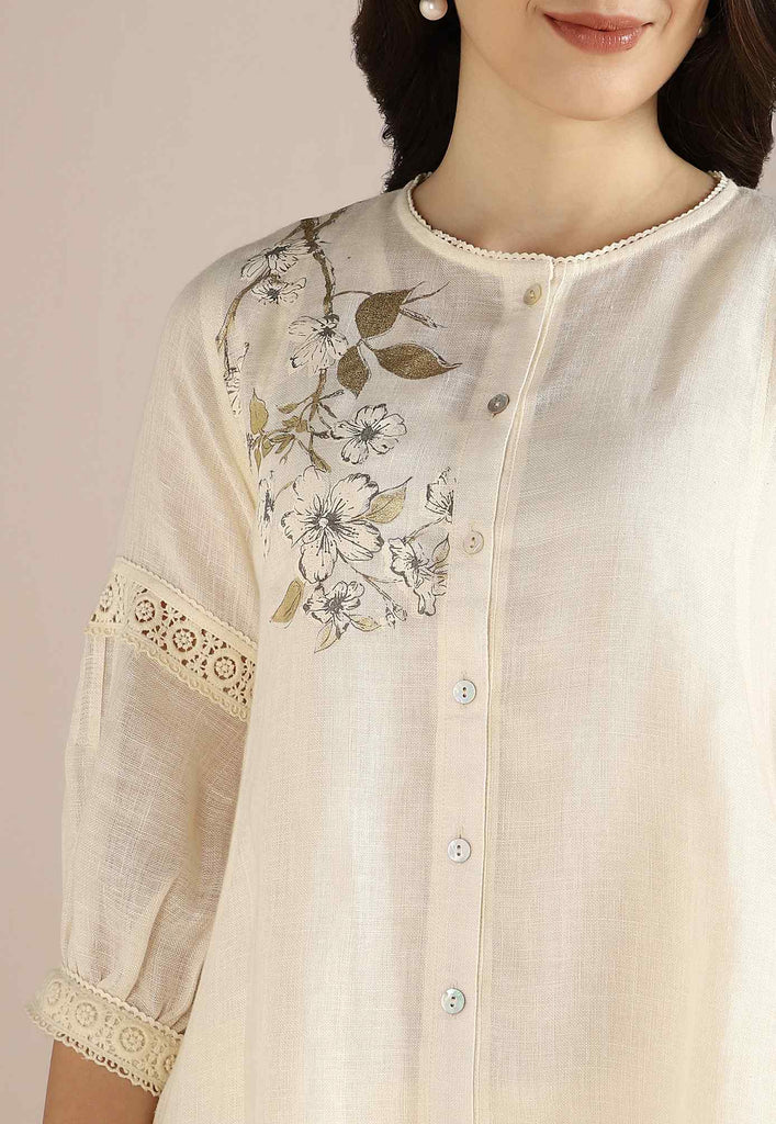 Bloom in iridescent splendour with the glorious Camelia flower emblazoned in classic white and gold- imprinted by hand using heat-pressed craft technique to summon the bloom to life on noble linen that is sure to enchant and delight onlookers from every angle as you adorn this piece with undulating grace. Experience this fantastic range in exuberant shades of natural, off-white and buttercup.
