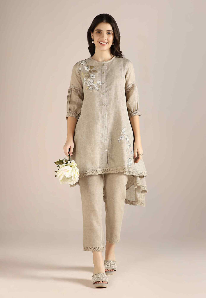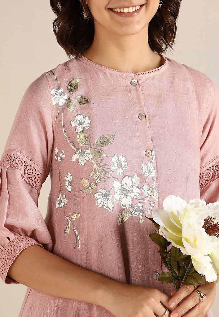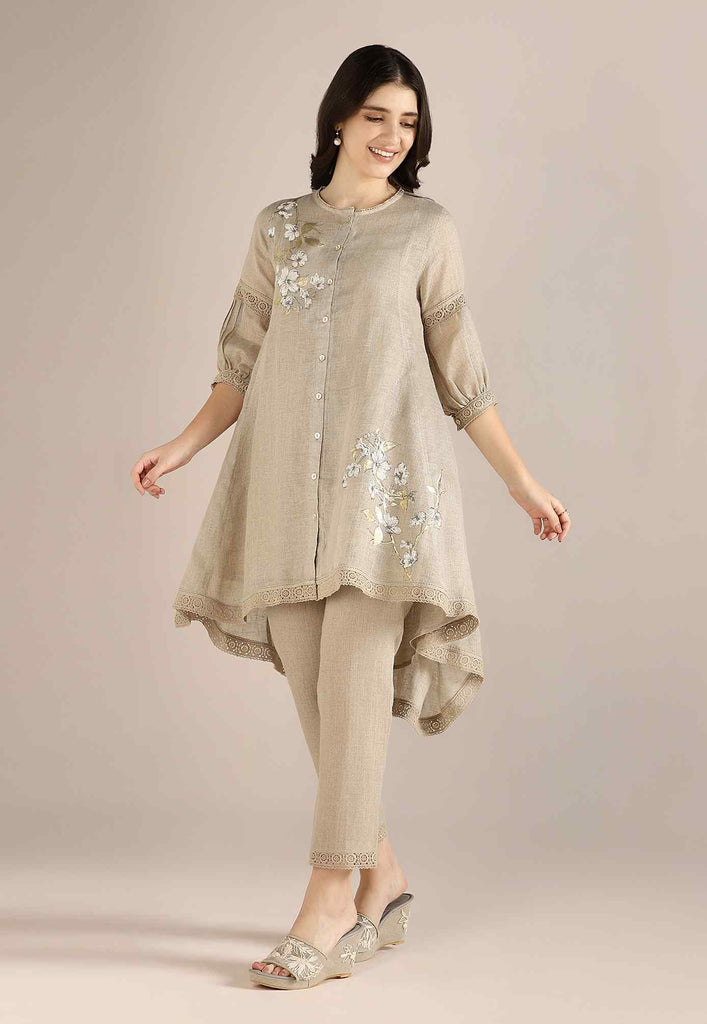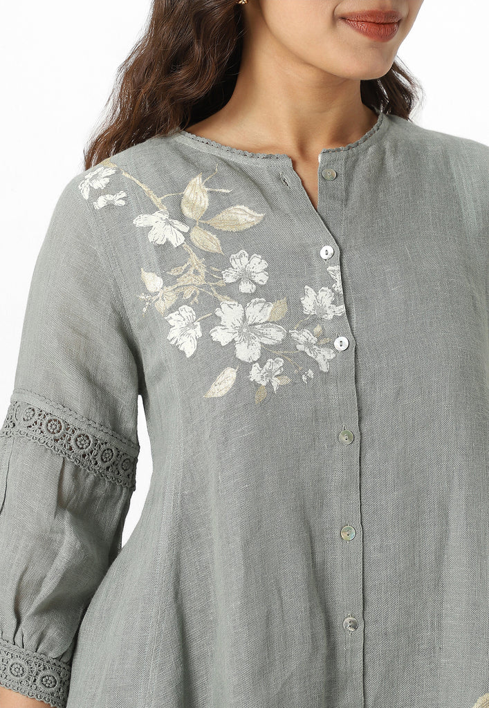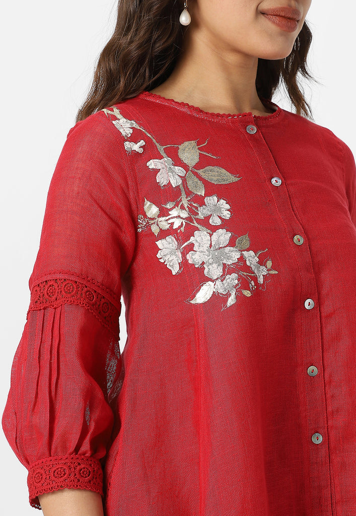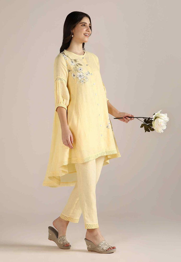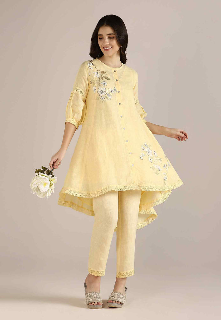 Bloom in iridescent splendour with the glorious Camelia flower emblazoned in classic white and gold- imprinted by hand using heat-pressed craft technique to summon the bloom to life on noble linen that is sure to enchant and delight onlookers from every angle as you adorn this piece with undulating grace. Experience this fantastic range in exuberant shades of natural, off-white and buttercup.