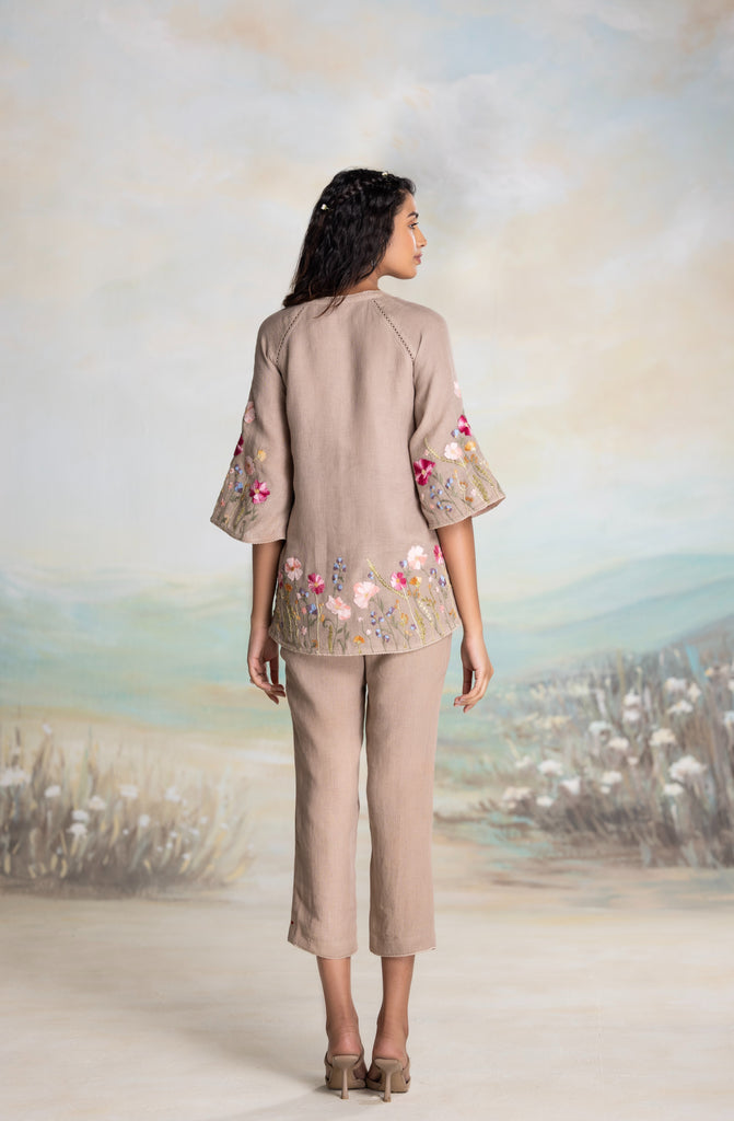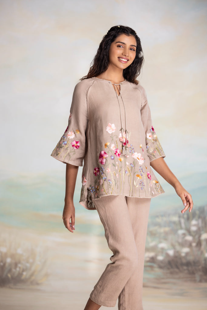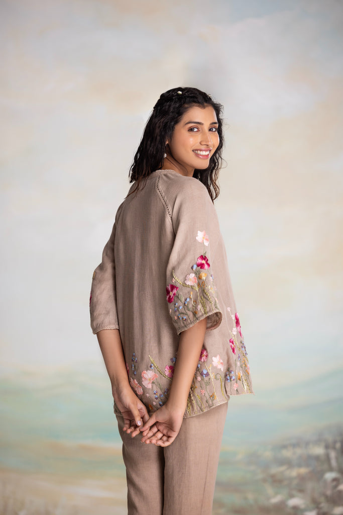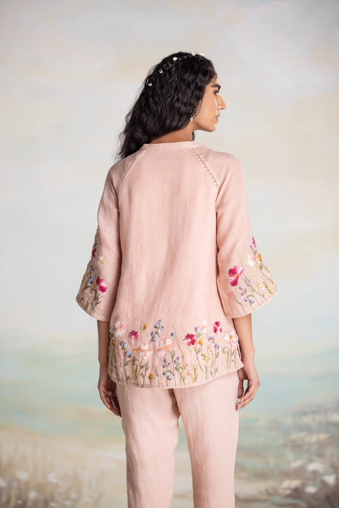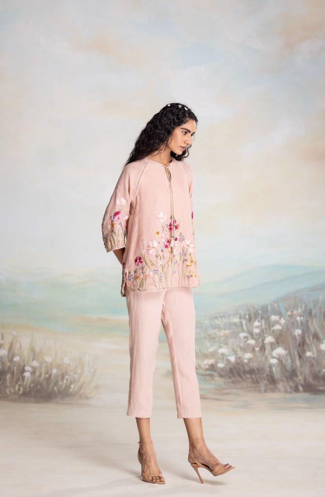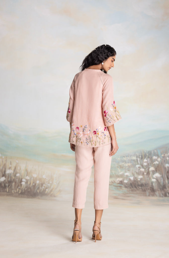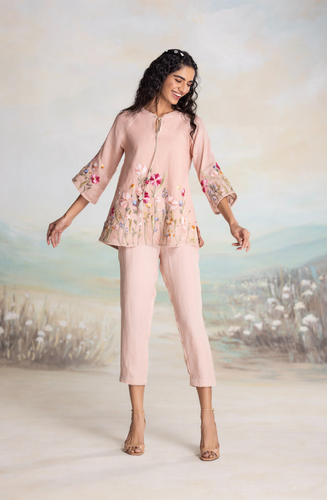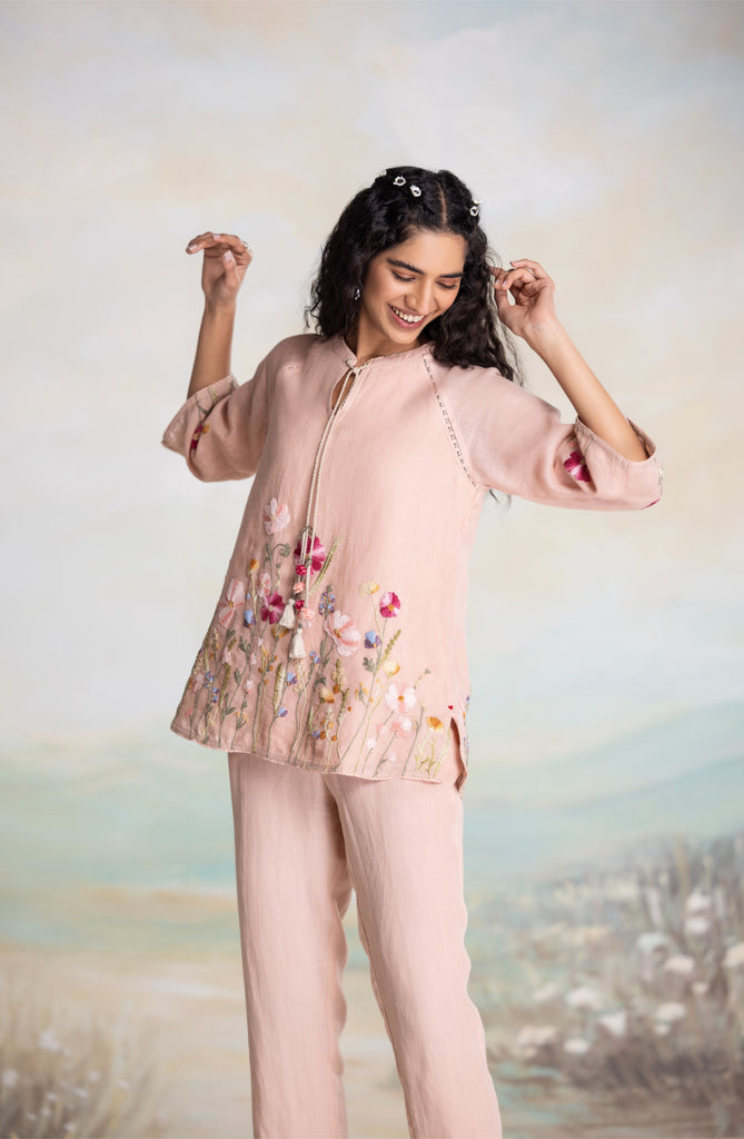 Rejoice the season in the glorious artistry of Meet Me in the Meadow. This enchanting collection is handcrafted in ombré-dyed cotton thread embroidery, where delicate hues blend seamlessly to create an interplay of colours and textures. Each stitch forms a perfect balance, evoking the scenic harmony of a serene meadow. Available in alluring shades of dusty rose and cement.