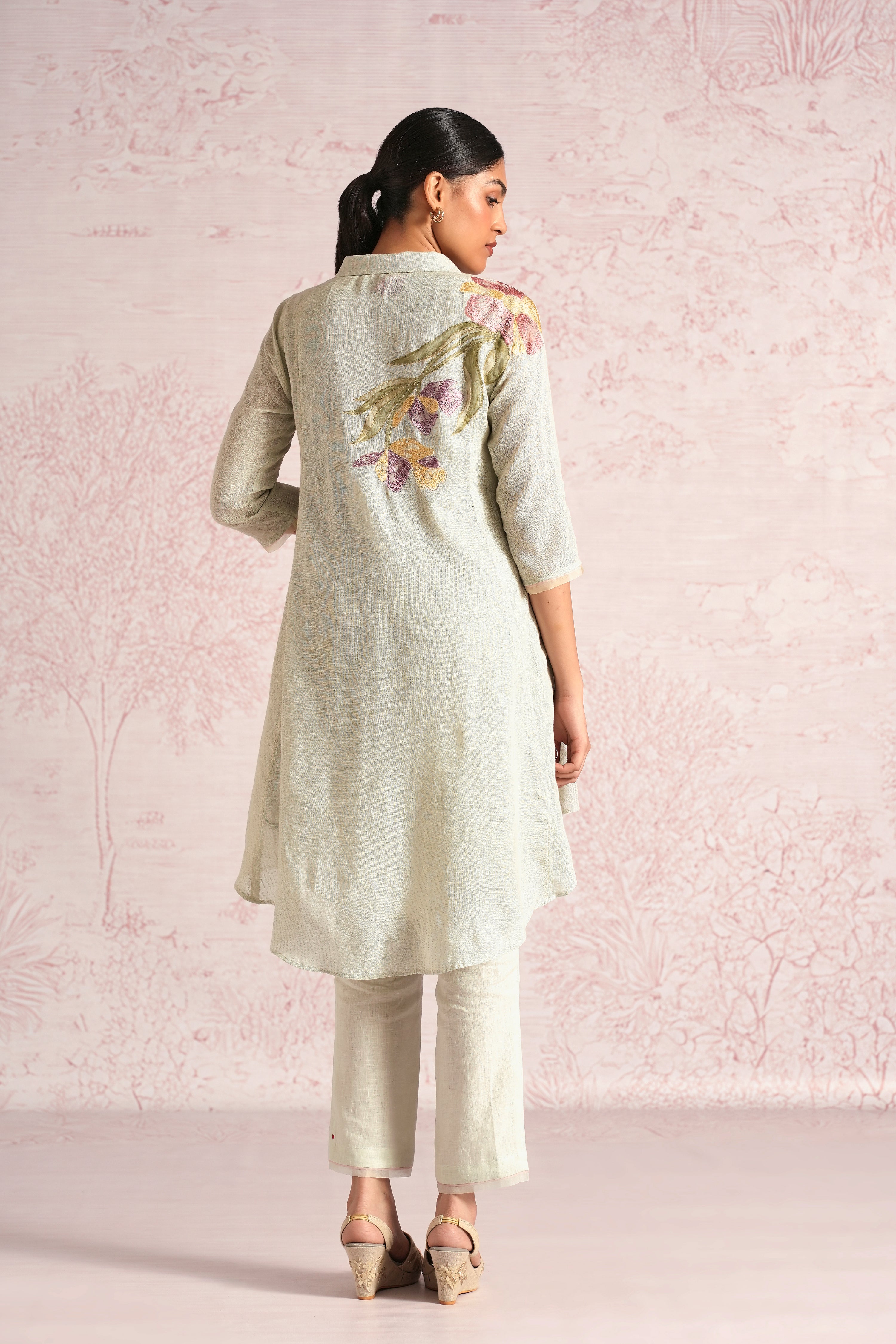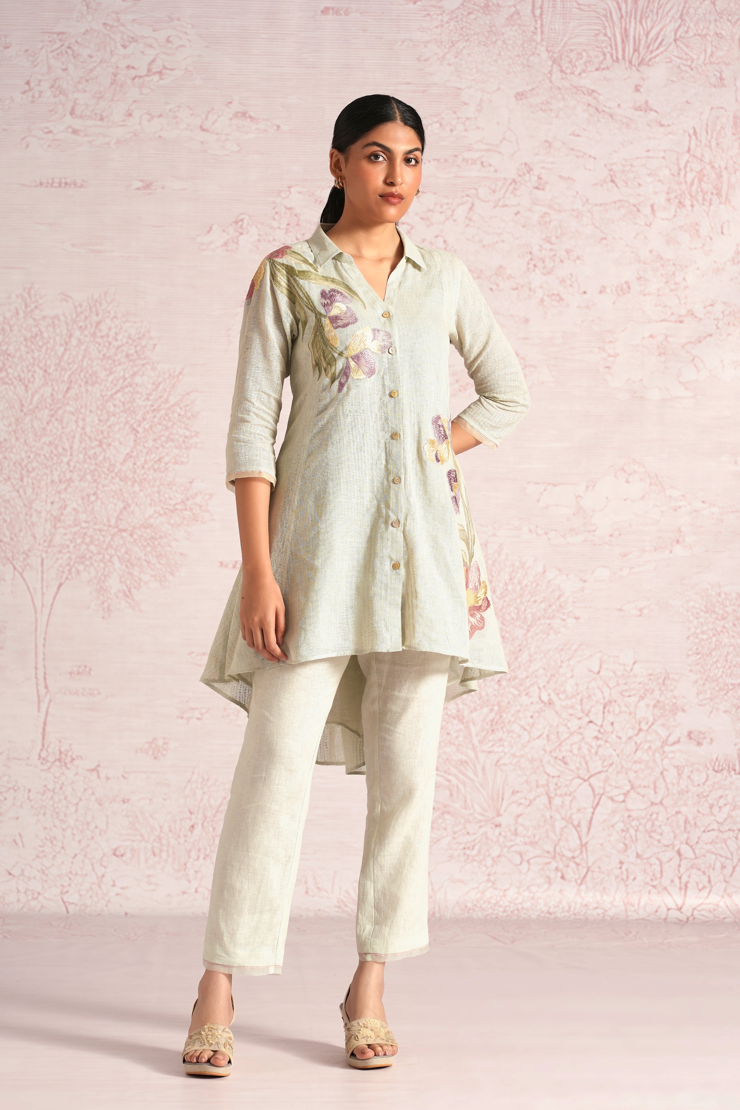 Painted Petals is a delicate interplay of art and craftsmanship, where soft floral forms come alive through gentle washes of watercolor. Each petal is thoughtfully hand-painted and layered with fine embroidery stitches, adding texture, depth, and a quiet sense of dimension. Rendered in the serene hues of Bonny and Parchment, the palette enhances the collection’s light, sun-kissed elegance. The silhouettes feel airy and graceful, allowing the artwork to flow effortlessly across the garments. Refined yet expressive, the collection captures the romance of summer florals with subtle detail and timeless charm. Light, feminine, and beautifully composed, Painted Petals is designed to feel poetic, elegant, and effortlessly captivating for the season.