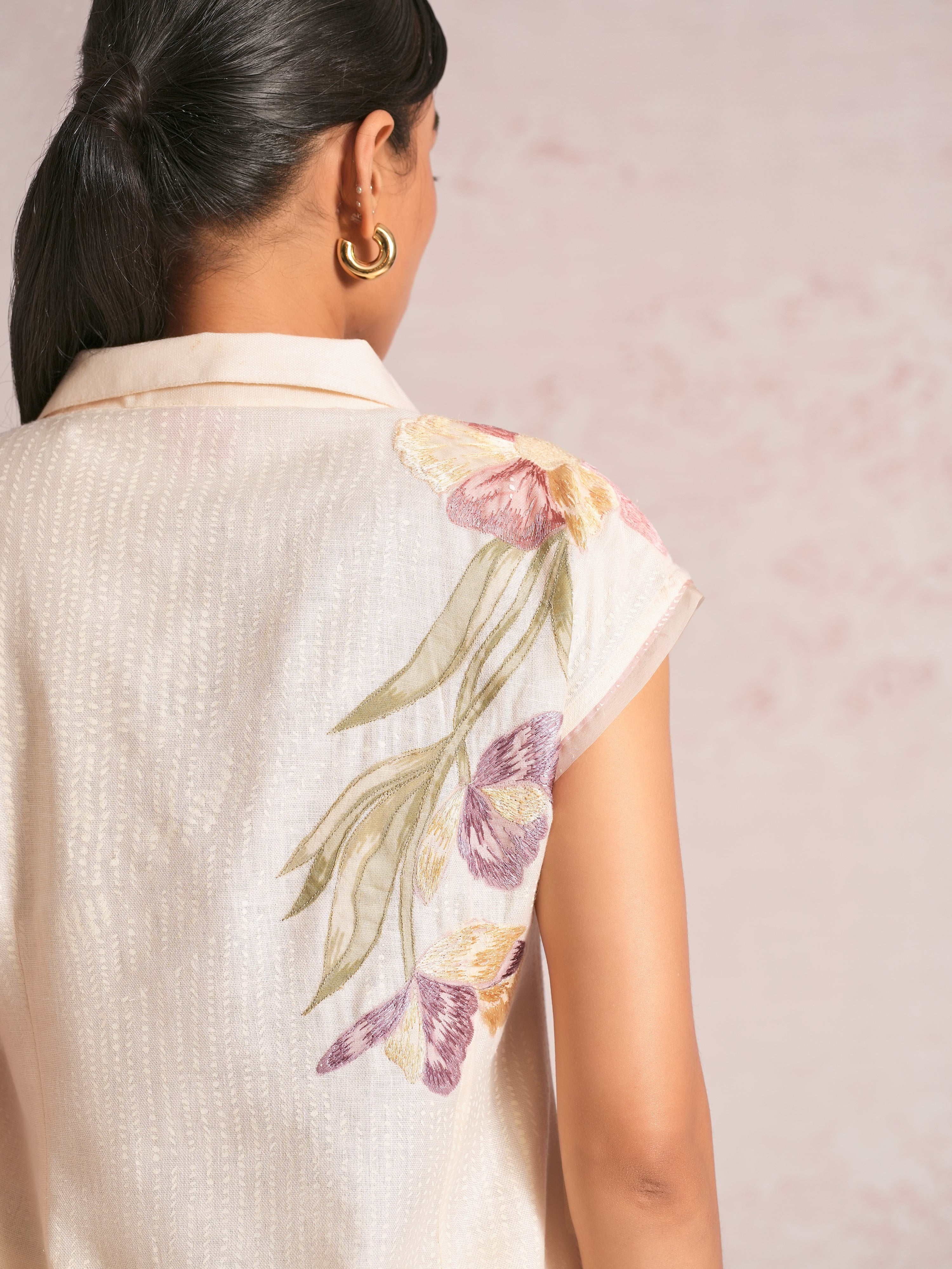 Painted Petals is a delicate interplay of art and craftsmanship, where soft floral forms come alive through gentle washes of watercolor. Each petal is thoughtfully hand-painted and layered with fine embroidery stitches, adding texture, depth, and a quiet sense of dimension. Rendered in the serene hues of Bonny and Parchment, the palette enhances the collection’s light, sun-kissed elegance. The silhouettes feel airy and graceful, allowing the artwork to flow effortlessly across the garments. Refined yet expressive, the collection captures the romance of summer florals with subtle detail and timeless charm. Light, feminine, and beautifully composed, Painted Petals is designed to feel poetic, elegant, and effortlessly captivating for the season.