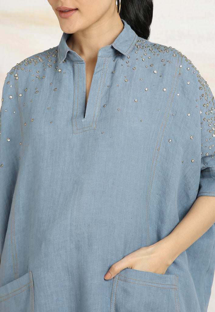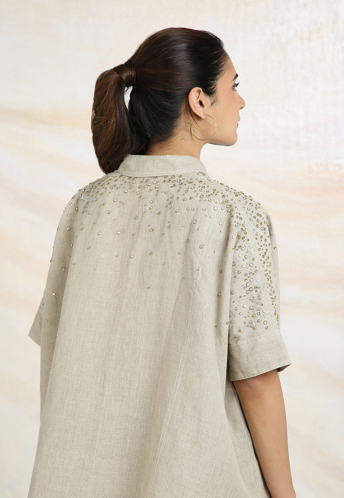 • Rhinestone Studs dropping from the shoulder.