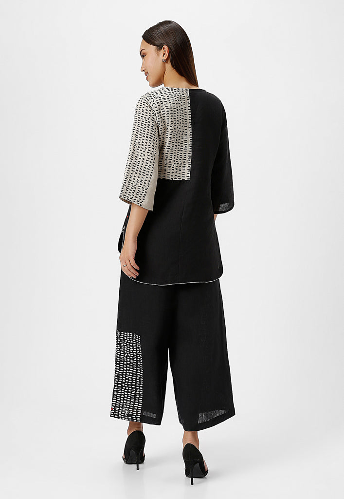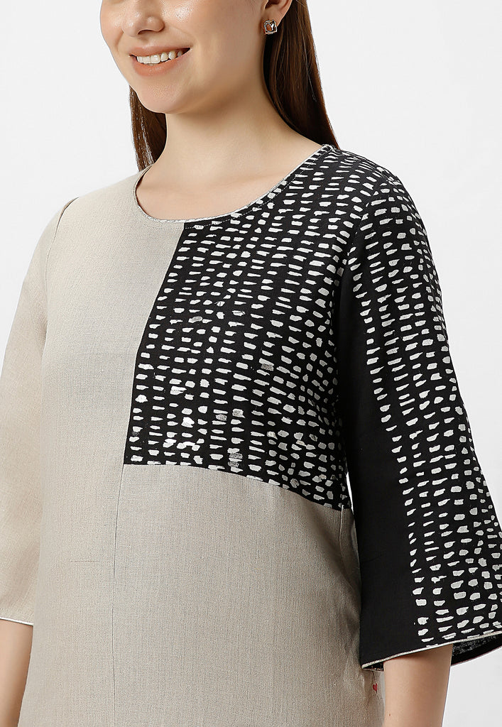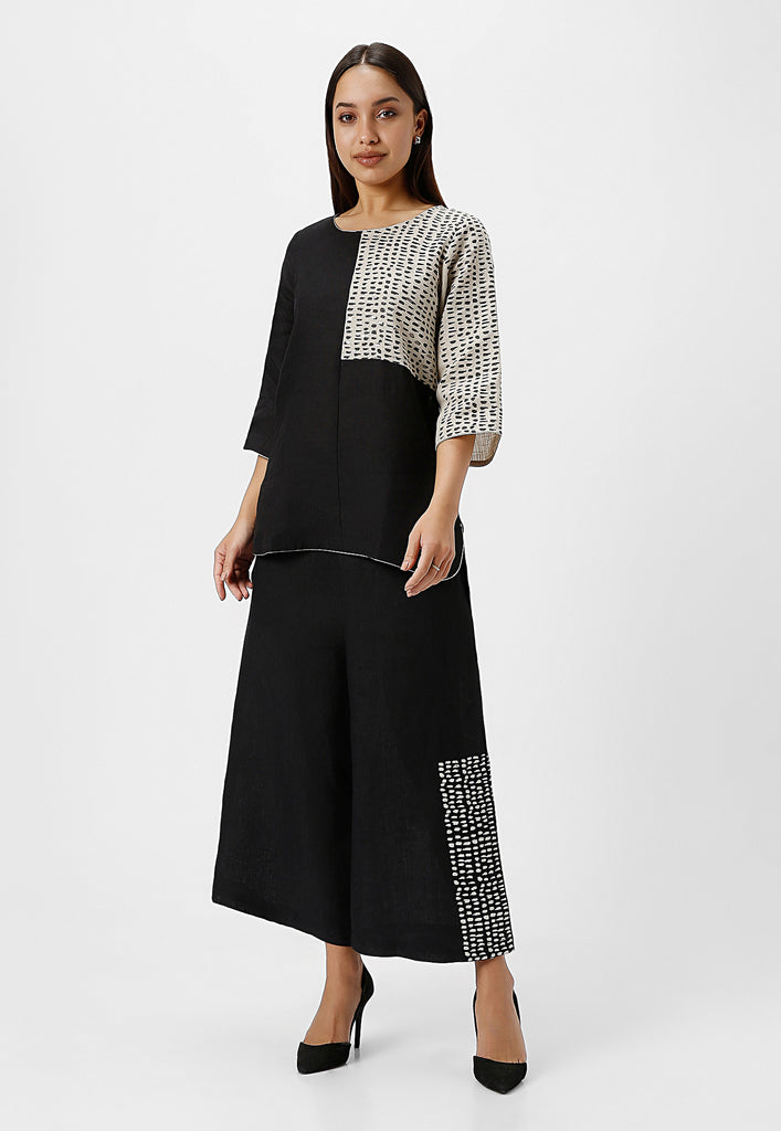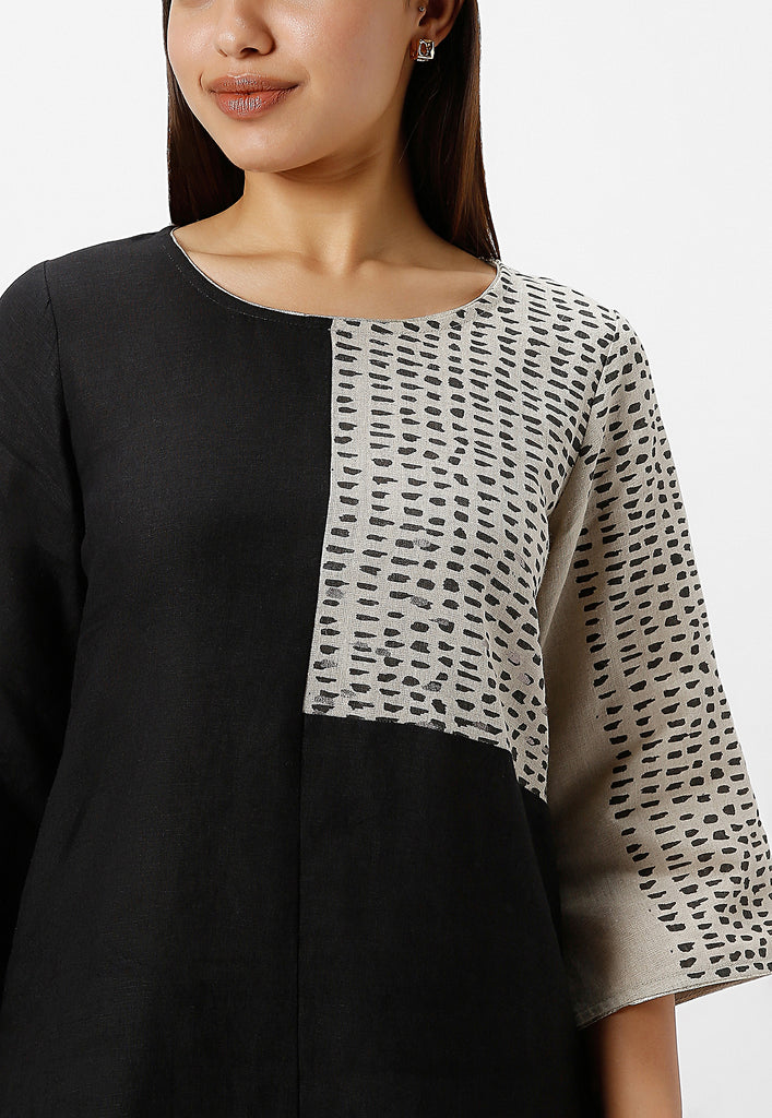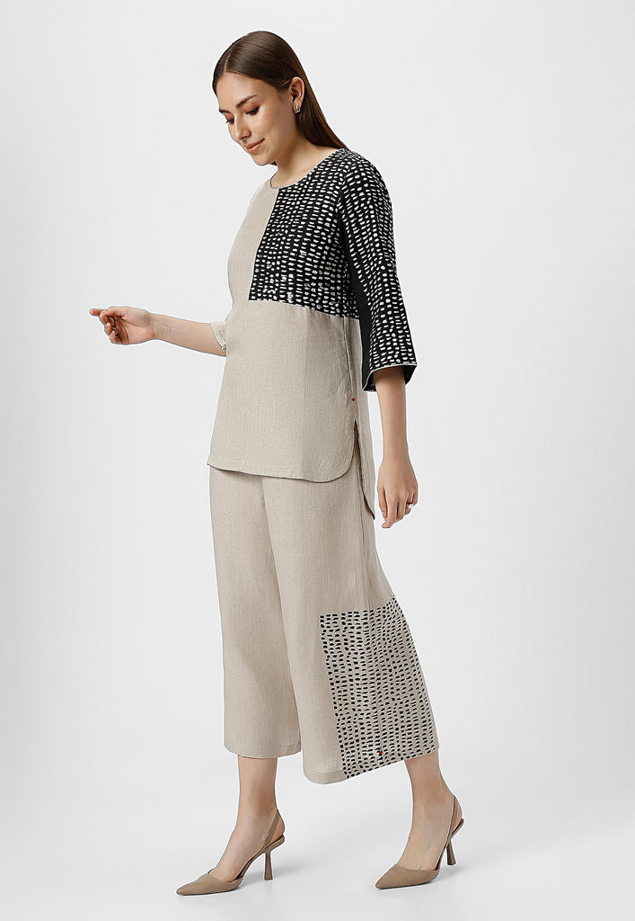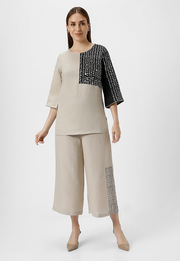 Wander through the serene woods on fine linen, gleaming in gold with abstract brush strokes, textures and patterns that come to life through meticulous hand screen printing and foiling- elevating your style quotient to a high this season.