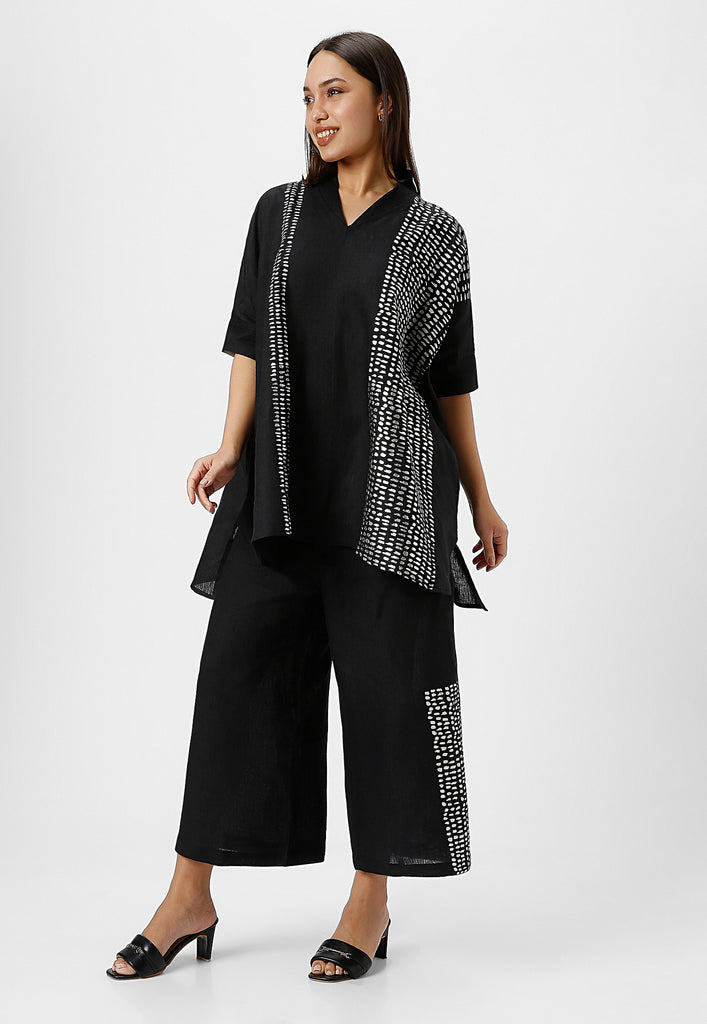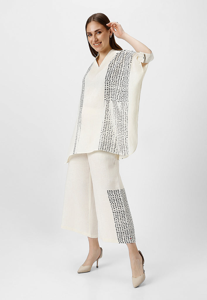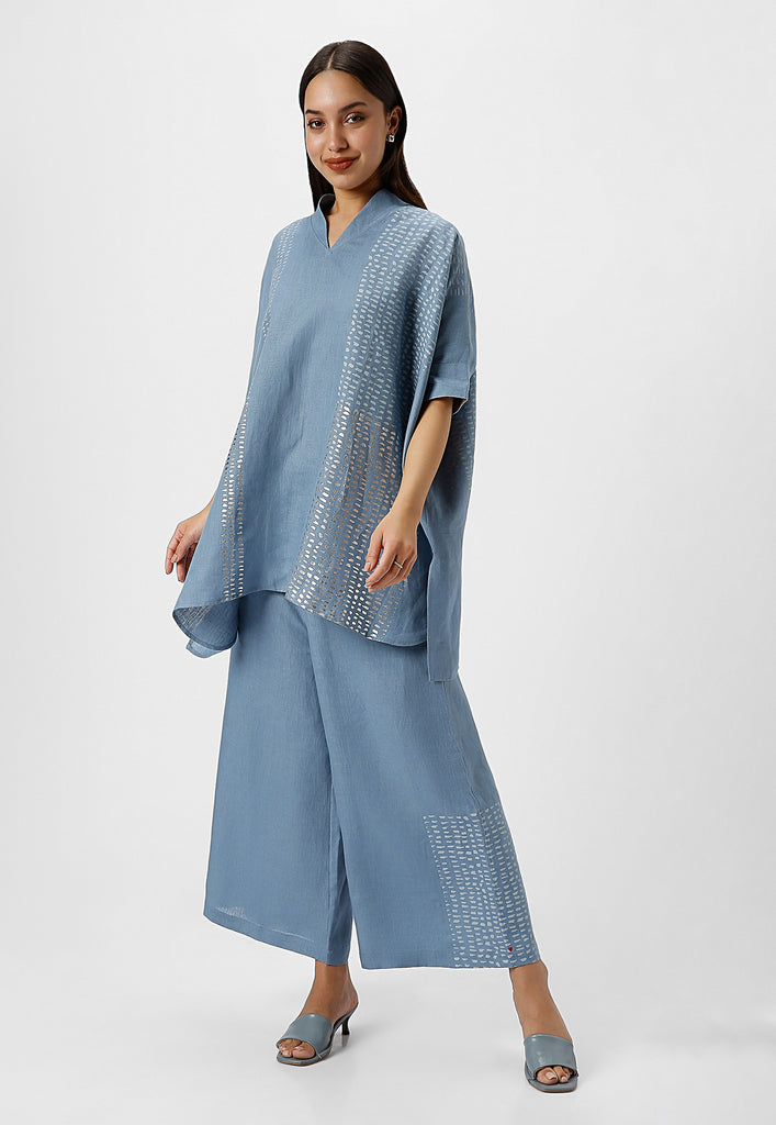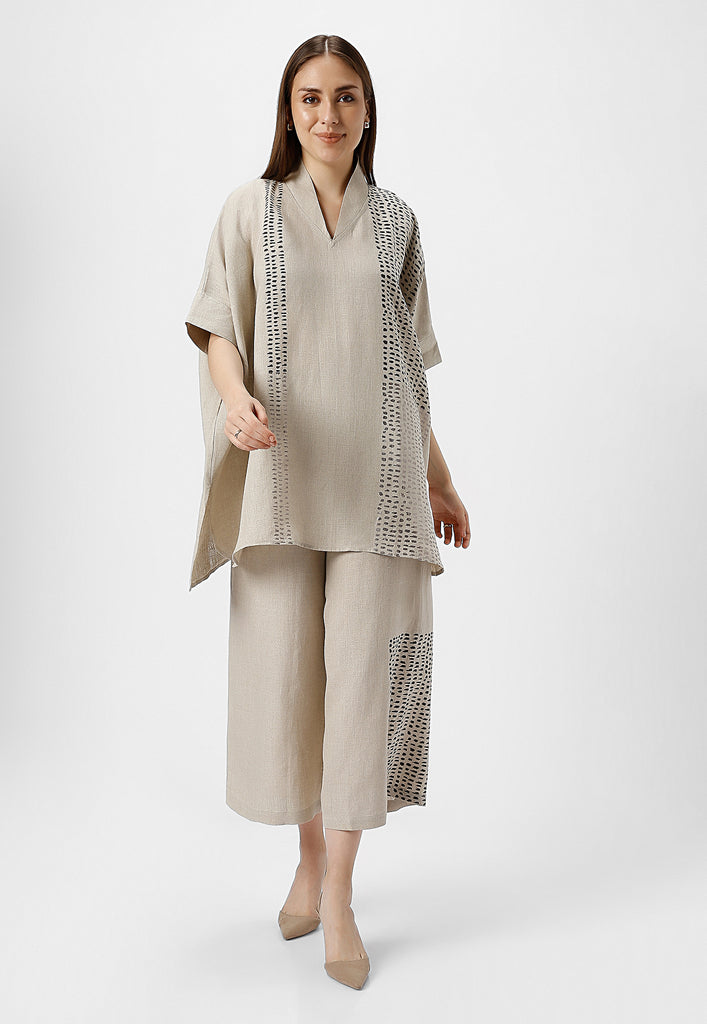 Wander through the serene woods on fine linen, gleaming in gold with abstract brush strokes, textures and patterns that come to life through meticulous hand screen printing and foiling- elevating your style quotient to a high this season.