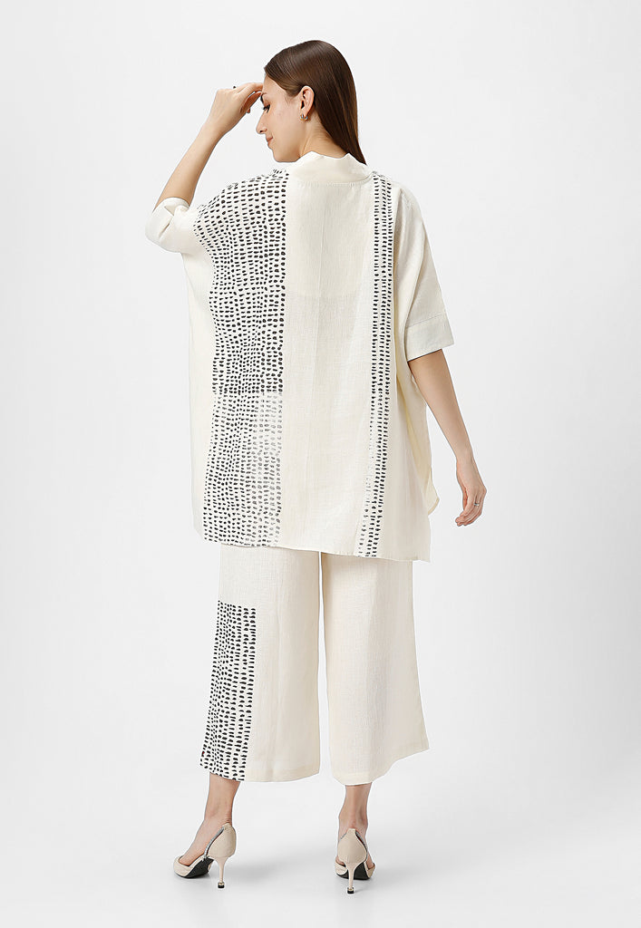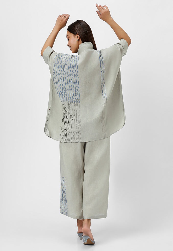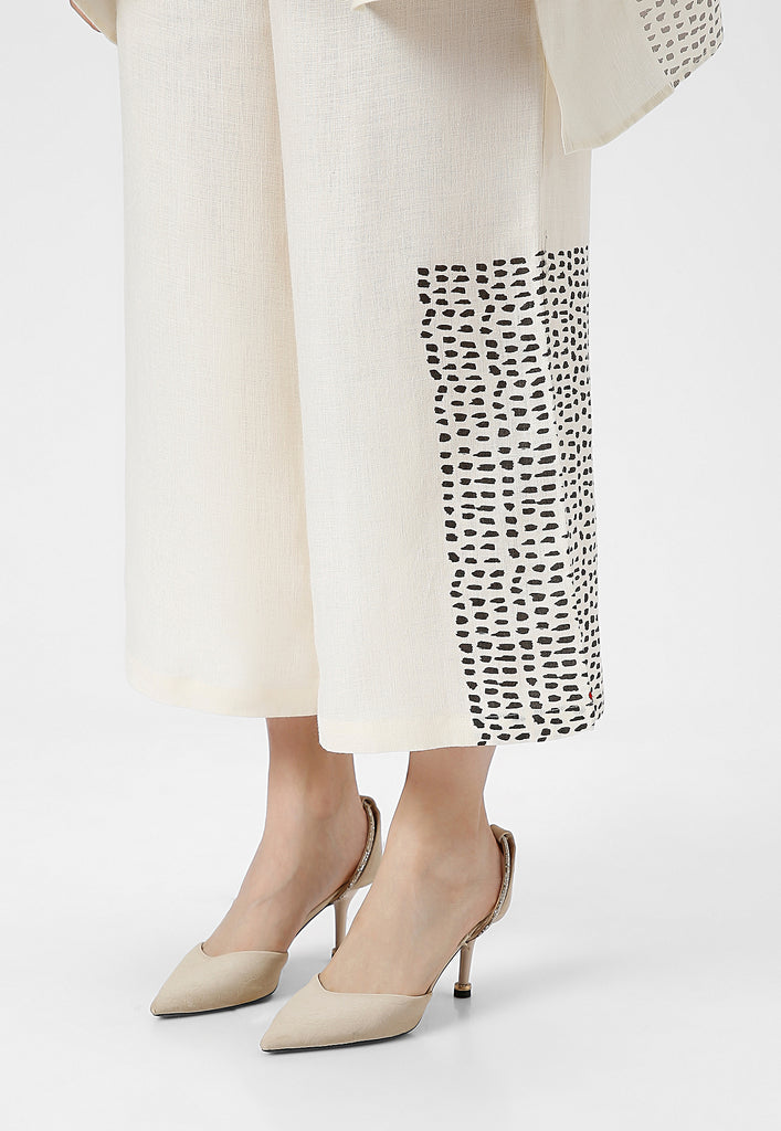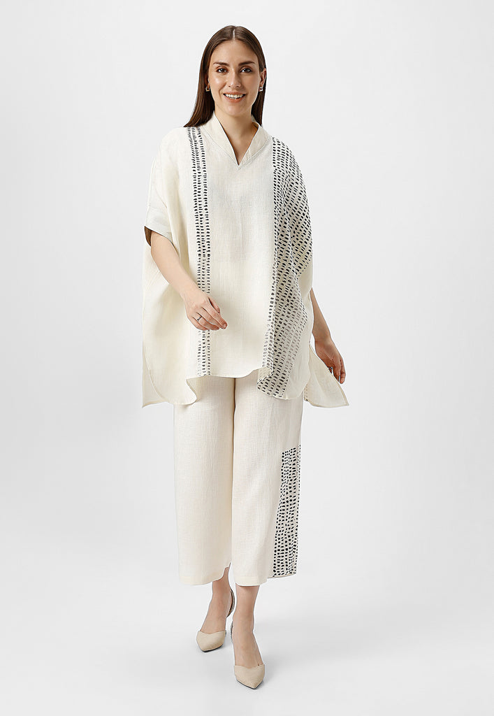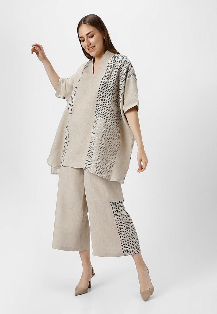 Wander through the serene woods on fine linen, gleaming in gold with abstract brush strokes, textures and patterns that come to life through meticulous hand screen printing and foiling- elevating your style quotient to a high this season.