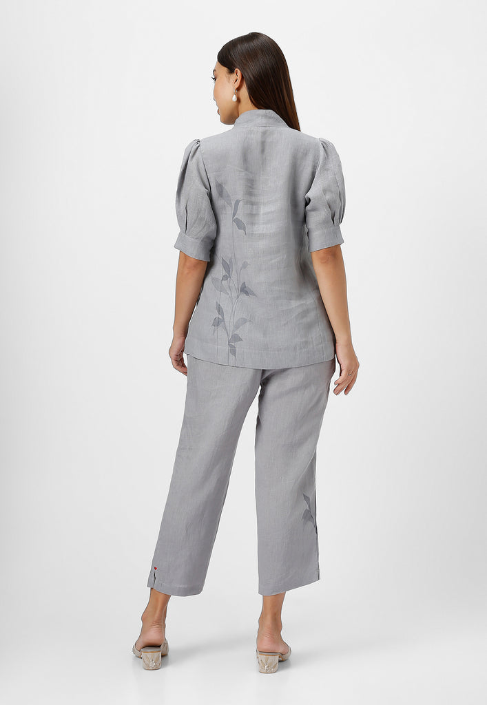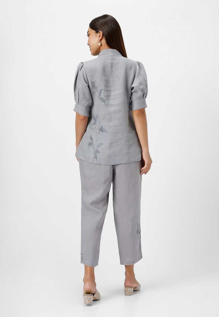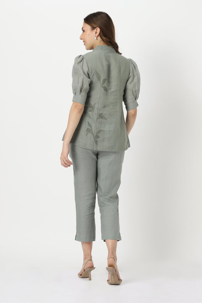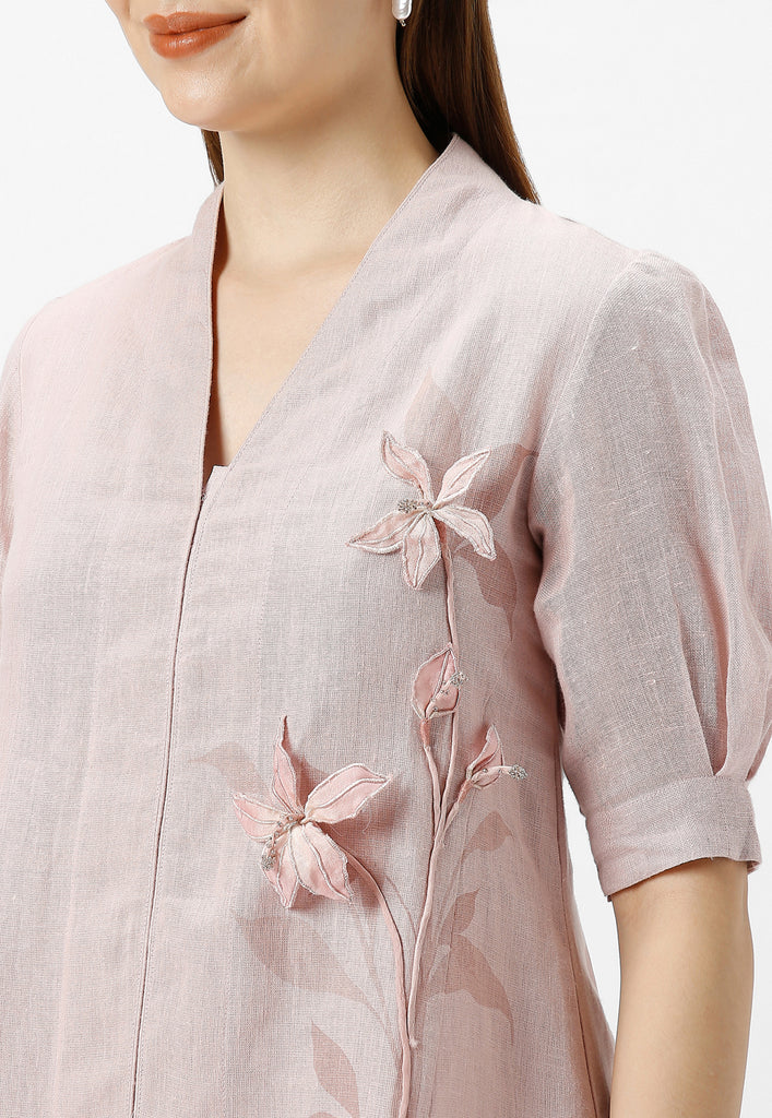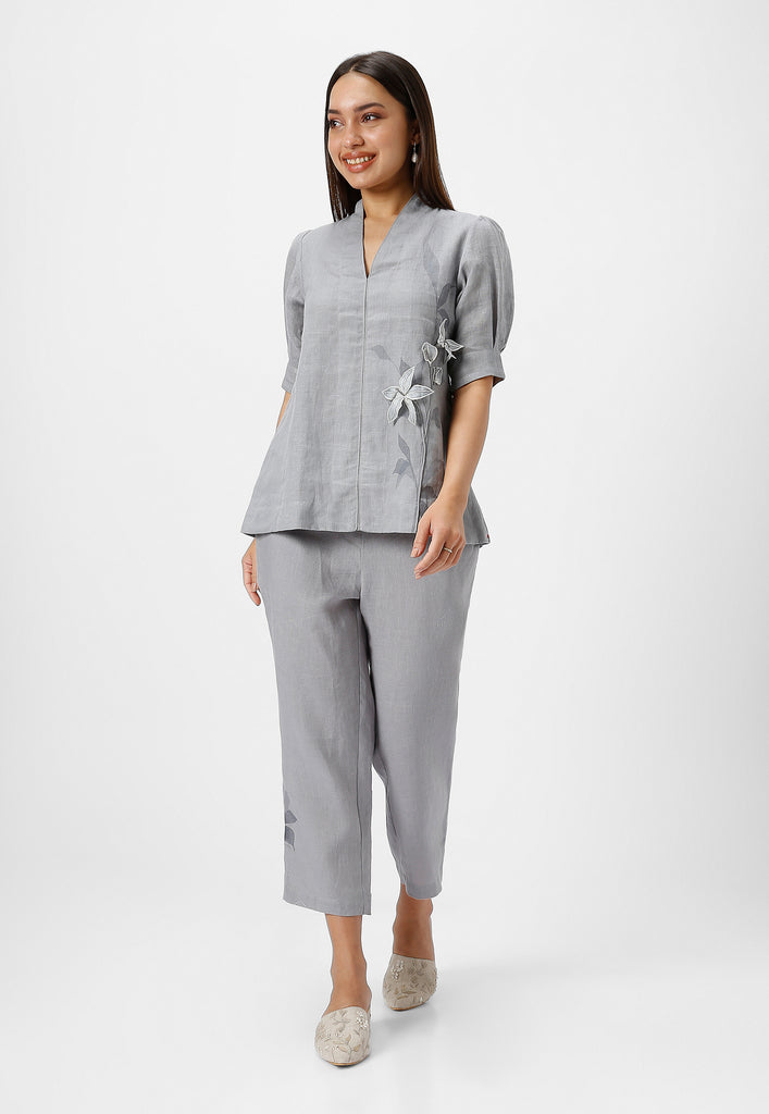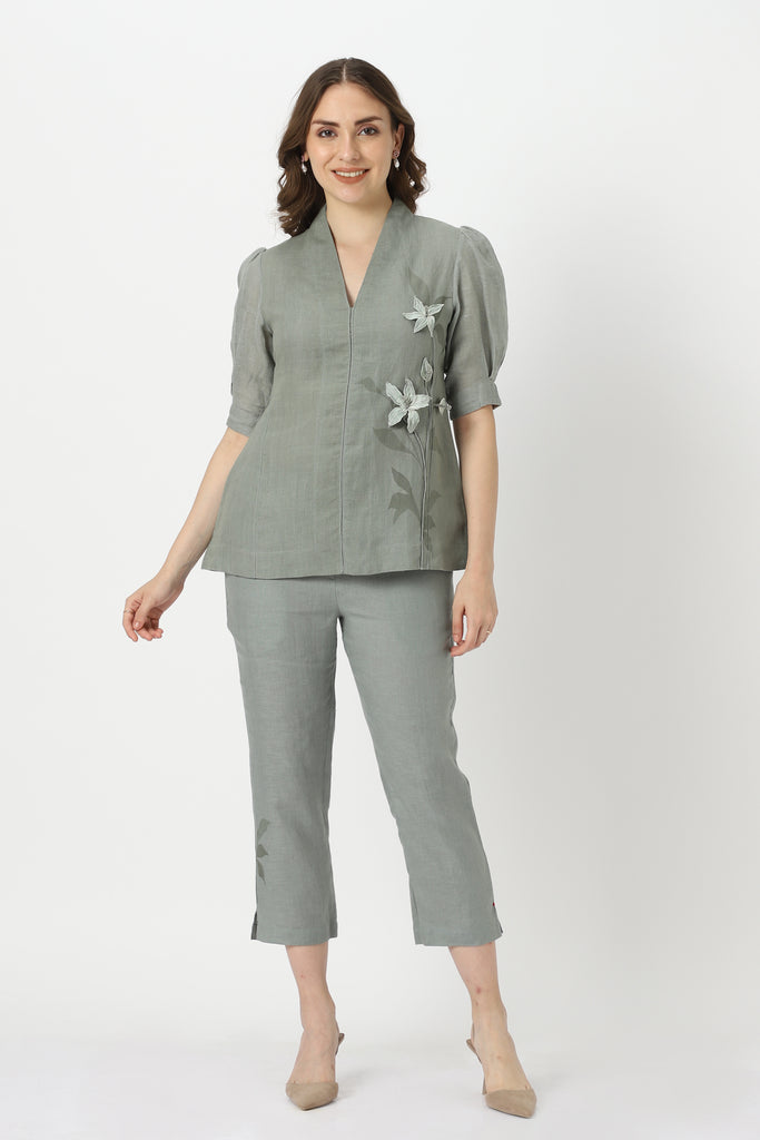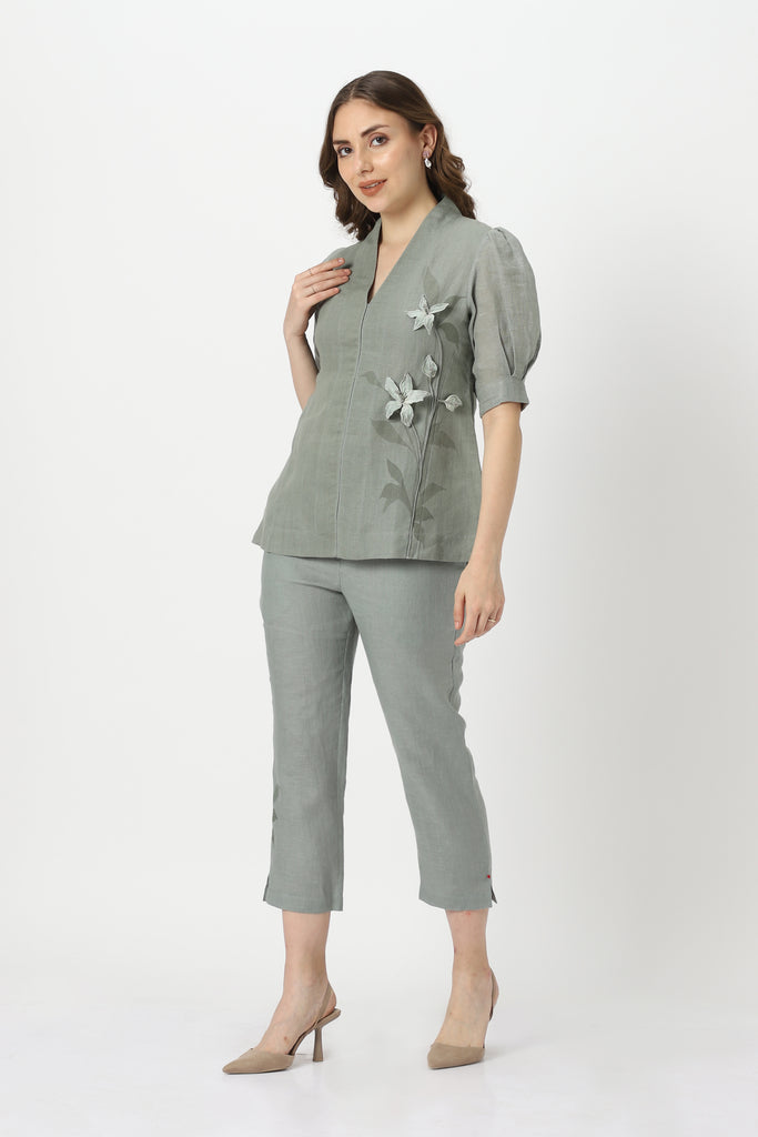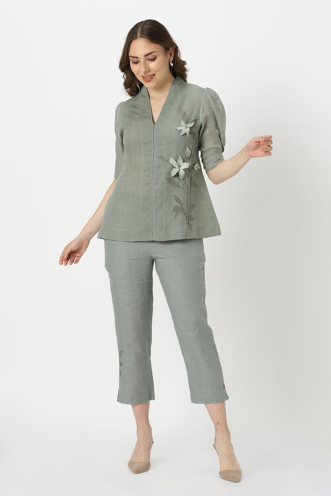Inspired by divine lilies that calmly float across a pond, the Lilly Burst is a charismatic interpretation of the flower on fine linen. Blooming across the expanse of the fabric are small 3D lilies hand-embroidered with wires for flexibility, shaded and dip-dyed; delicately appliquéd on pigments that represent gentle shadows of their likeness for depth and intrigue. This range makes for the perfect semi-formal wear to work or for any special occasion this season. Available in stunning shades of jade, shadow rose and shadow blue.