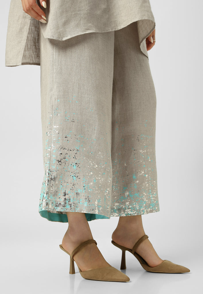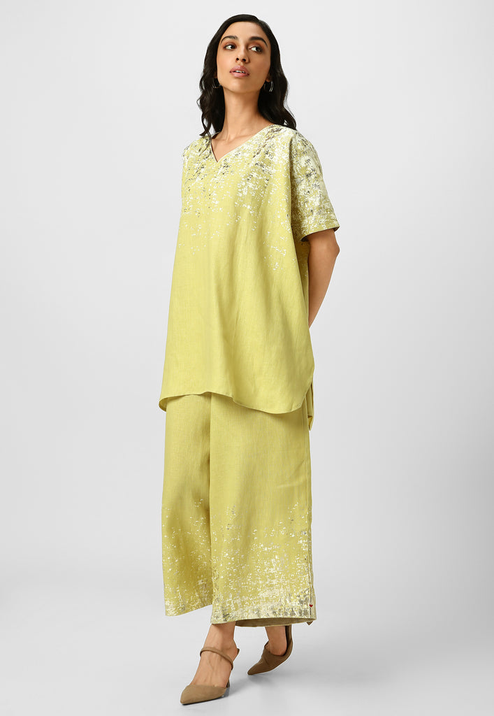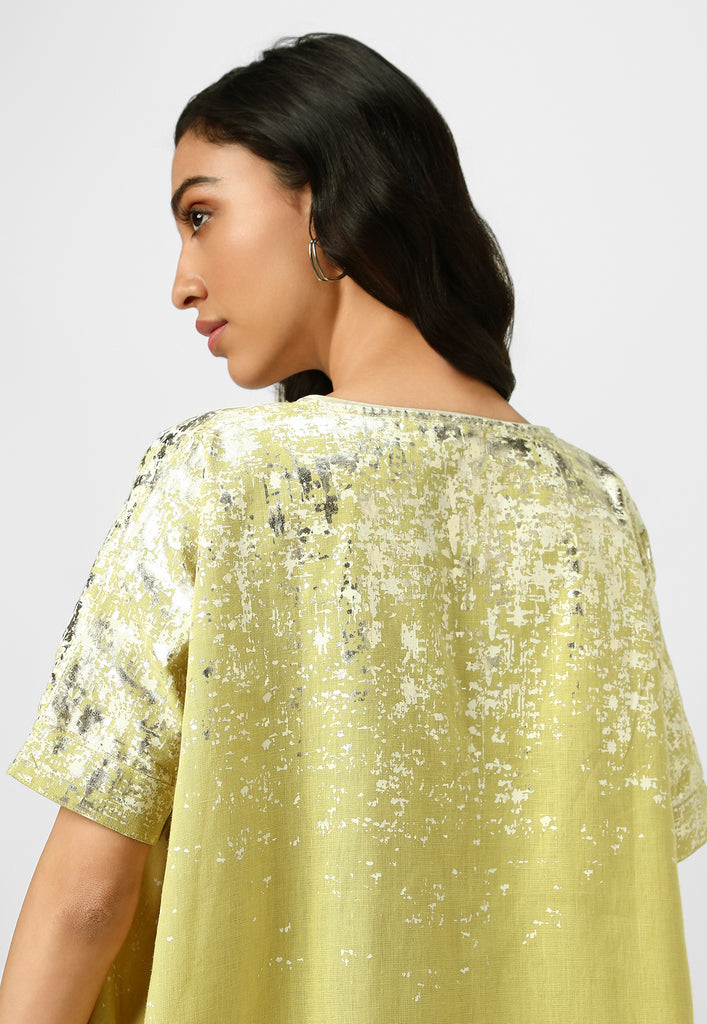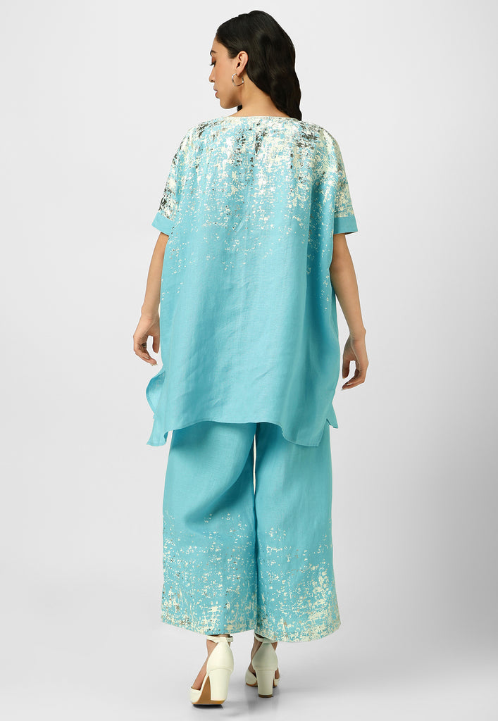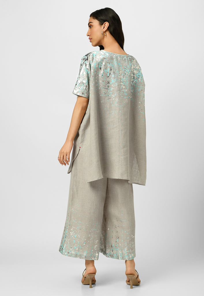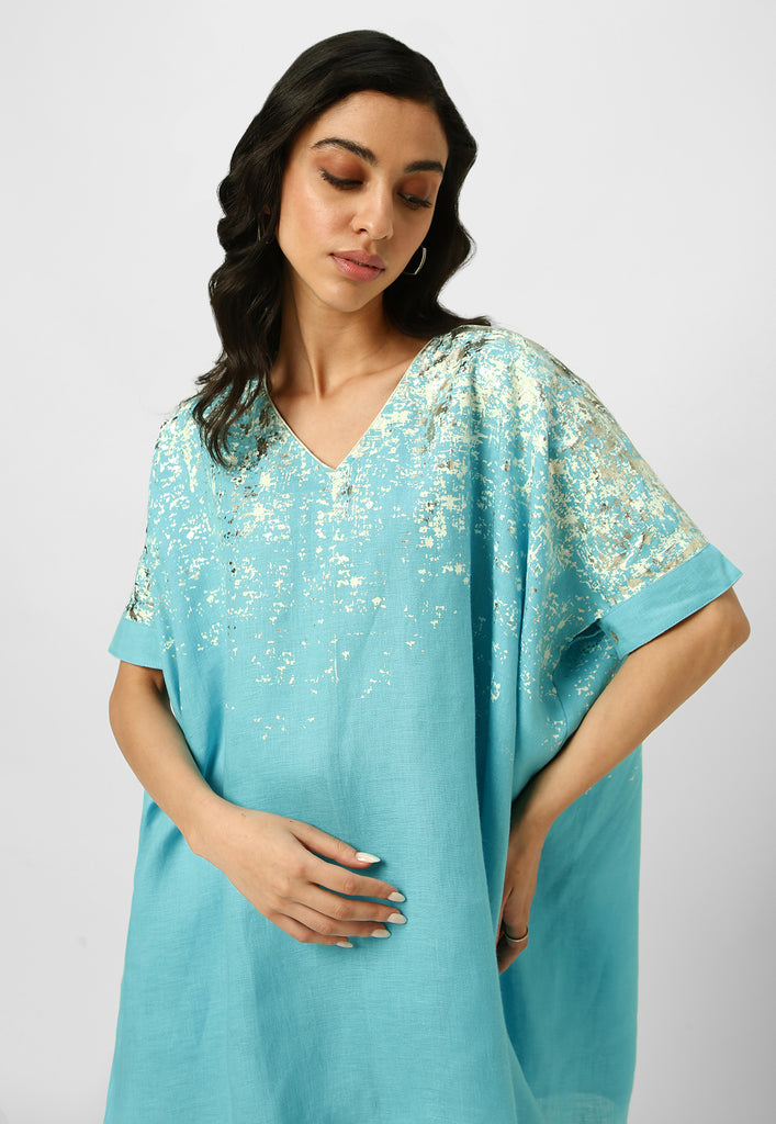 Step into paradise in a breezy work of art inspired by the rustic charm of Venetian walls. Crafted from the purest linen fabric in comfortable, angled silhouettes that beautifully curve on your body for your next getaway, this collection is masterfully shaded with captivating strokes and a touch of gold- using an amalgamation of foil and pigment- adding colour, depth and intrigue. Choose from a breathtaking combination of shades from neon-offwhite, natural-lagoon and lagoon-offwhite.