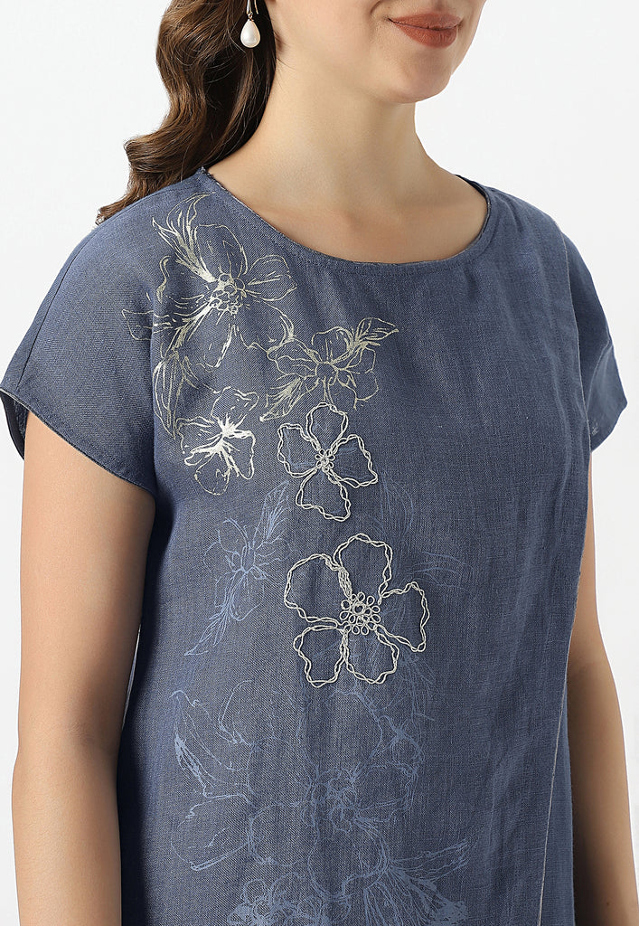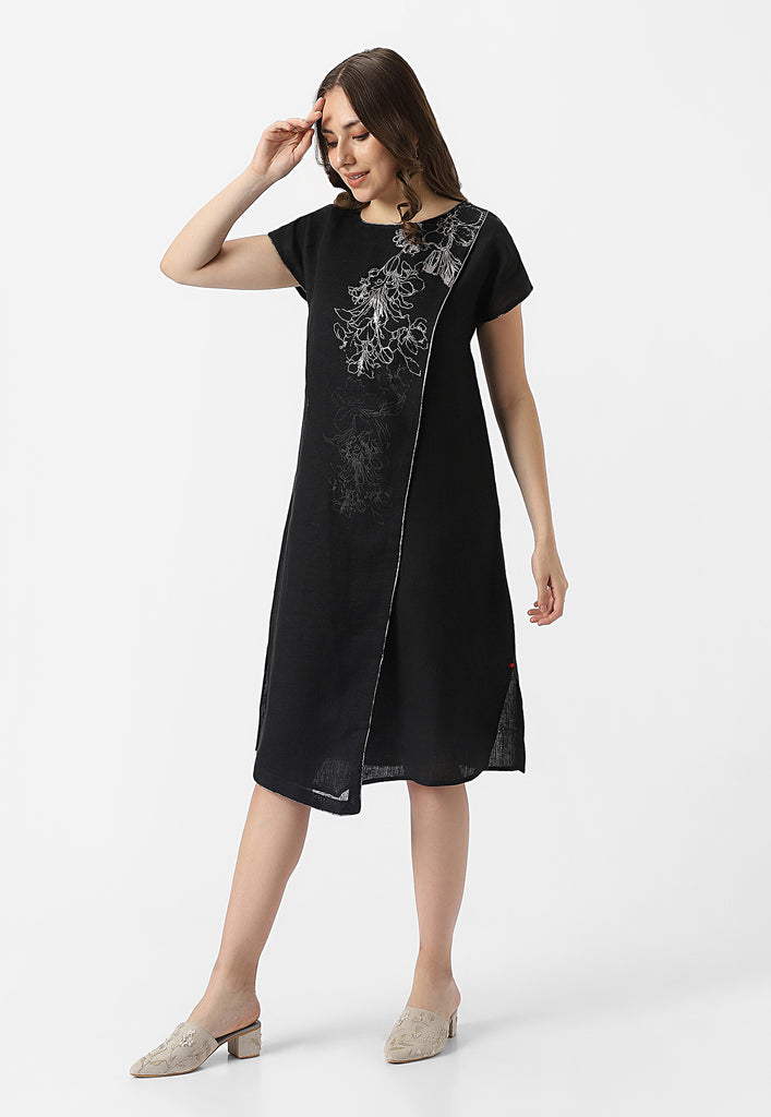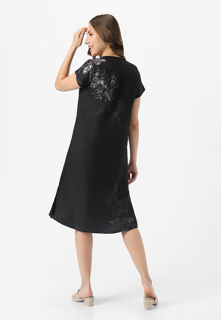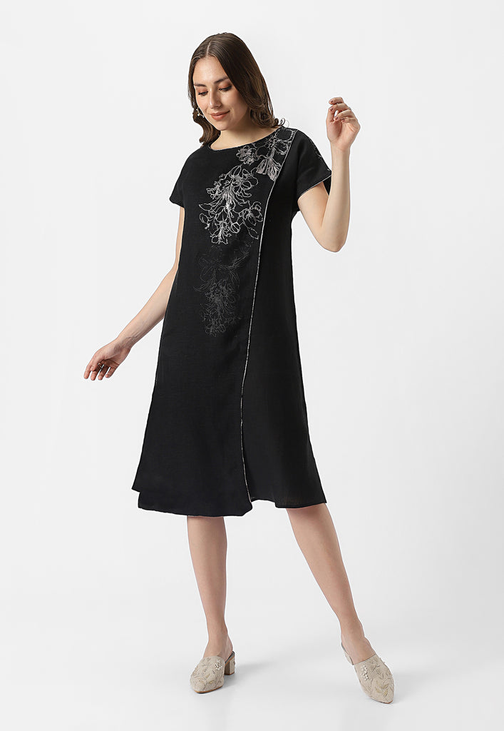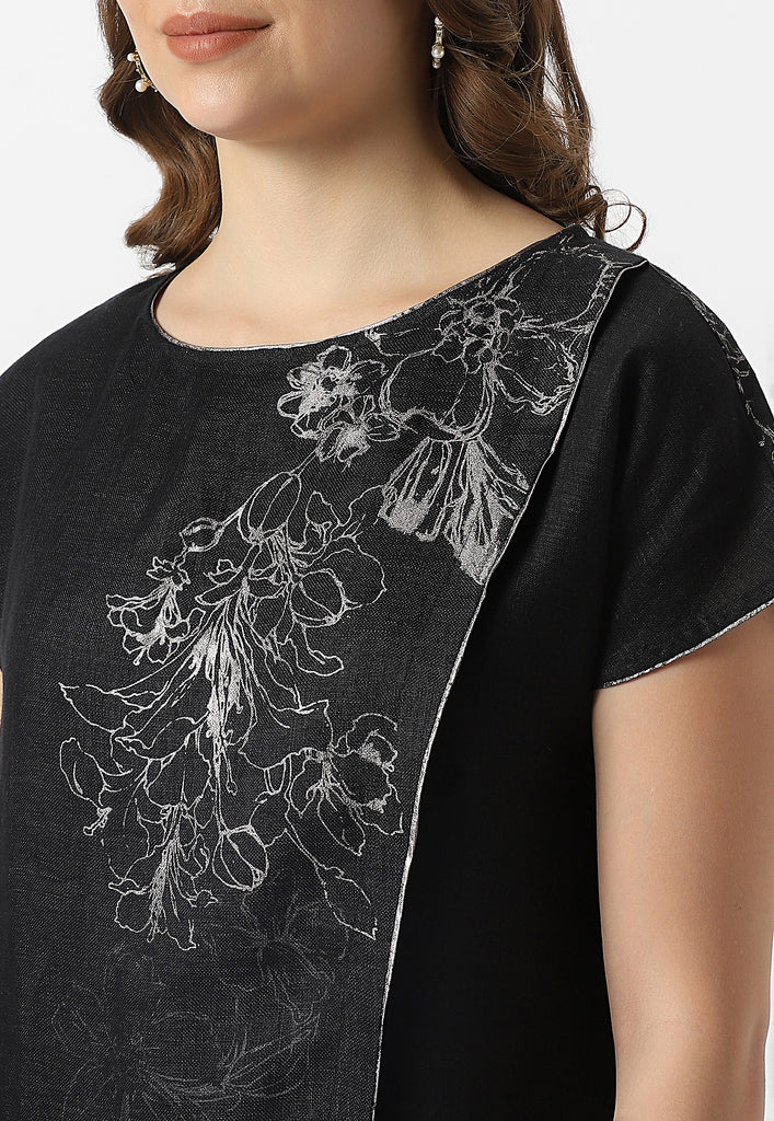 Immerse yourself in hand-drawn doodles that bloom on fine linen; hand-embroidered with cotton thread adding texture, shape and a pop of colour accompanied by tonal screen printing and foiling to add a sense of depth- letting your style shine with unparalleled grace. Available in beautiful shades of black and twilight.