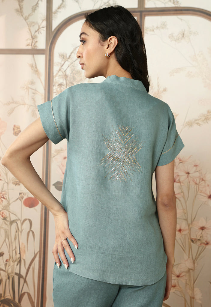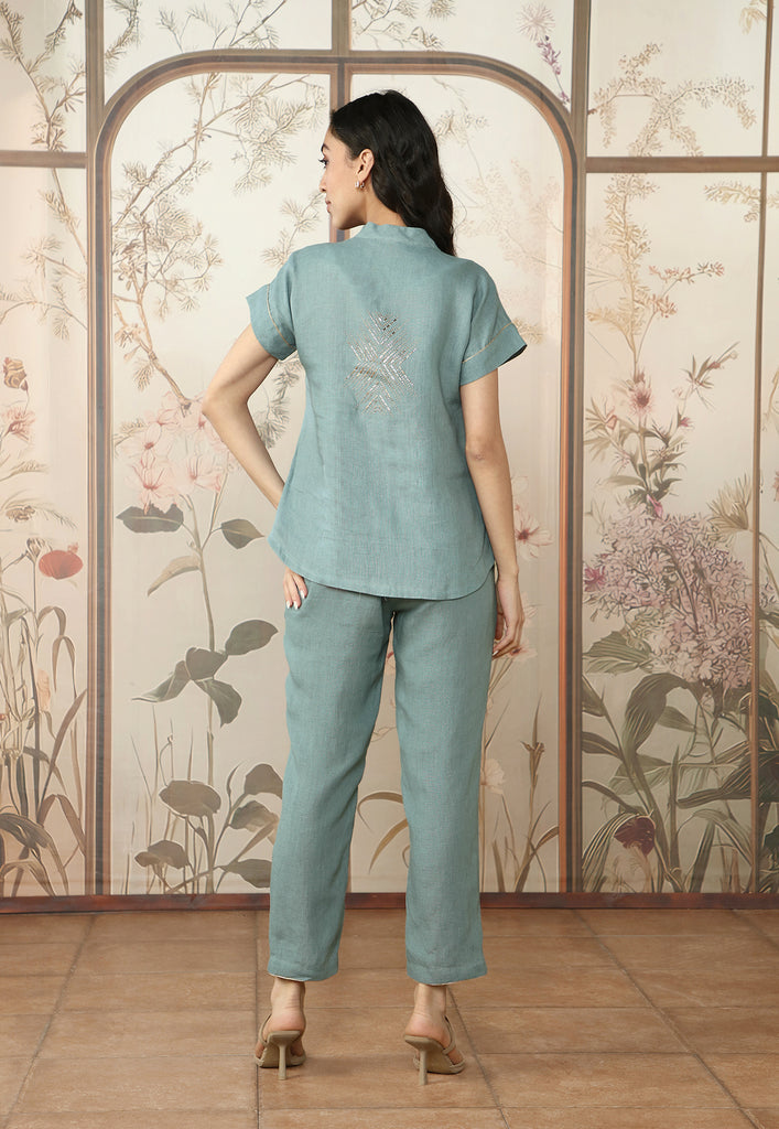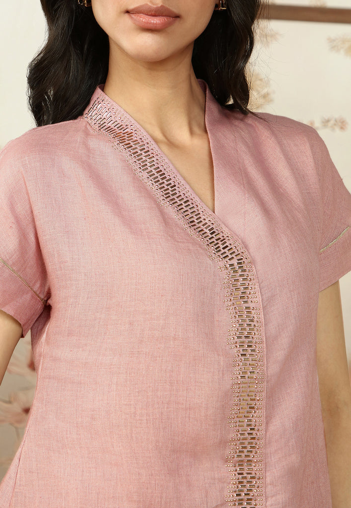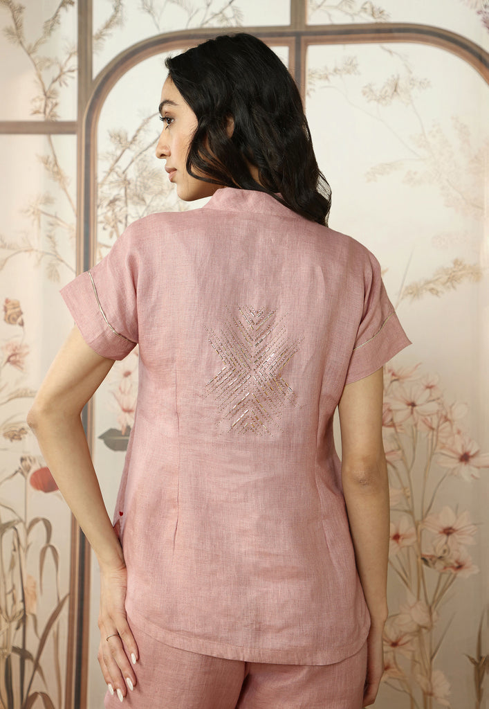 Make a dazzling entrance at your festivities in the gleaming fervour of Starlight: a stunning collection bejewelled in rose gold studs- heat-pressed craft in geometric patterns on luxurious linen. Available in glorious shades of quartz and lake.