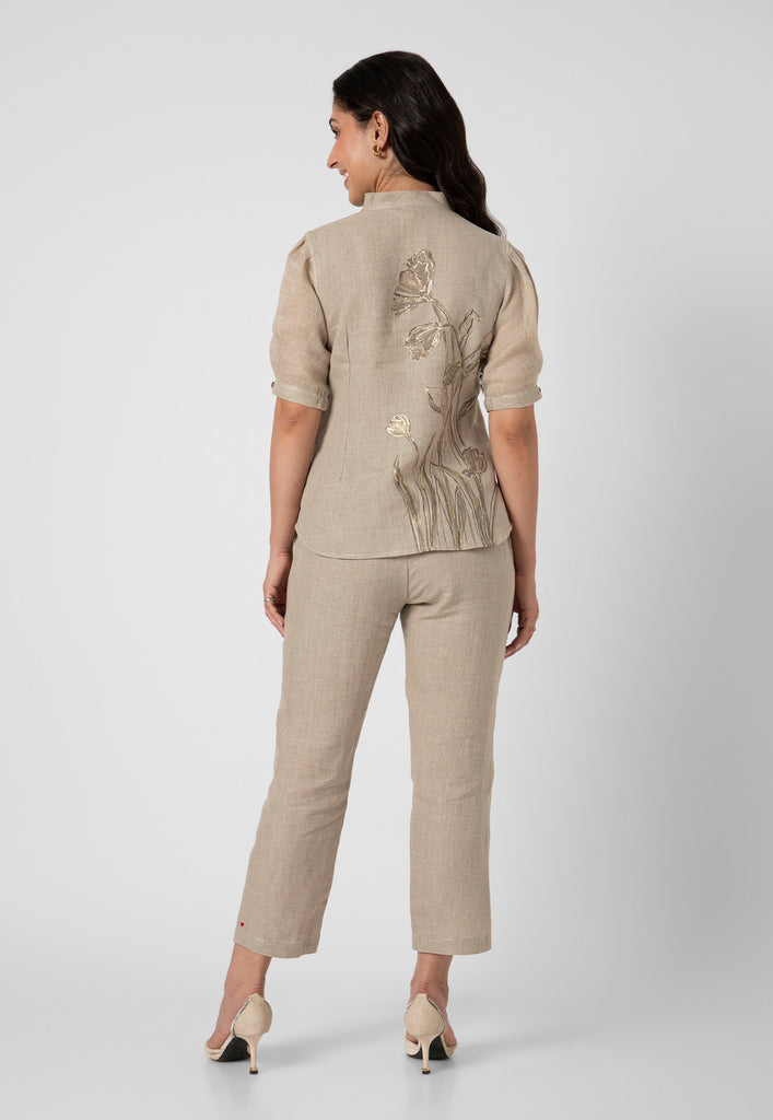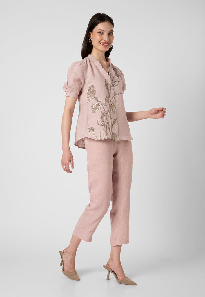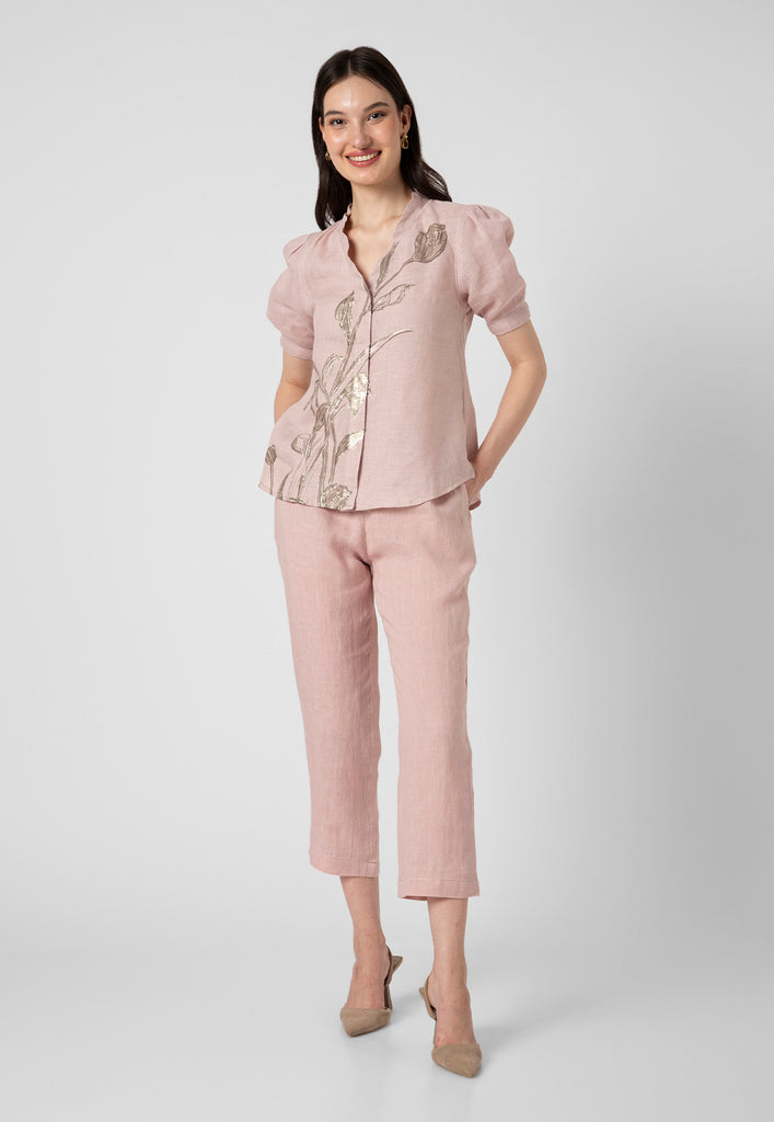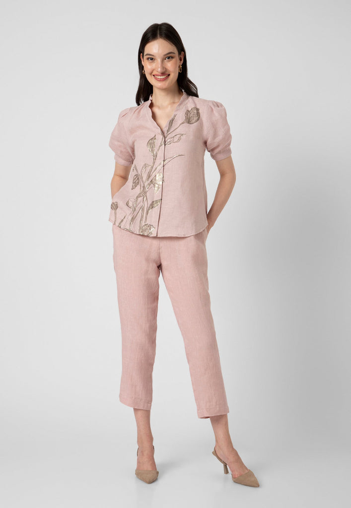 Inspired by sublime charcoal paintings, the Tulip Pencil range boasts abstract motifs of the dainty bloom- hand screen printed and emblazoned with thin lines of heat-pressed craft which elegantly pervades the body of luxurious linen. Available in beautiful shades of natural, yellow, Shadow Rose and off-white.