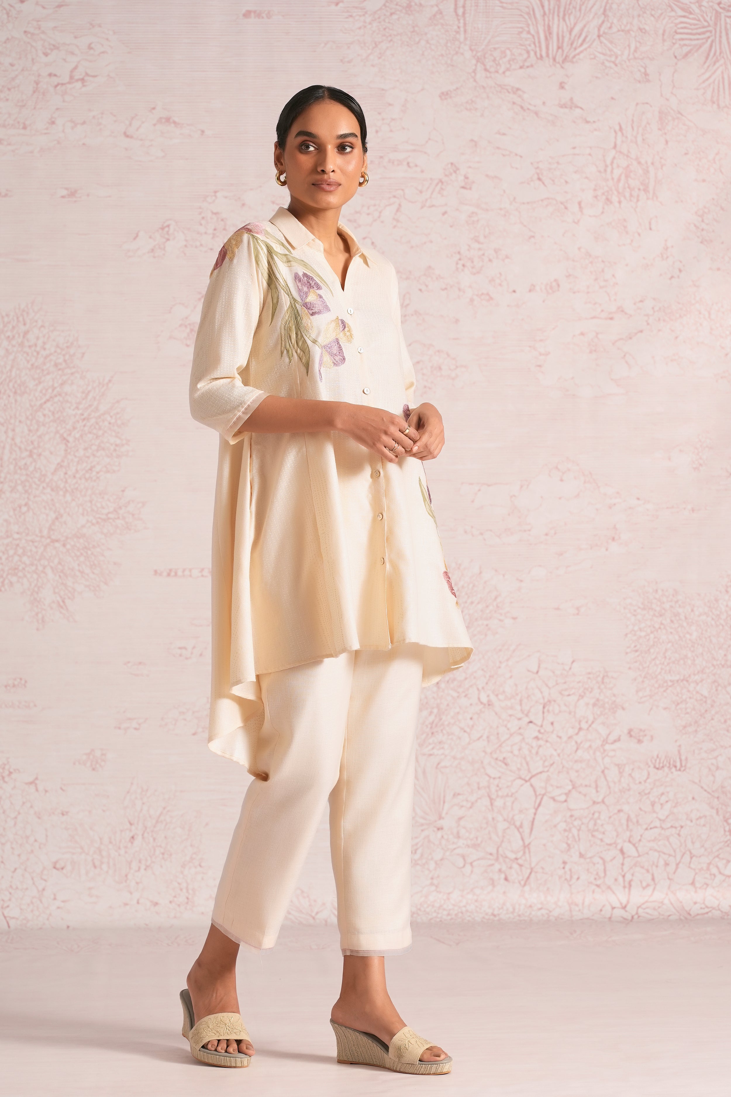 Painted Petals is a delicate interplay of art and craftsmanship, where soft floral forms come alive through gentle washes of watercolor. Each petal is thoughtfully hand-painted and layered with fine embroidery stitches, adding texture, depth, and a quiet sense of dimension. Rendered in the serene hues of Bonny and Parchment, the palette enhances the collection’s light, sun-kissed elegance. The silhouettes feel airy and graceful, allowing the artwork to flow effortlessly across the garments. Refined yet expressive, the collection captures the romance of summer florals with subtle detail and timeless charm. Light, feminine, and beautifully composed, Painted Petals is designed to feel poetic, elegant, and effortlessly captivating for the season.
