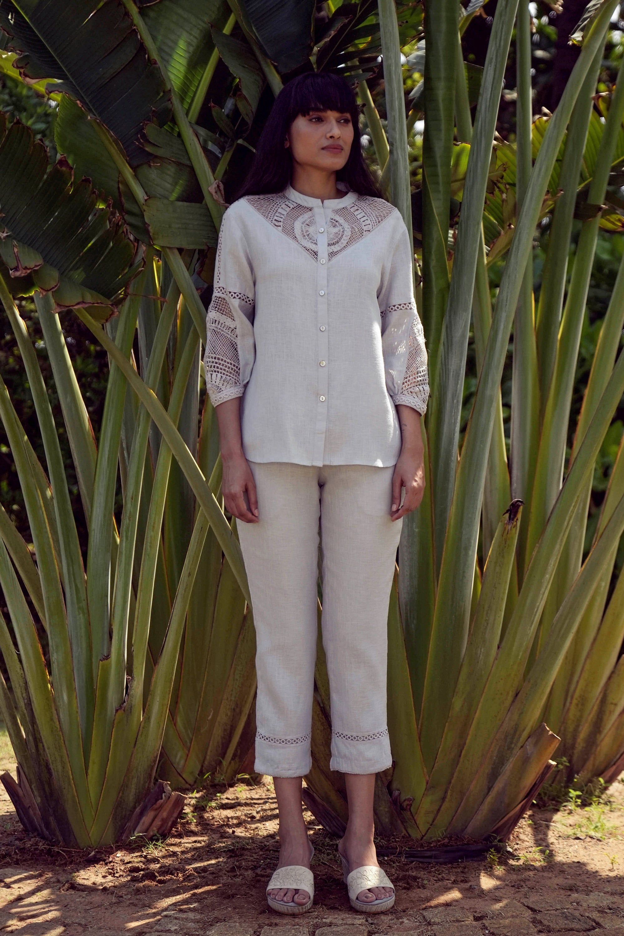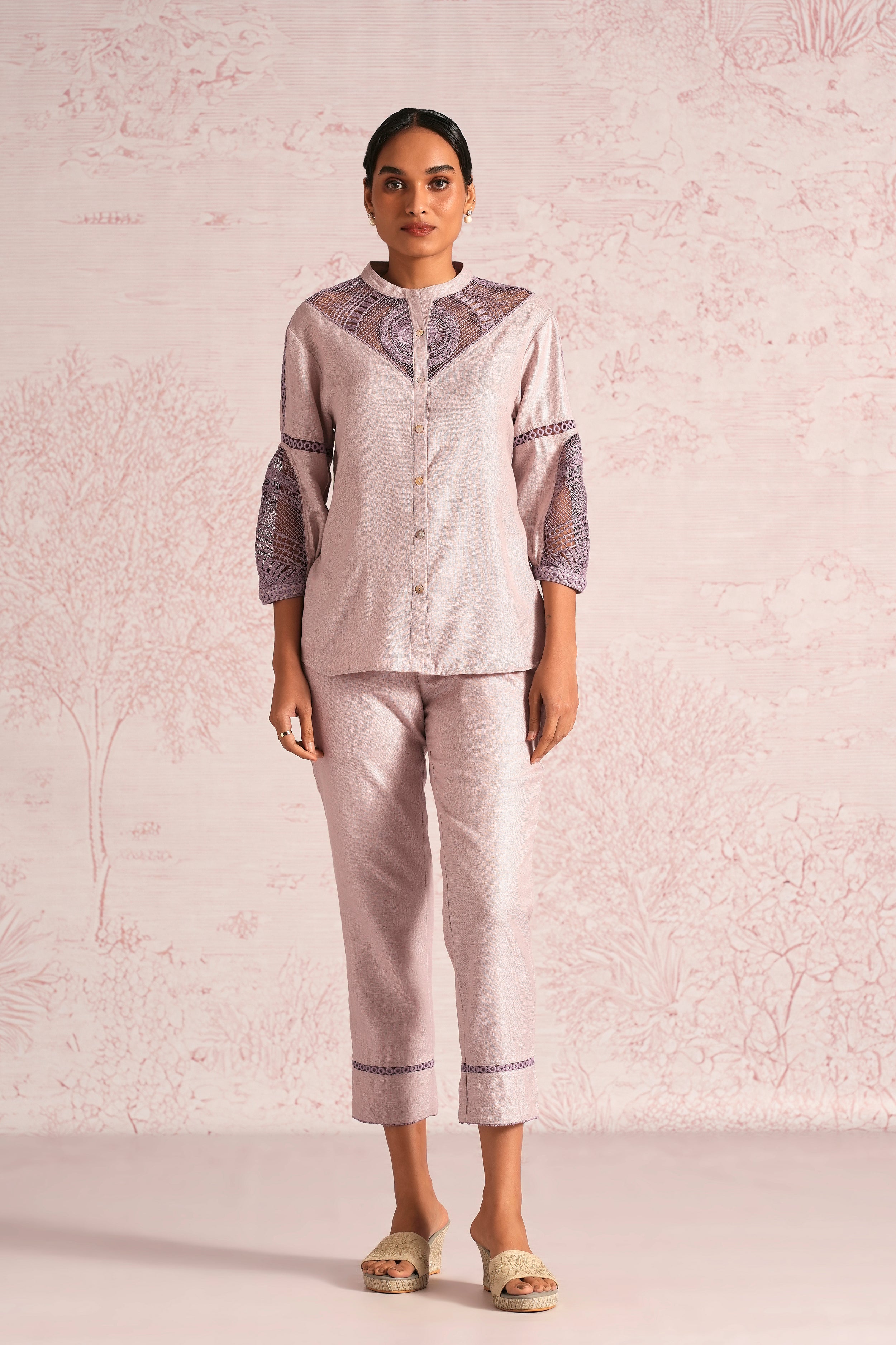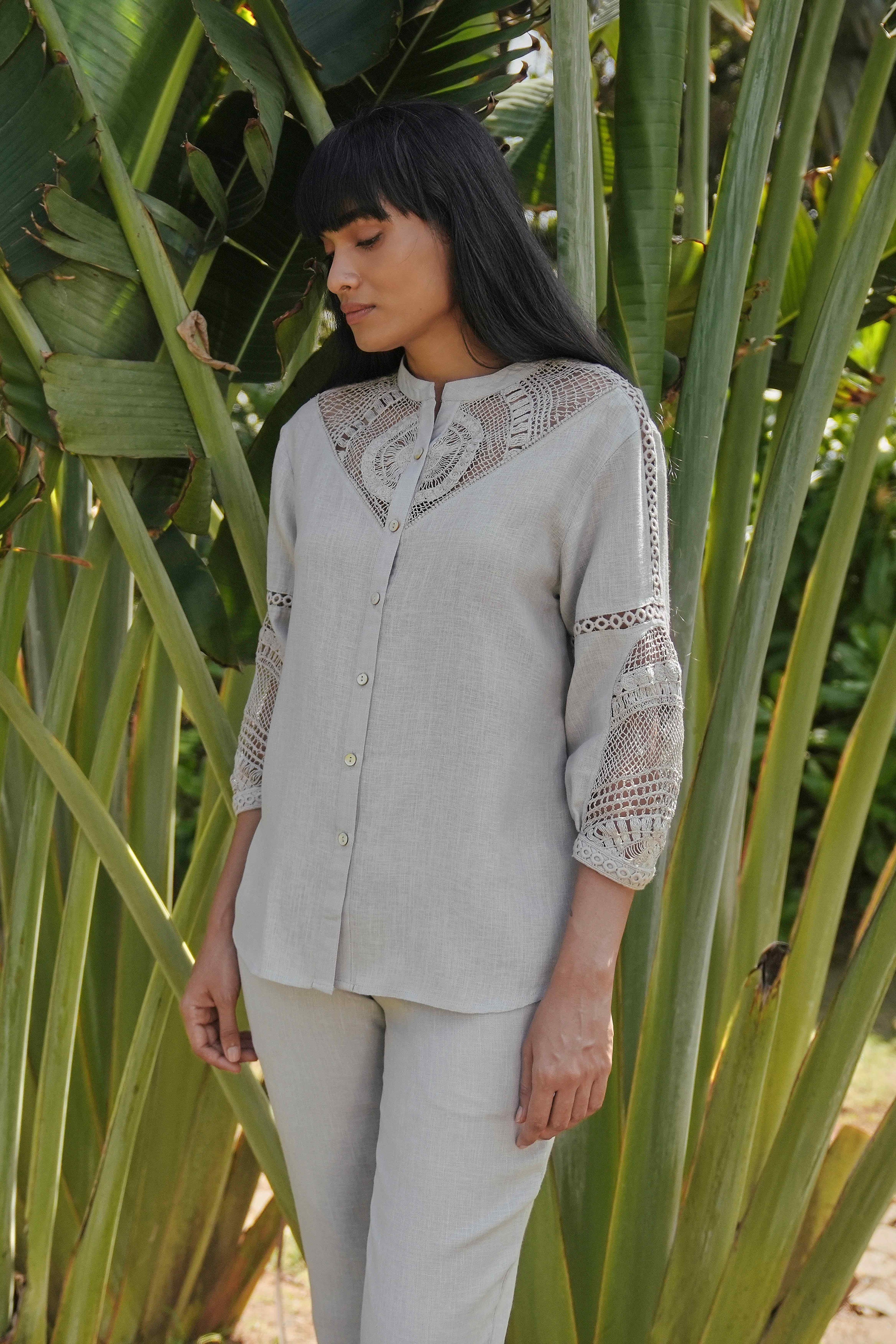 Summer Threads is a quiet celebration of craftsmanship, where elegance is expressed through the simplest of gestures. At its heart, a single thread journeys gracefully across each garment, forming abstract, symmetrical patterns that feel both thoughtful and poetic. Delicately handcrafted crochet accents trace the neckline and cuffs, adding texture and refinement without overwhelming the silhouette. Rendered in soft, sophisticated hues of Smoke and Mauve, the palette enhances the collection’s understated charm. Each piece is designed to feel light yet considered, balancing structure with fluidity. Timeless, distinctive, and effortlessly refined, Summer Threads is a rare expression of modern elegance — subtle in detail, yet quietly unforgettable.