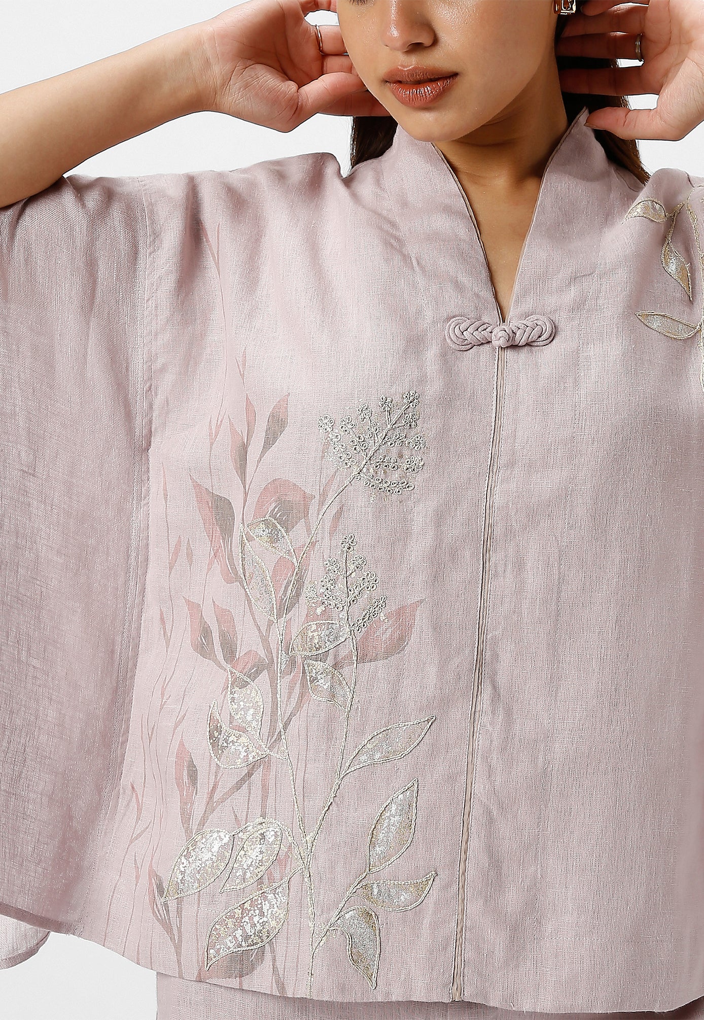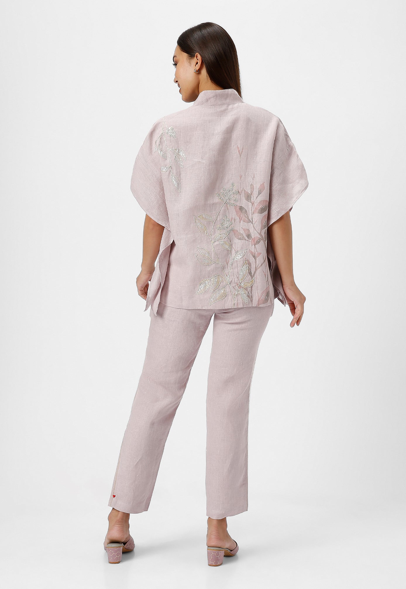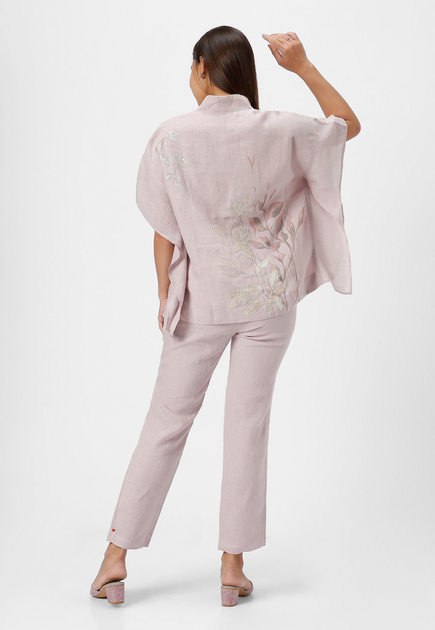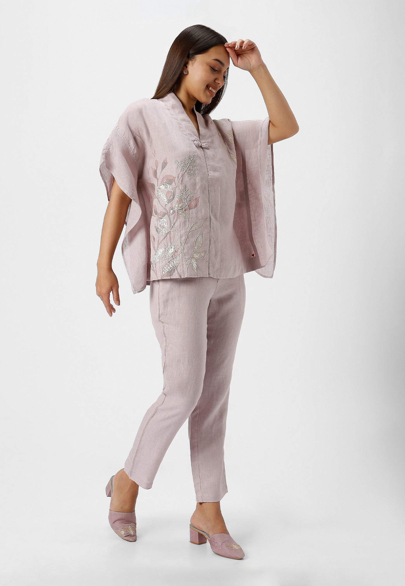 Inspired by the woody, ringed culms of the perennial bamboo, this magnificent range dons the intriguing shadows of these stems overlapping one another by virtue of a three-screen printing technique that is akin to beautiful water colours on fabric. Further elevating the design are intricately hand-embroidered leaves using anchor thread embroidery; stroked with light and dull shades of gold- adding a touch of shimmer with depth while embossing the beauty of the bamboo to the surface on fine linen. This sparkling range also makes for the perfect attire to work on special occasions. Available in stunning shades of off-white, macroon and green tea.