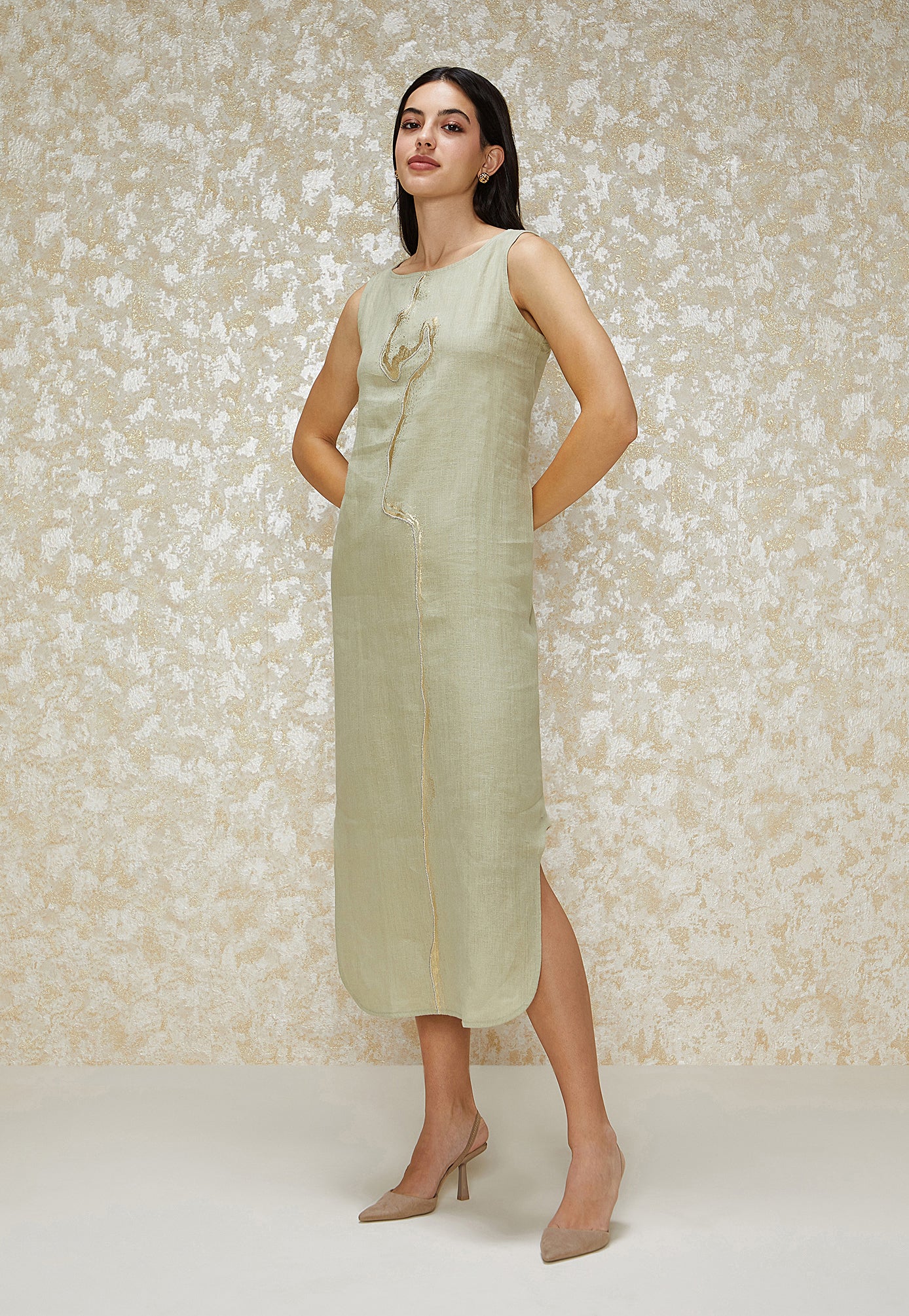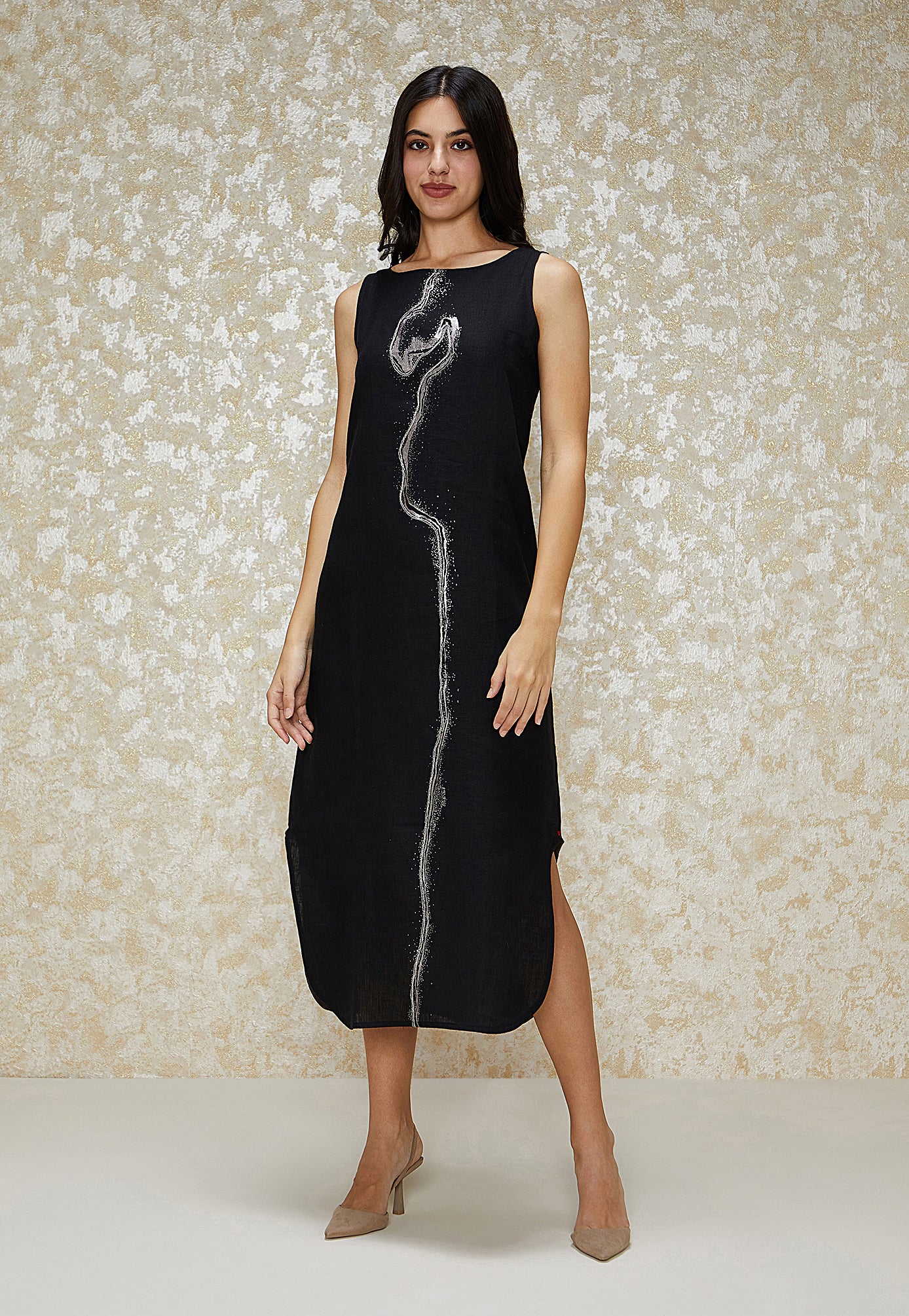 Succumb to your inner cosmic universe with Body Line, a mesmerising piece that emboldens your style, body and inner spirit with an anchor thread motif that unfurls its way down to your heart with glorious iridescence- for you are the center of this universe. This pathway implodes into a burst of stars sprinkled in foil print that elevates your sartorial aura- shimmering into an invigorating new high- for you are the shining star. These exquisite pieces come in divine shades of blush, natural, white, black and shadow blue.