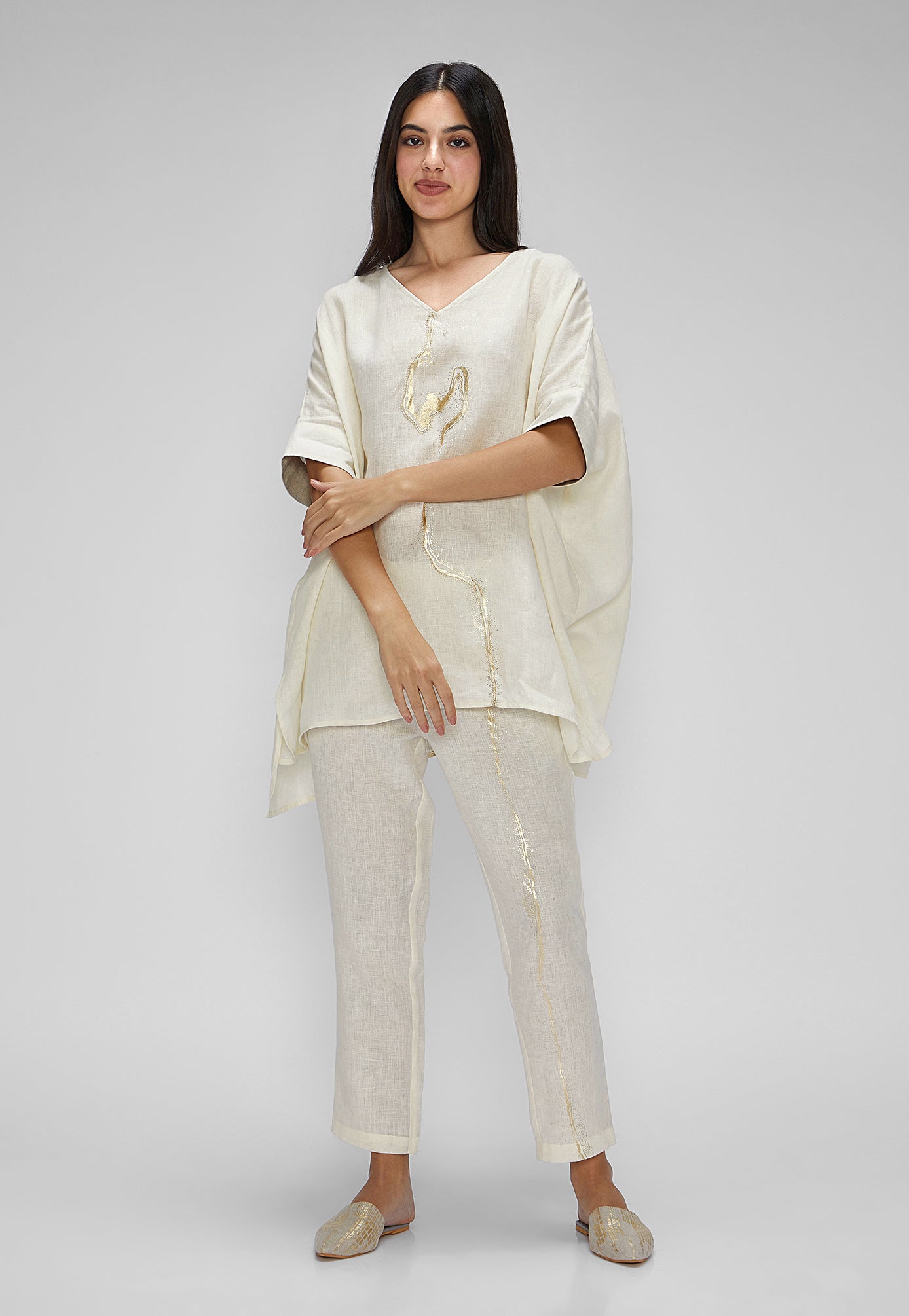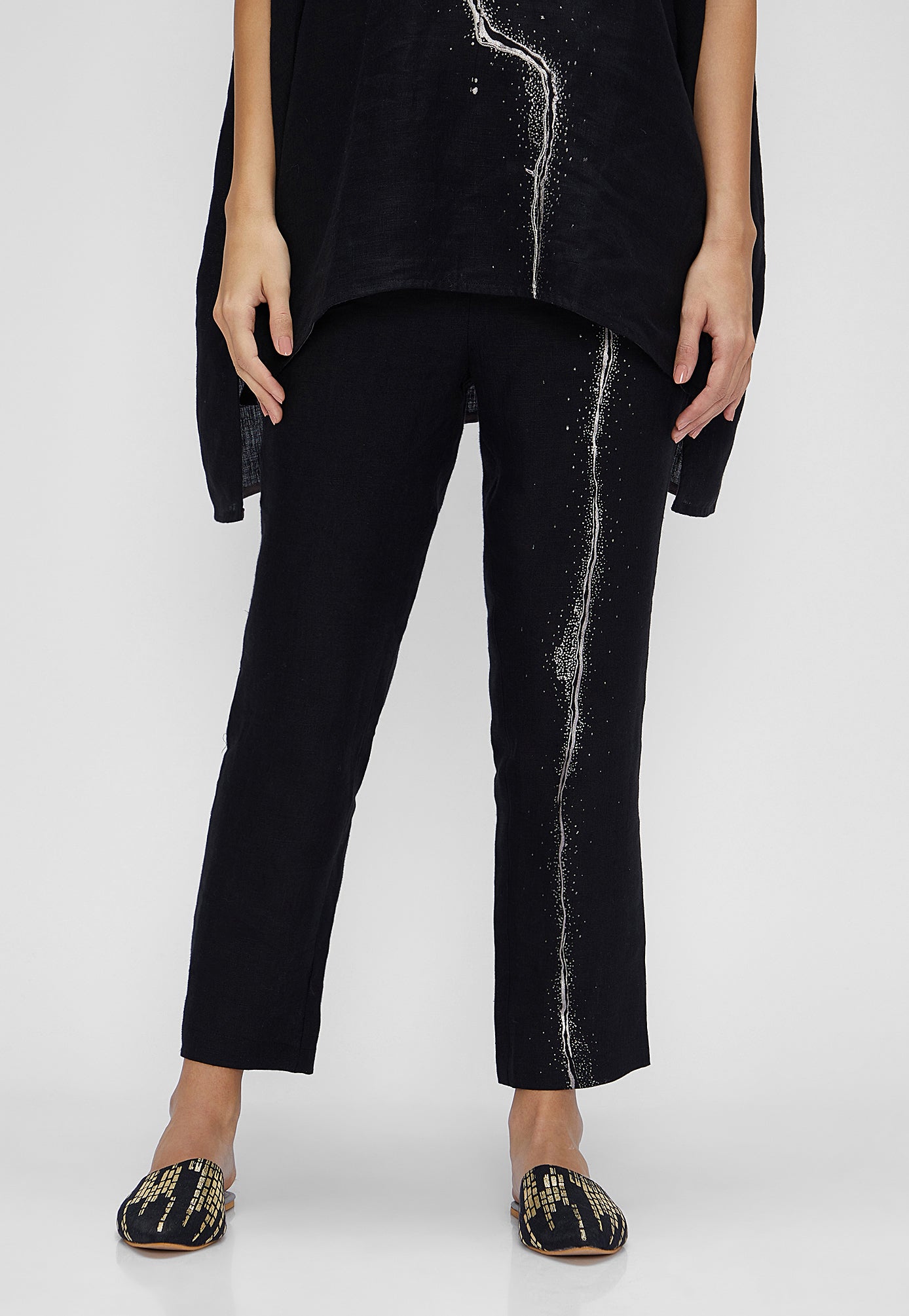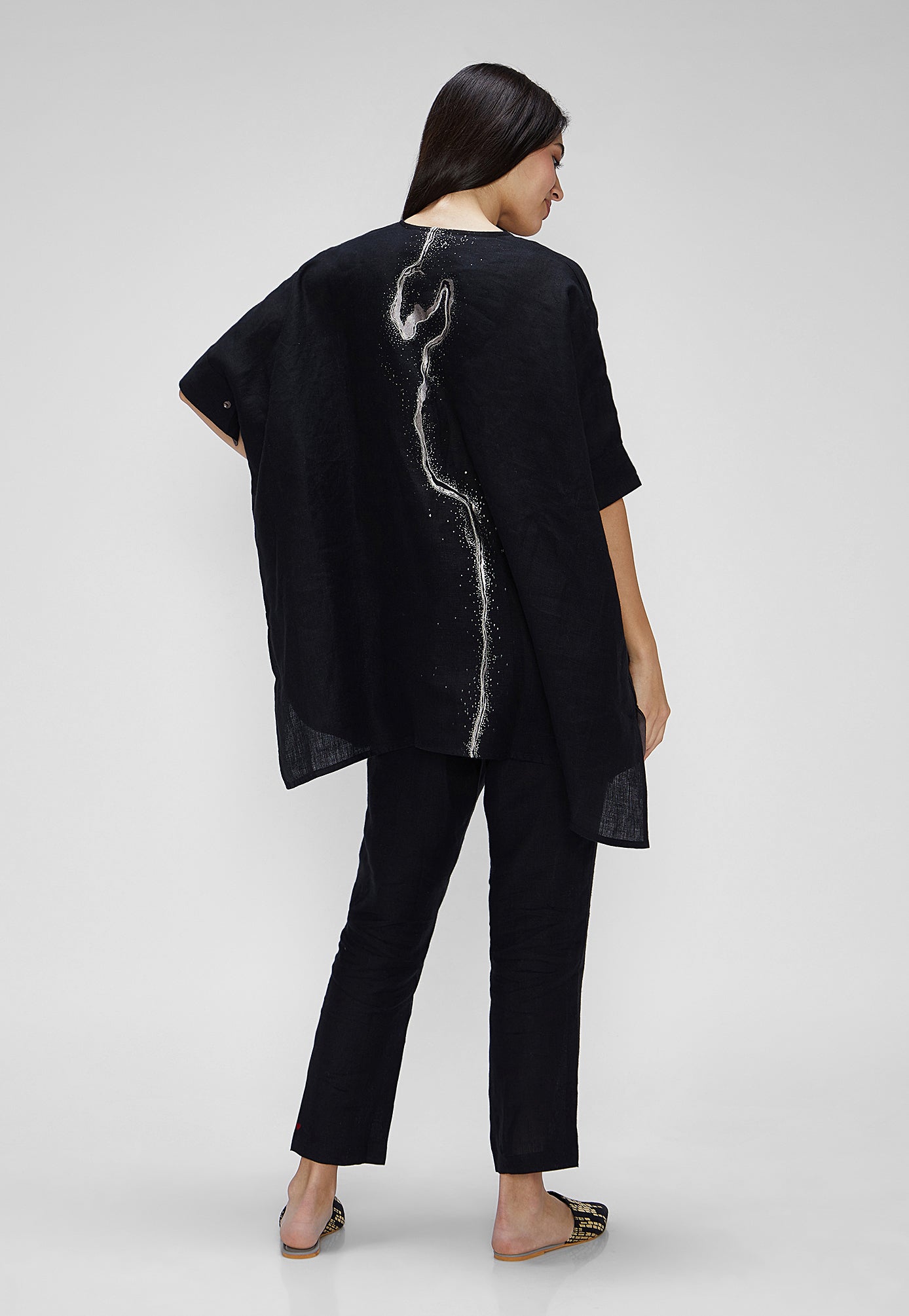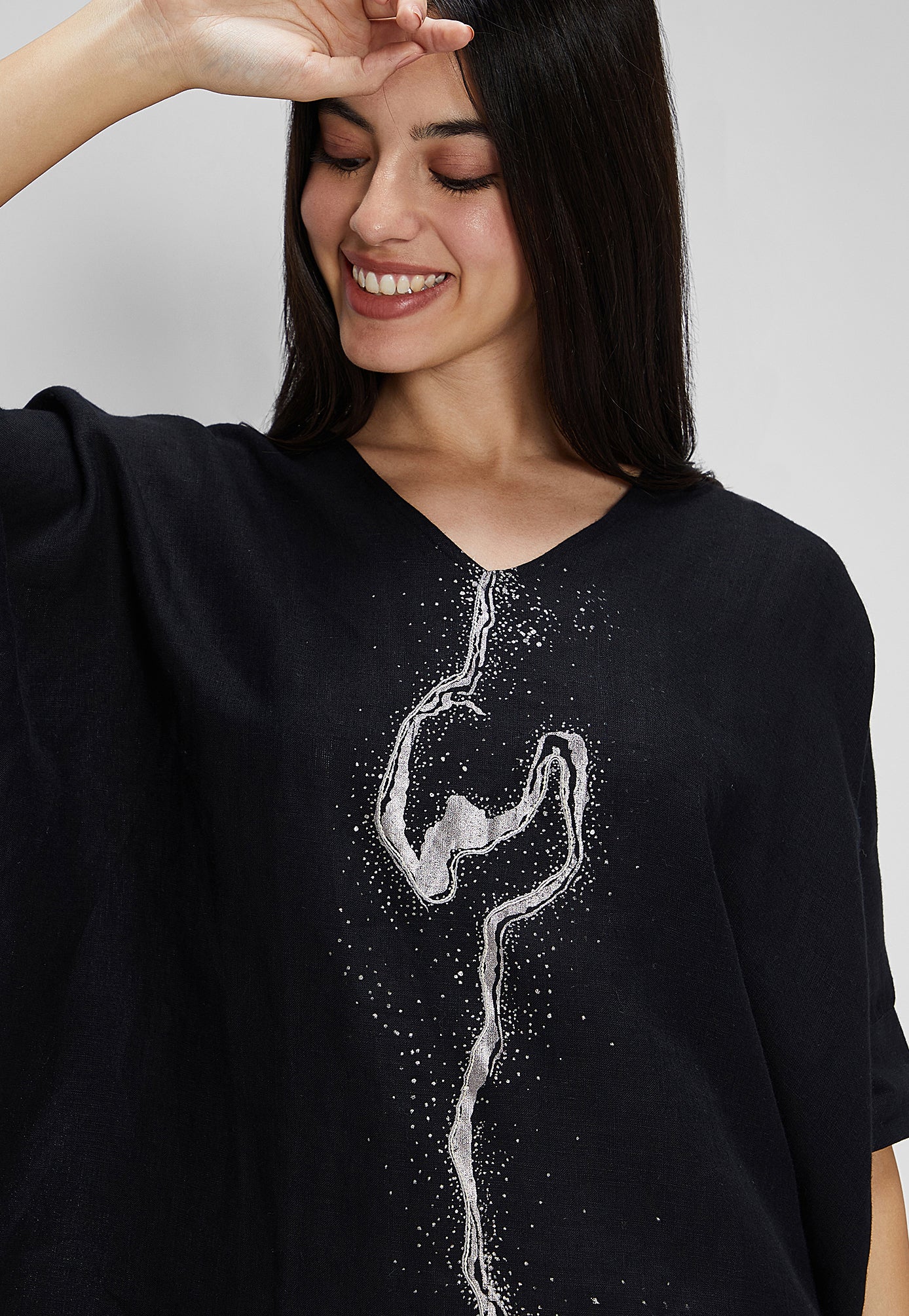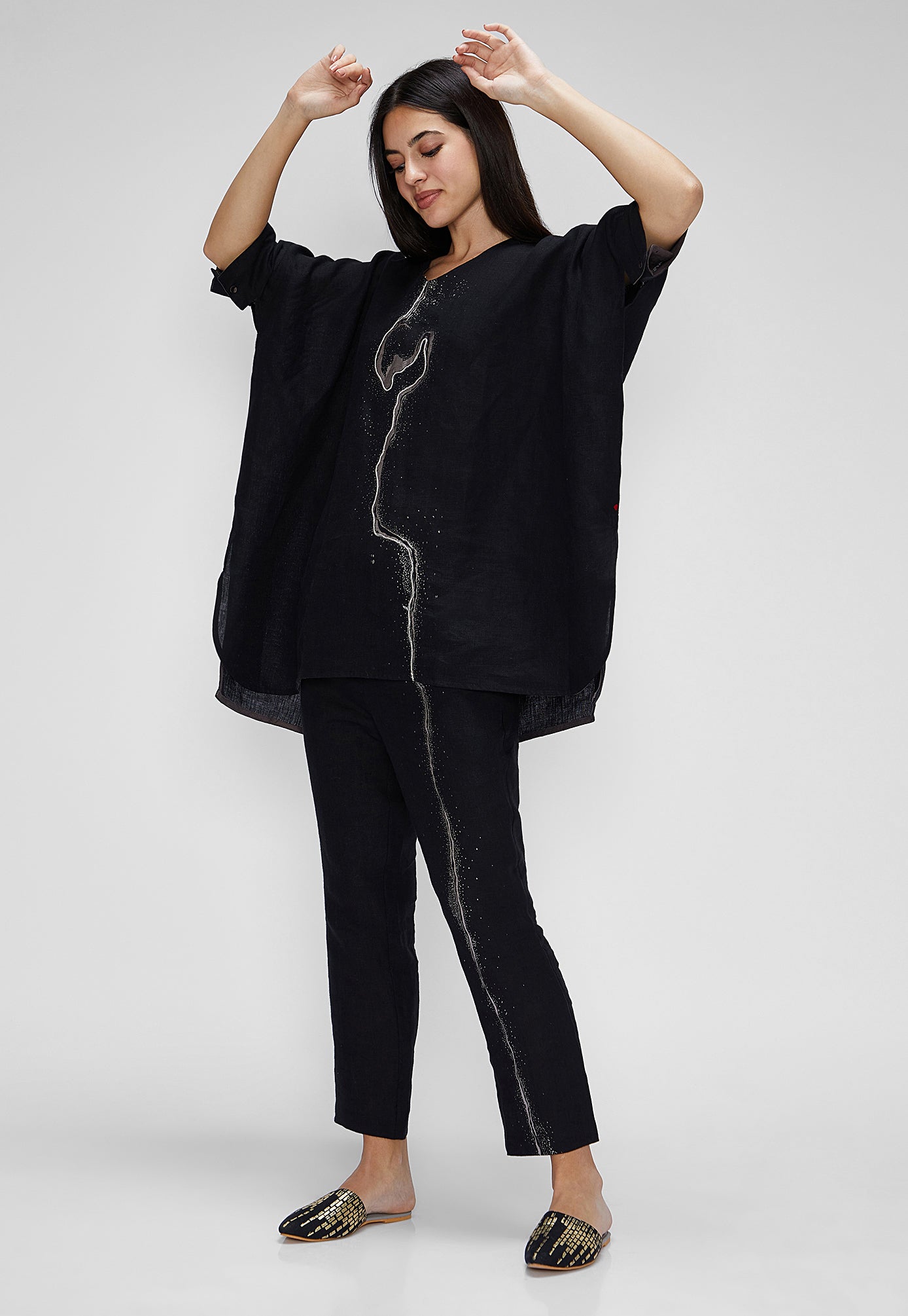 Succumb to your inner cosmic universe with Body Line, a mesmerising piece that emboldens your style, body and inner spirit with an anchor thread motif that unfurls its way down to your heart with glorious iridescence- for you are the center of this universe. This pathway implodes into a burst of stars sprinkled in foil print that elevates your sartorial aura- shimmering into an invigorating high- for you are the shining star. These exquisite pieces come in divine shades of blush, natural, white, black and shadow blue.