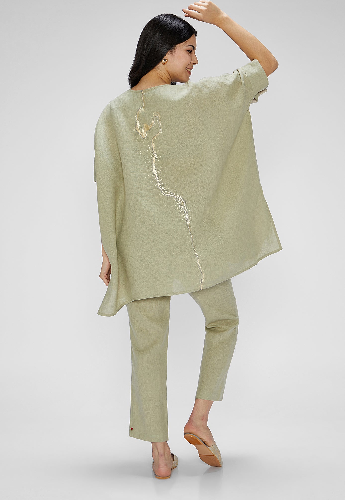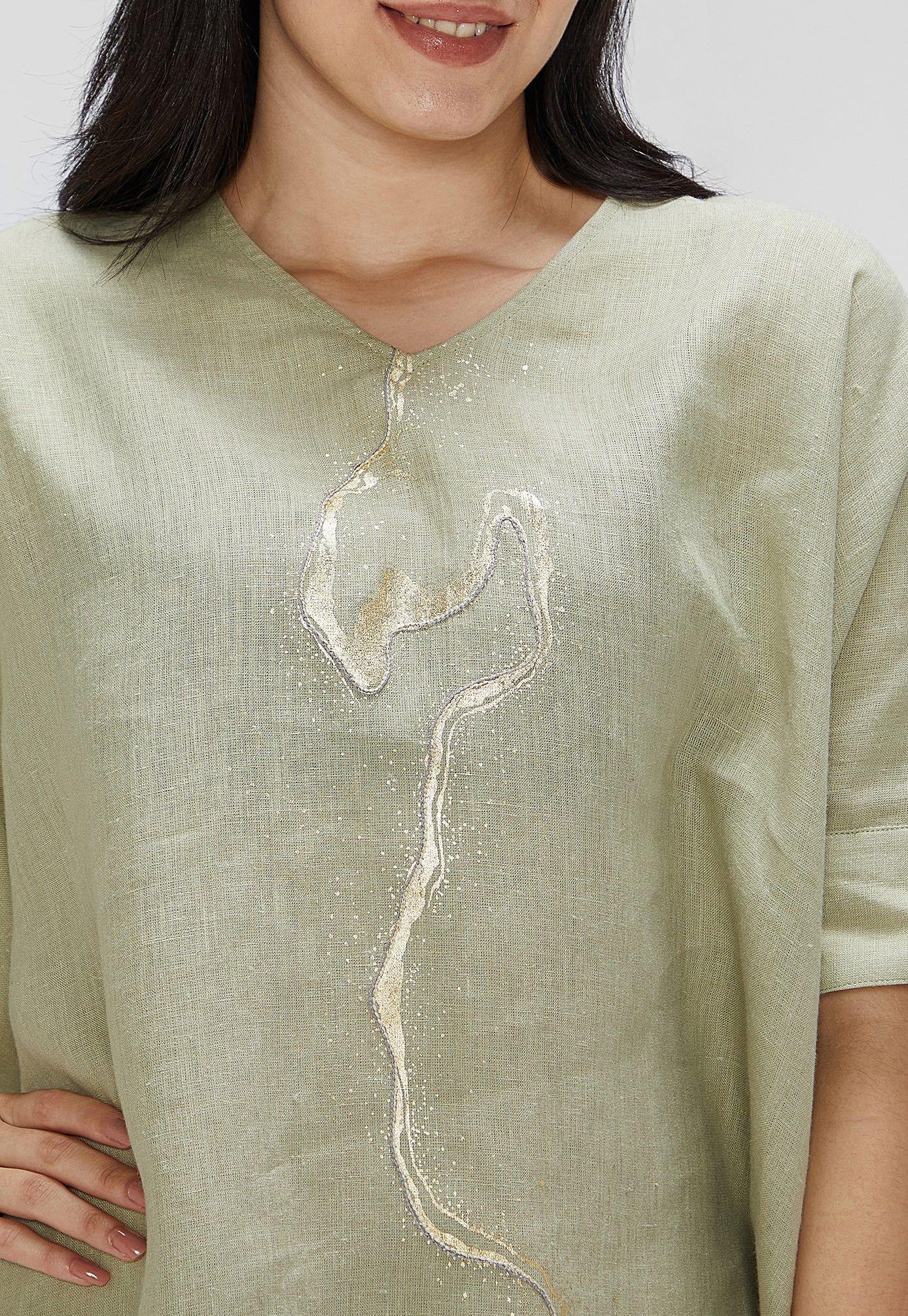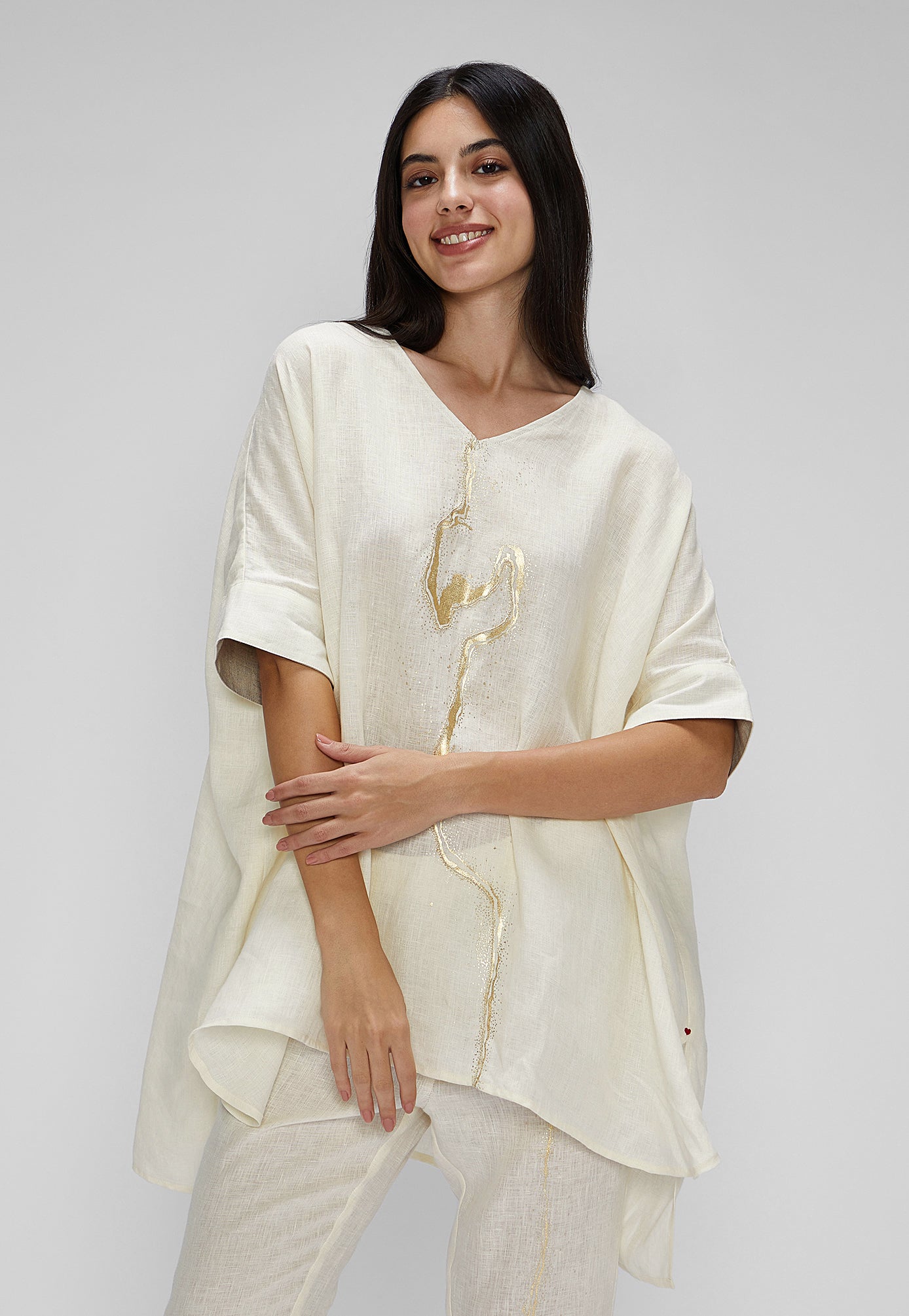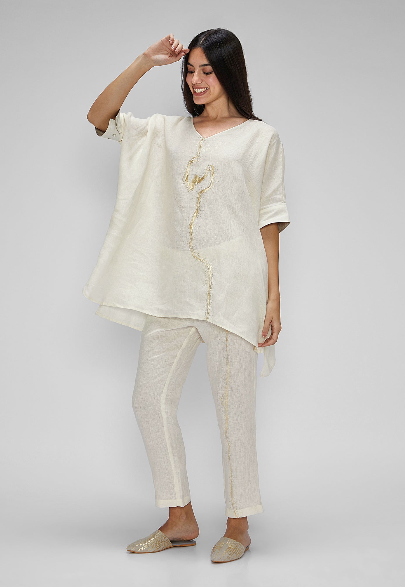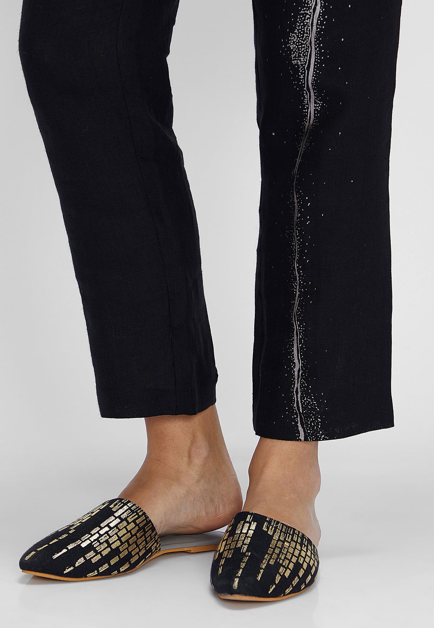 Succumb to your inner cosmic universe with Body Line, a mesmerising piece that emboldens your style, body and inner spirit with an anchor thread motif that unfurls its way down to your heart with glorious iridescence- for you are the center of this universe. This pathway implodes into a burst of stars sprinkled in foil print that elevates your sartorial aura- shimmering into an invigorating high- for you are the shining star. These exquisite pieces come in divine shades of blush, natural, white, black and shadow blue.