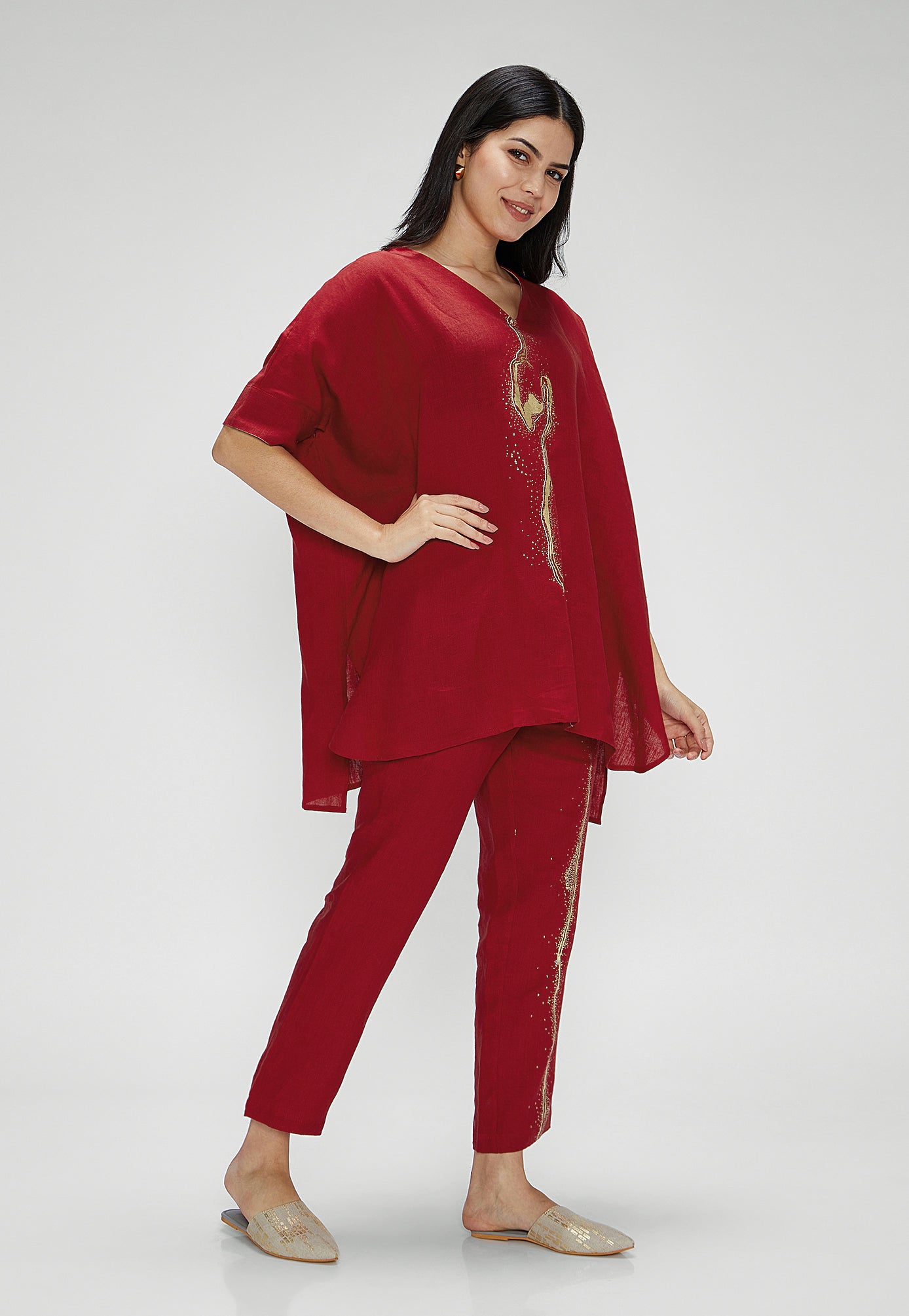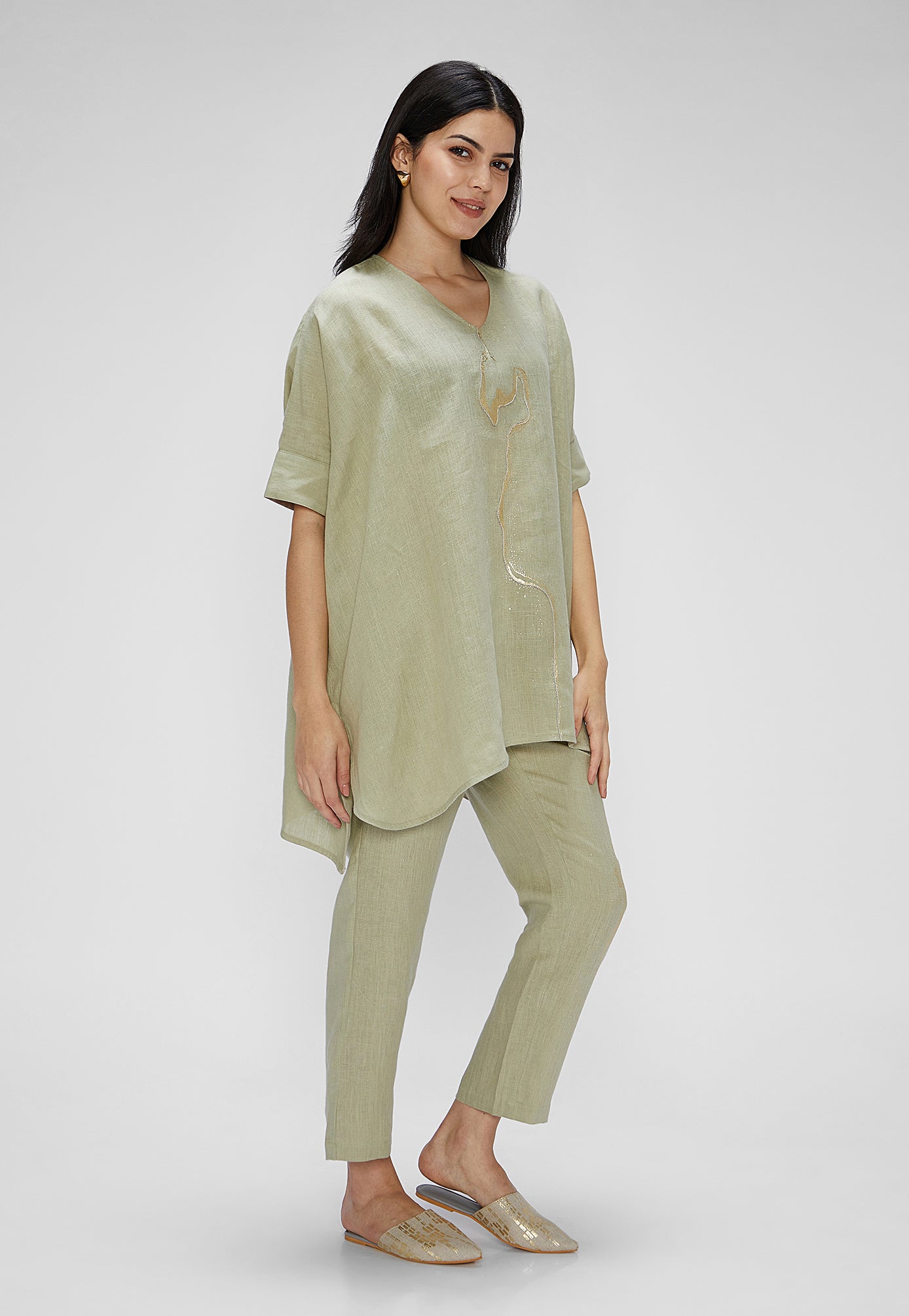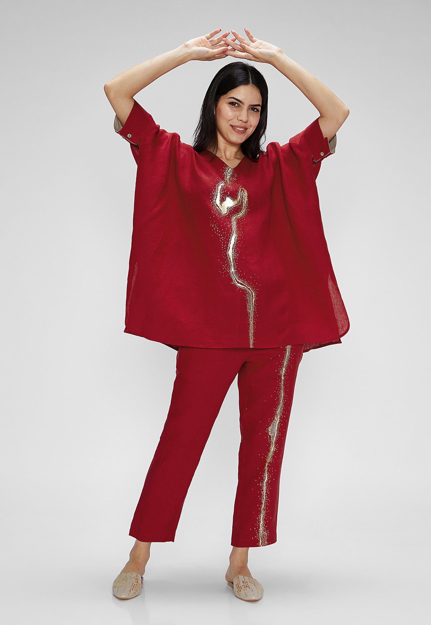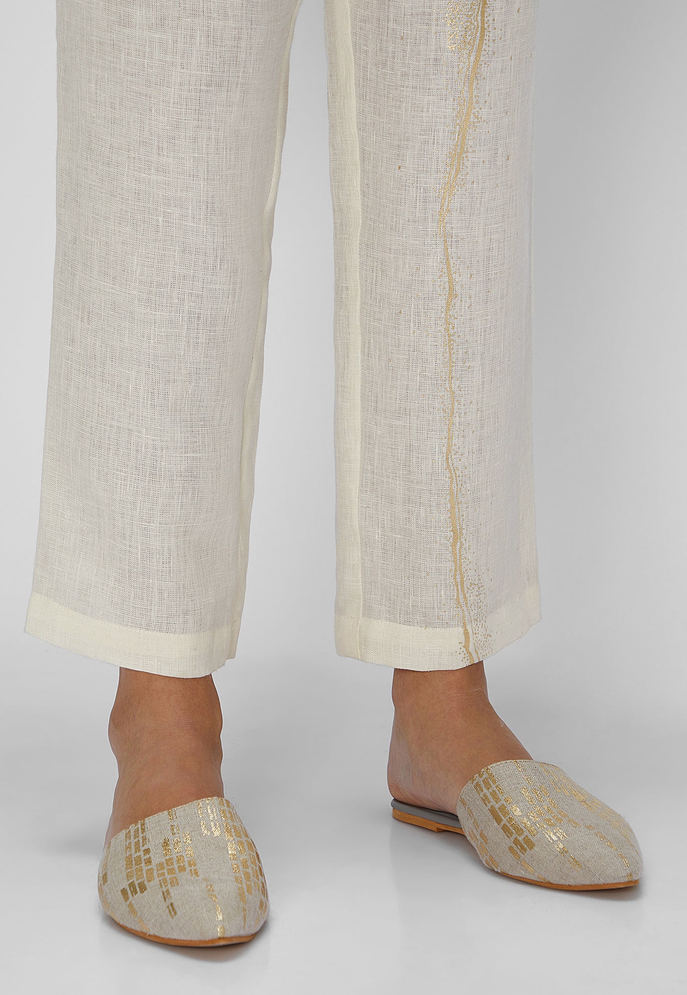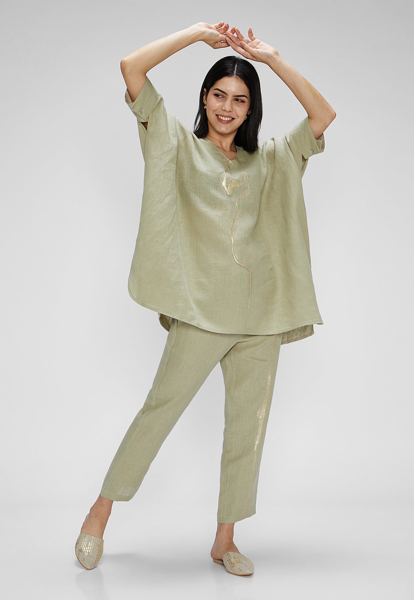 Succumb to your inner cosmic universe with Body Line, a mesmerising piece that emboldens your style, body and inner spirit with an anchor thread motif that unfurls its way down to your heart with glorious iridescence- for you are the center of this universe. This pathway implodes into a burst of stars sprinkled in foil print that elevates your sartorial aura- shimmering into an invigorating high- for you are the shining star. These exquisite pieces come in divine shades of blush, natural, white, black and shadow blue.