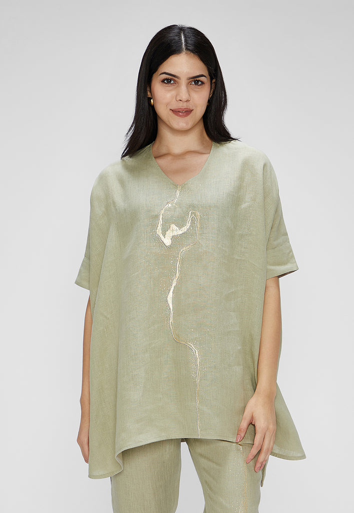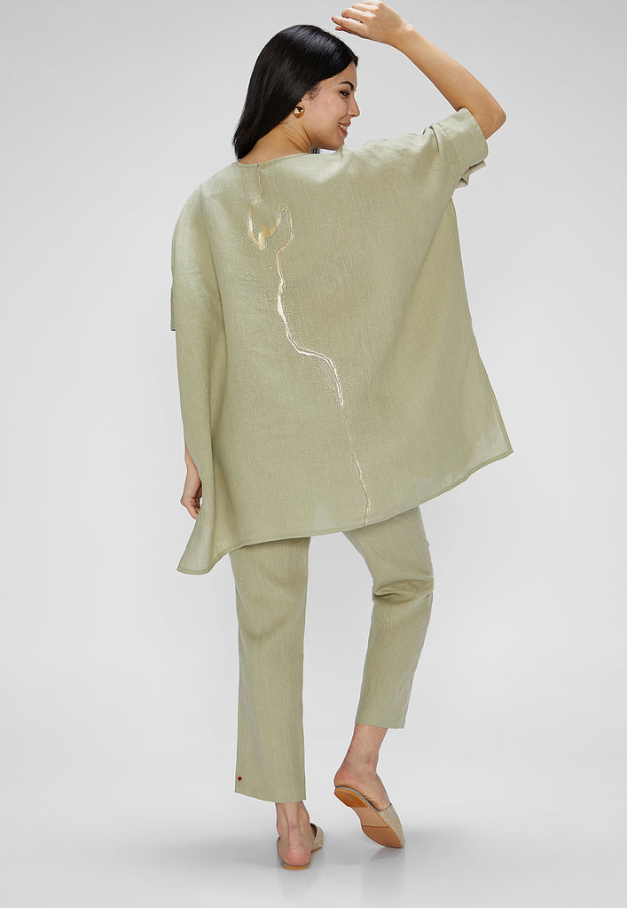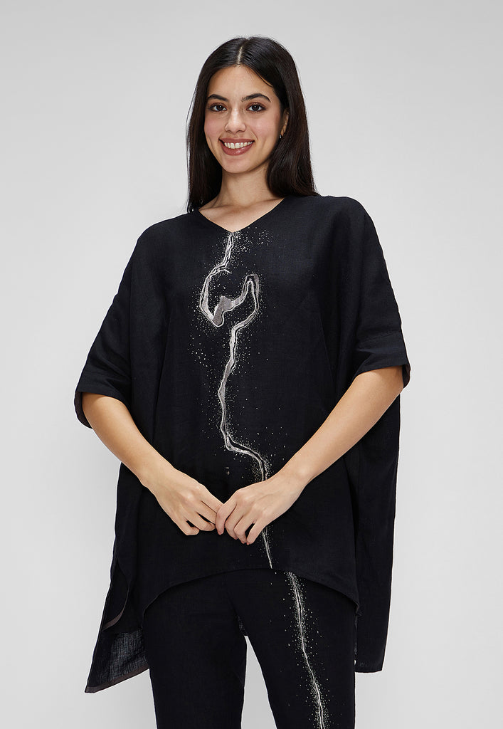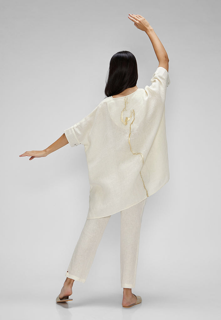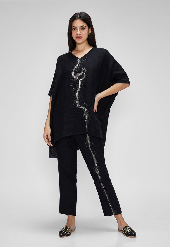 Succumb to your inner cosmic universe with Body Line, a mesmerising piece that emboldens your style, body and inner spirit with an anchor thread motif that unfurls its way down to your heart with glorious iridescence- for you are the center of this universe. This pathway implodes into a burst of stars sprinkled in foil print that elevates your sartorial aura- shimmering into an invigorating high- for you are the shining star. These exquisite pieces come in divine shades of blush, natural, white, black and shadow blue.