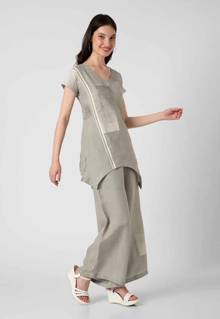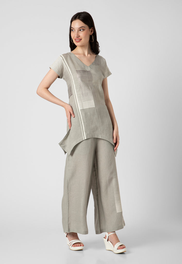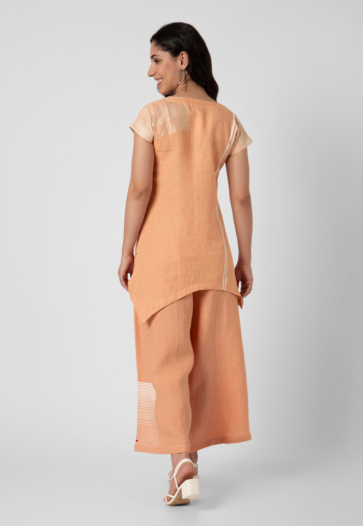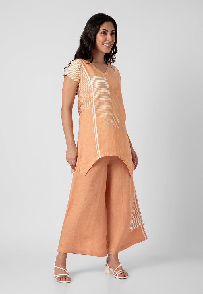 Behold symmetry at its finest with a poetic facade of building brick patterns on luxurious linen. Embellished with hand screen printing and foiling craft with shimmering details. This range redefines your style for a special occasion or any occasion with panache. Available in gorgeous shades of muskmelon, off-white and fern.