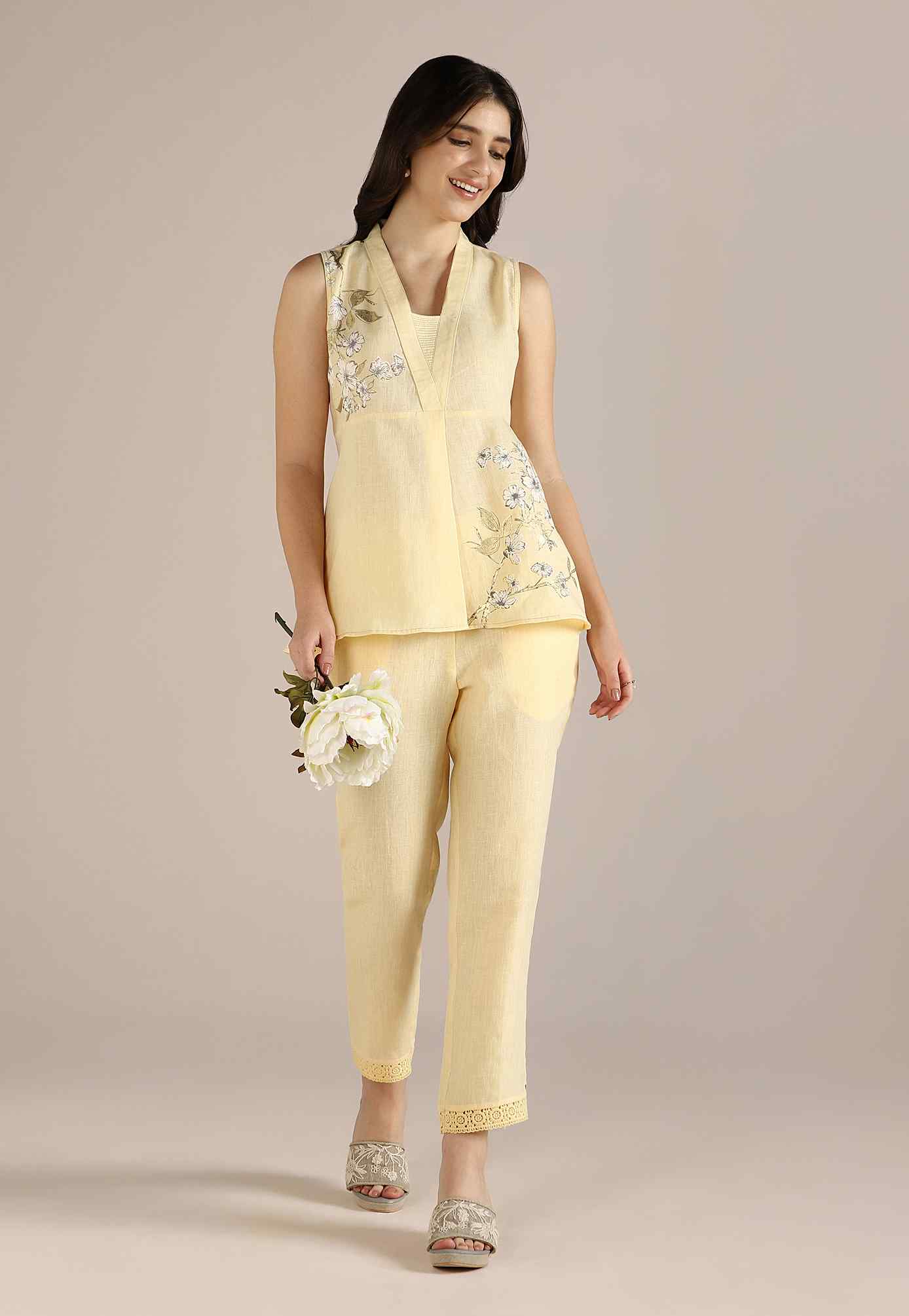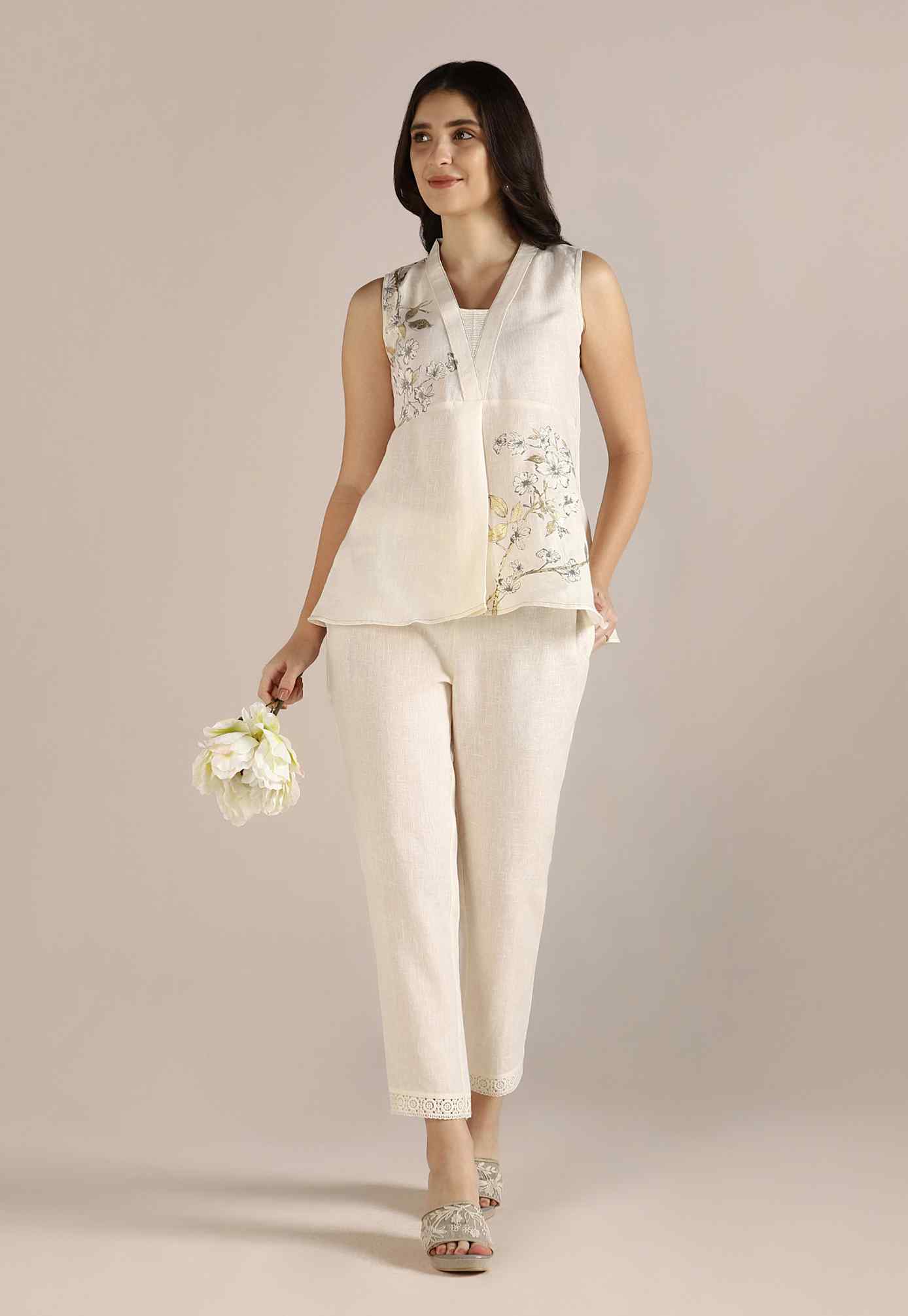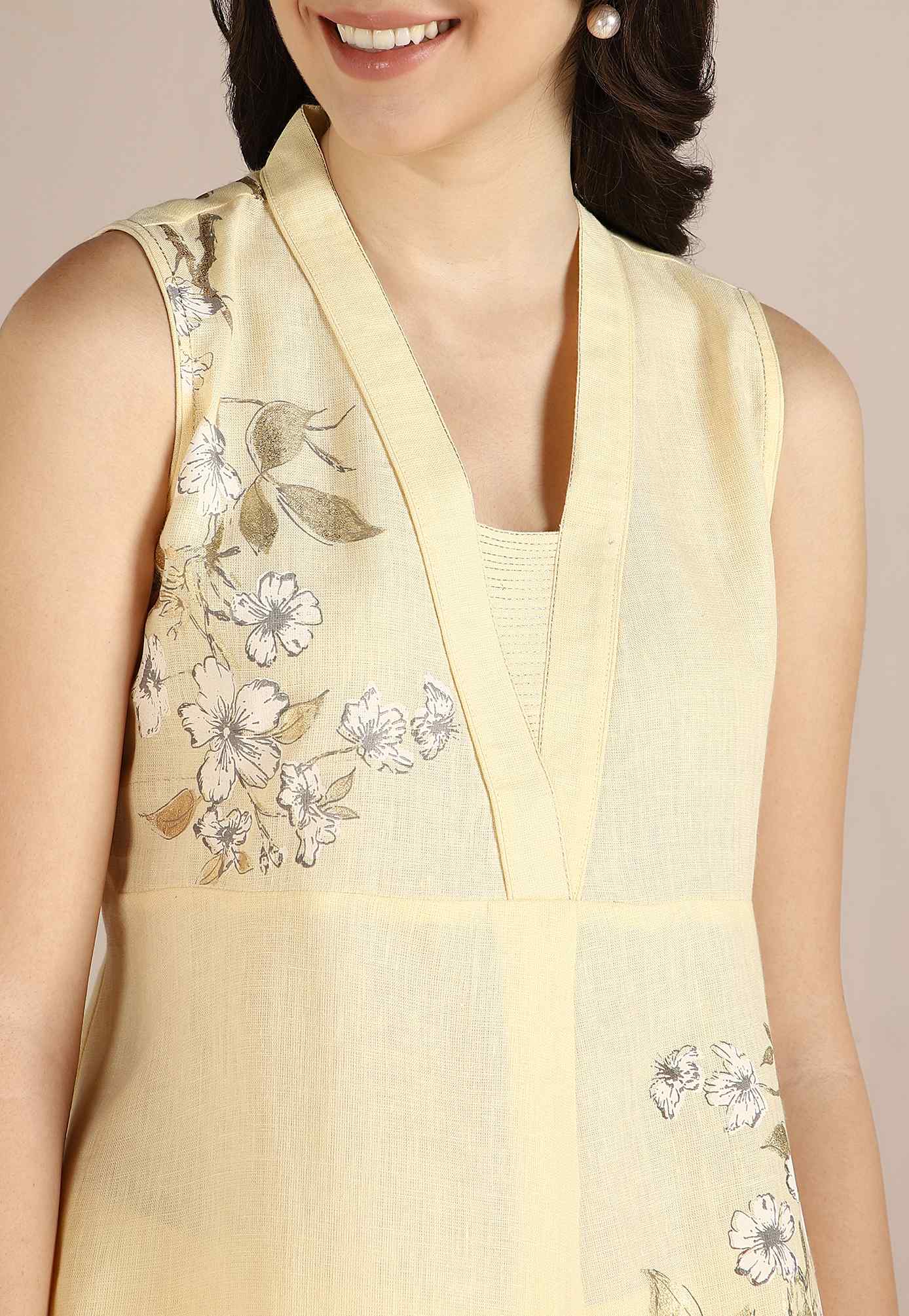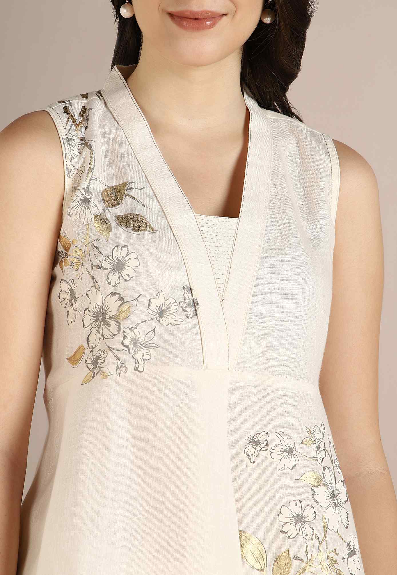 Bloom in iridescent splendour with the glorious Camelia flower emblazoned in classic white and gold- imprinted by hand using heat-pressed craft technique to summon the bloom to life on noble linen that is sure to enchant and delight onlookers from every angle as you adorn this piece with undulating grace. Experience this fantastic range in exuberant shades of natural, off-white and buttercup.