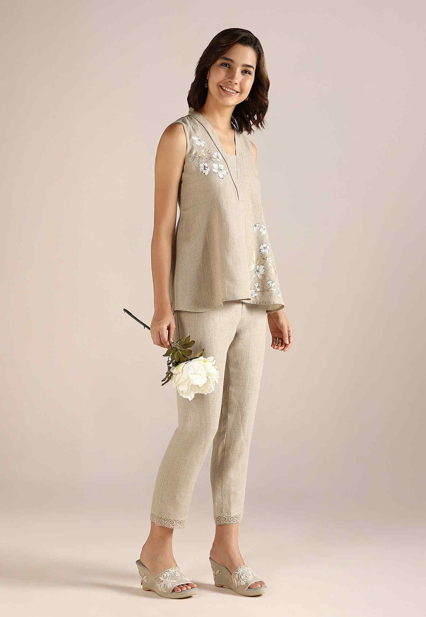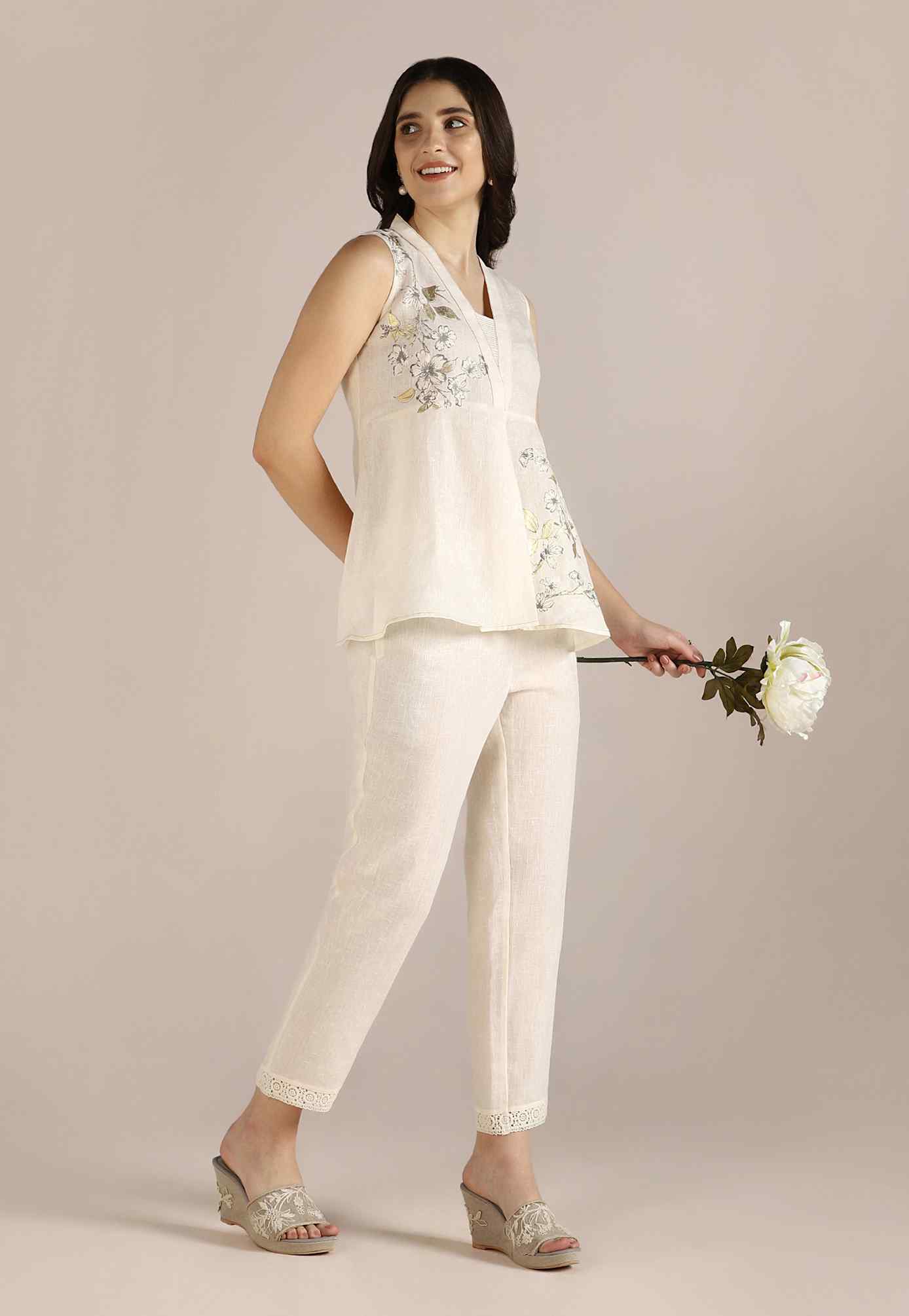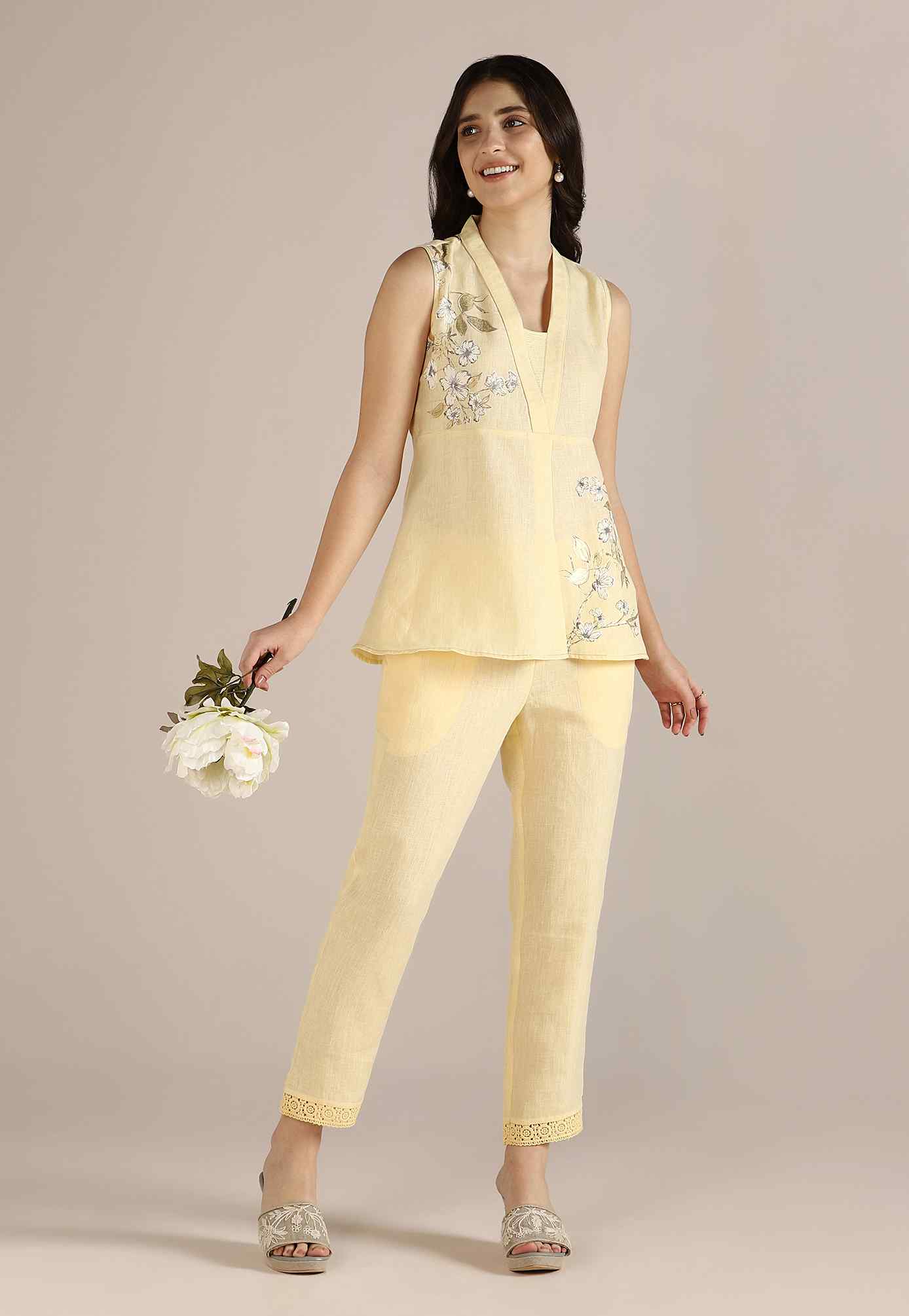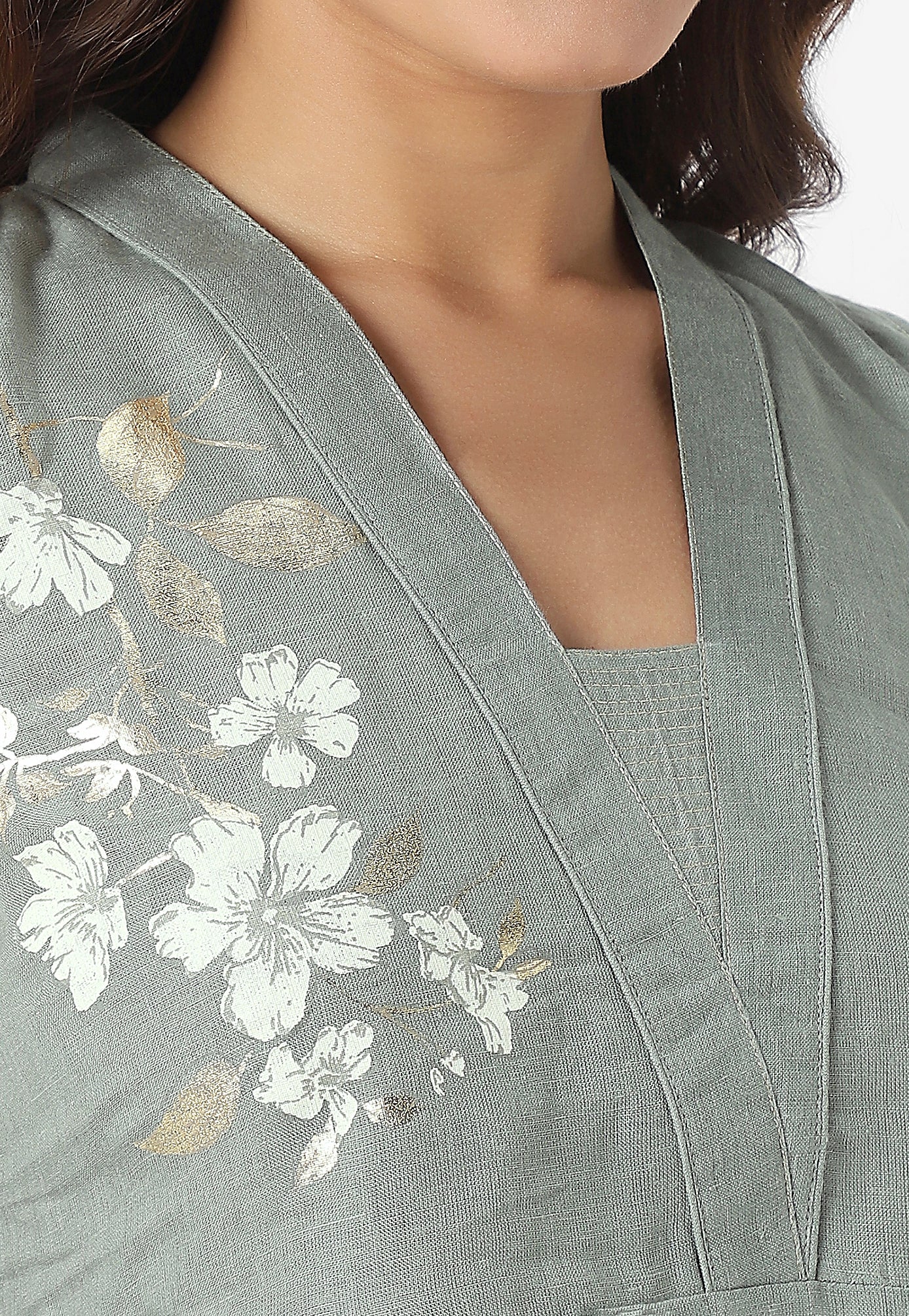 Bloom in iridescent splendour with the glorious Camelia flower emblazoned in classic white and gold- imprinted by hand using heat-pressed craft technique to summon the bloom to life on noble linen that is sure to enchant and delight onlookers from every angle as you adorn this piece with undulating grace. Experience this fantastic range in exuberant shades of natural, off-white and buttercup.