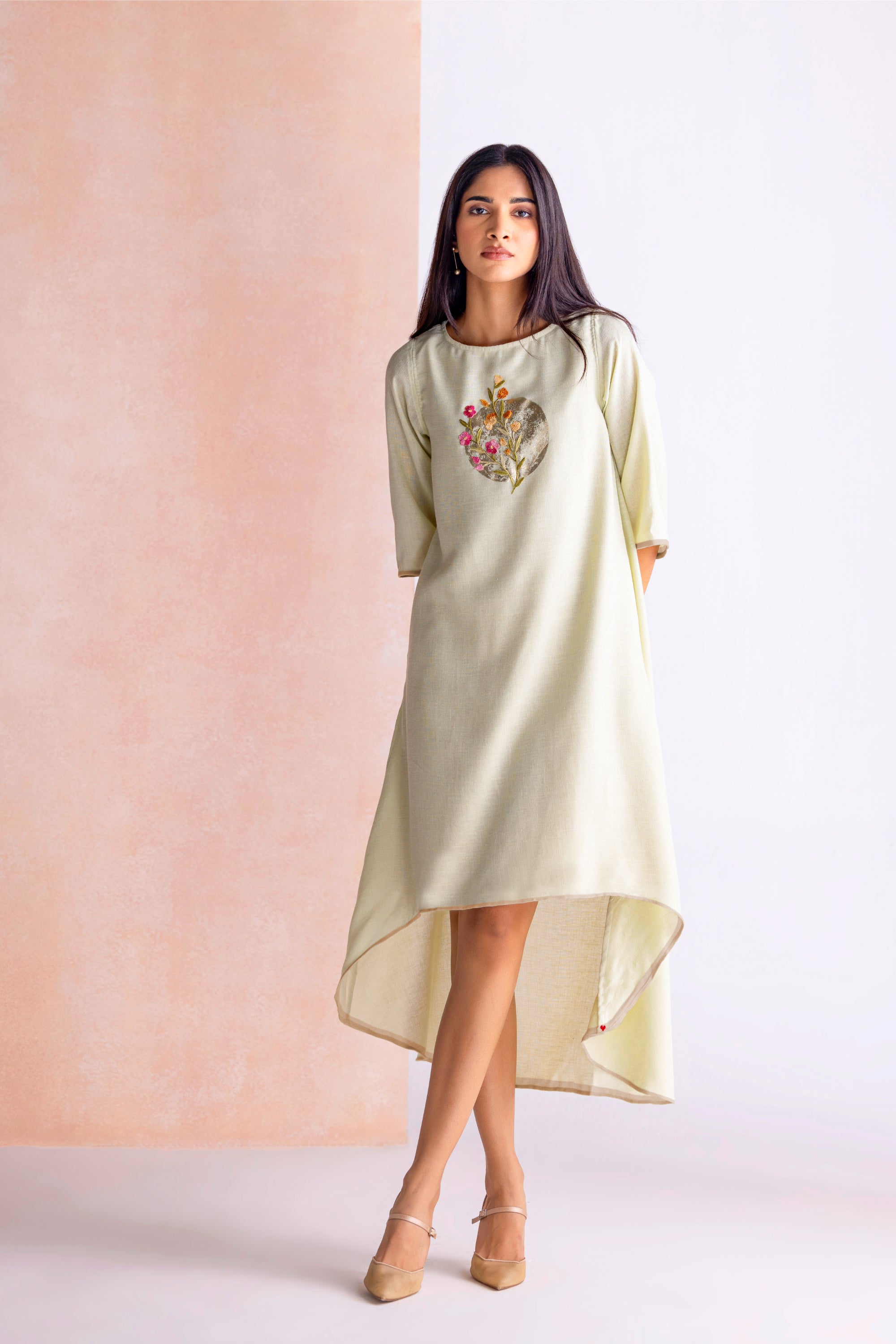 A poetic blend of shimmer and craftsmanship, Floral Moon draws inspiration from the quiet glow of moonlight over blossoming gardens. Delicate floral motifs are brought to life with intricate anchor thread embroidery, their texture adding depth and artistry to every piece. Accents of gold foiling glisten like moonlit reflections, creating a subtle yet striking interplay of light and detail. Offered in the refreshing hue of Lane Green and the romantic softness of Blush, the collection embodies timeless elegance with a luminous charm.