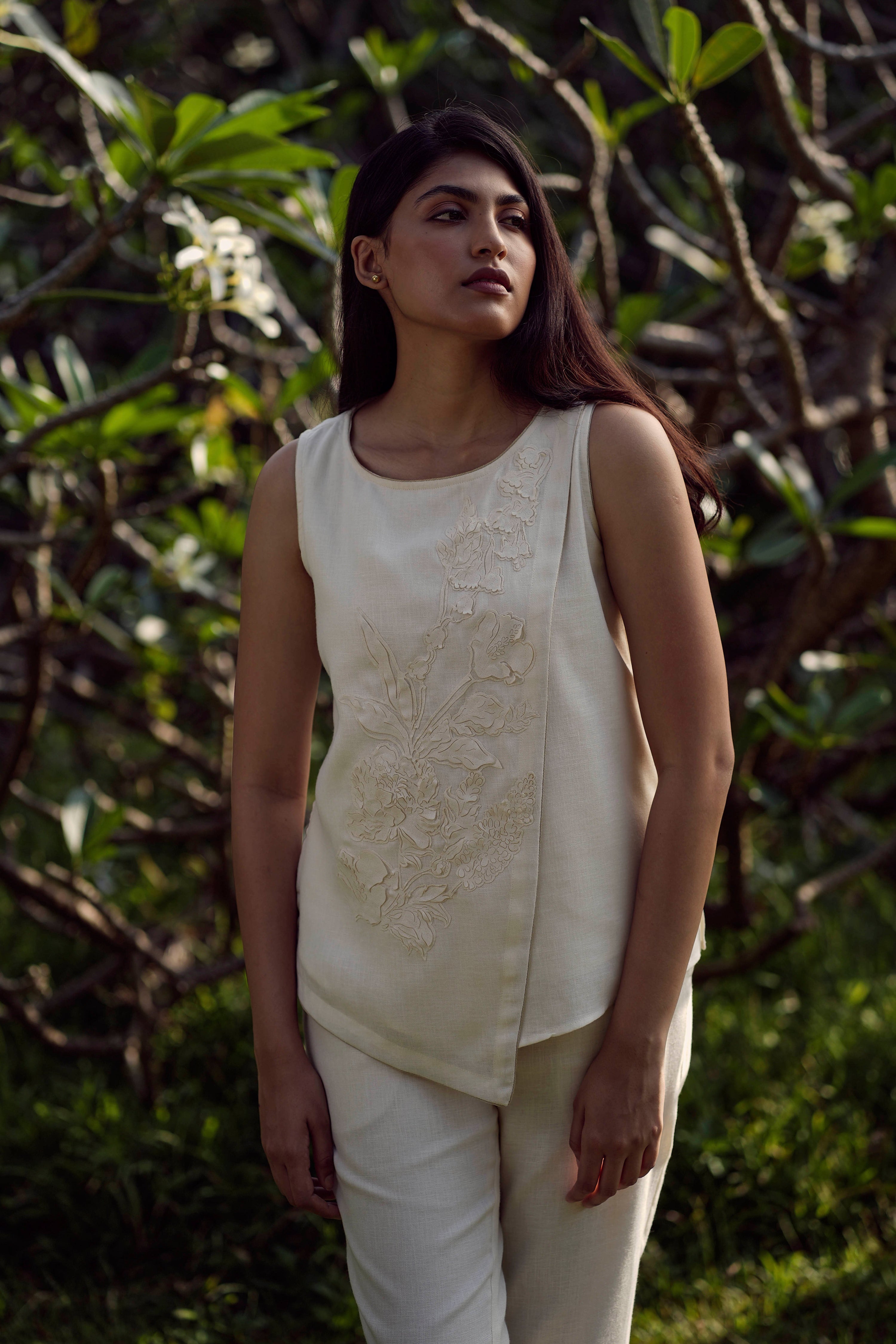 Floral Shadows is a poetic play of light and form, where elegant florals come to life through a unique layering technique that casts soft floral silhouettes across the fabric. The monochromatic palette, offered in off-white and blush, enhances the beauty of these shadowed blooms and creates a look that feels refined and quietly striking. Each piece is thoughtfully designed to highlight texture and movement, allowing the details to speak for themselves. Classy and graceful silhouettes lend the collection a timeless appeal. With its distinctive fabric detailing and understated drama, Floral Shadows is sure to turn heads with effortless elegance.