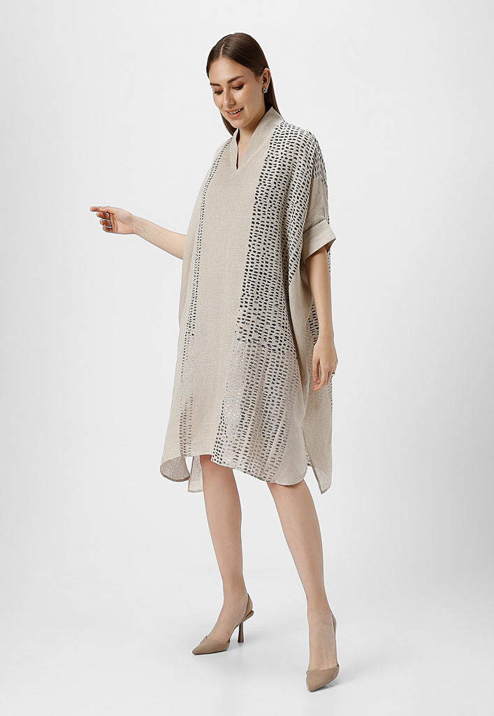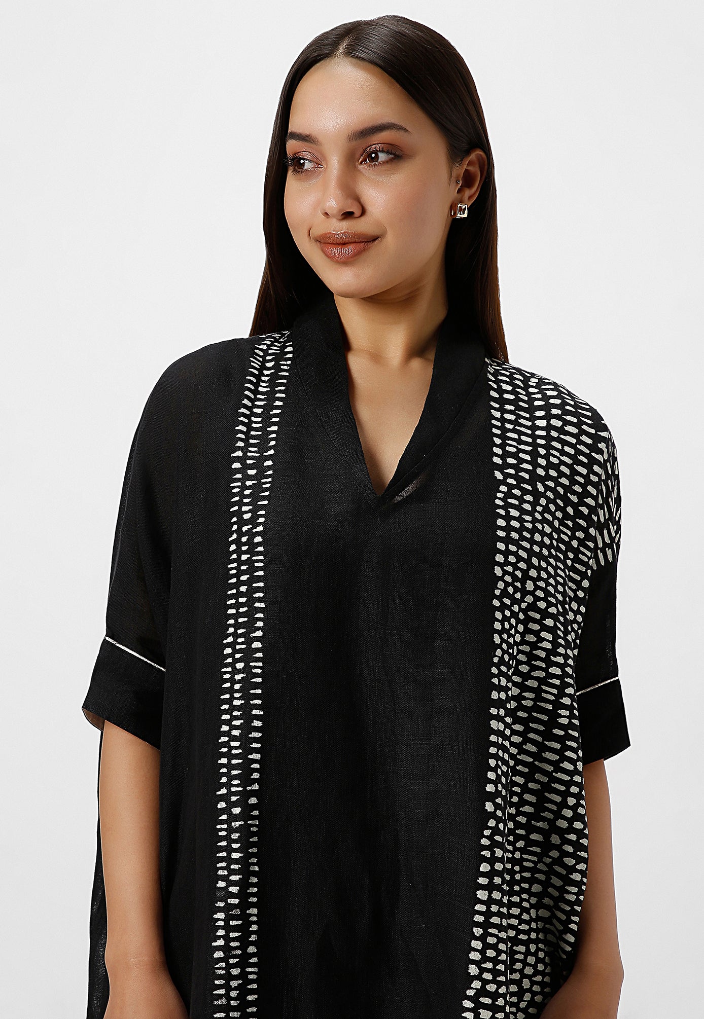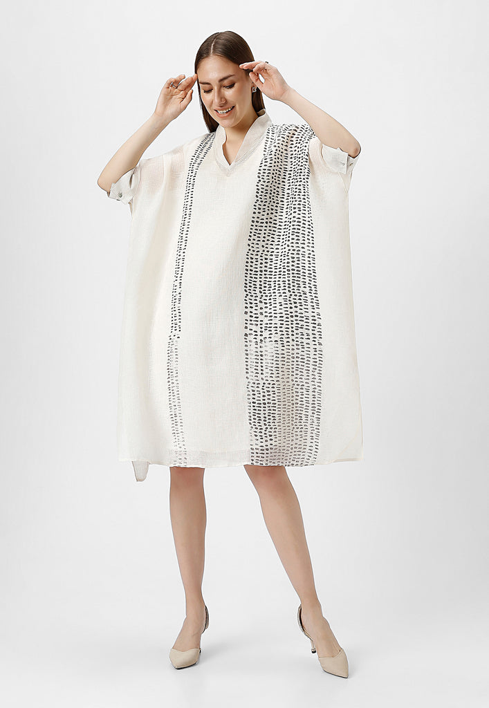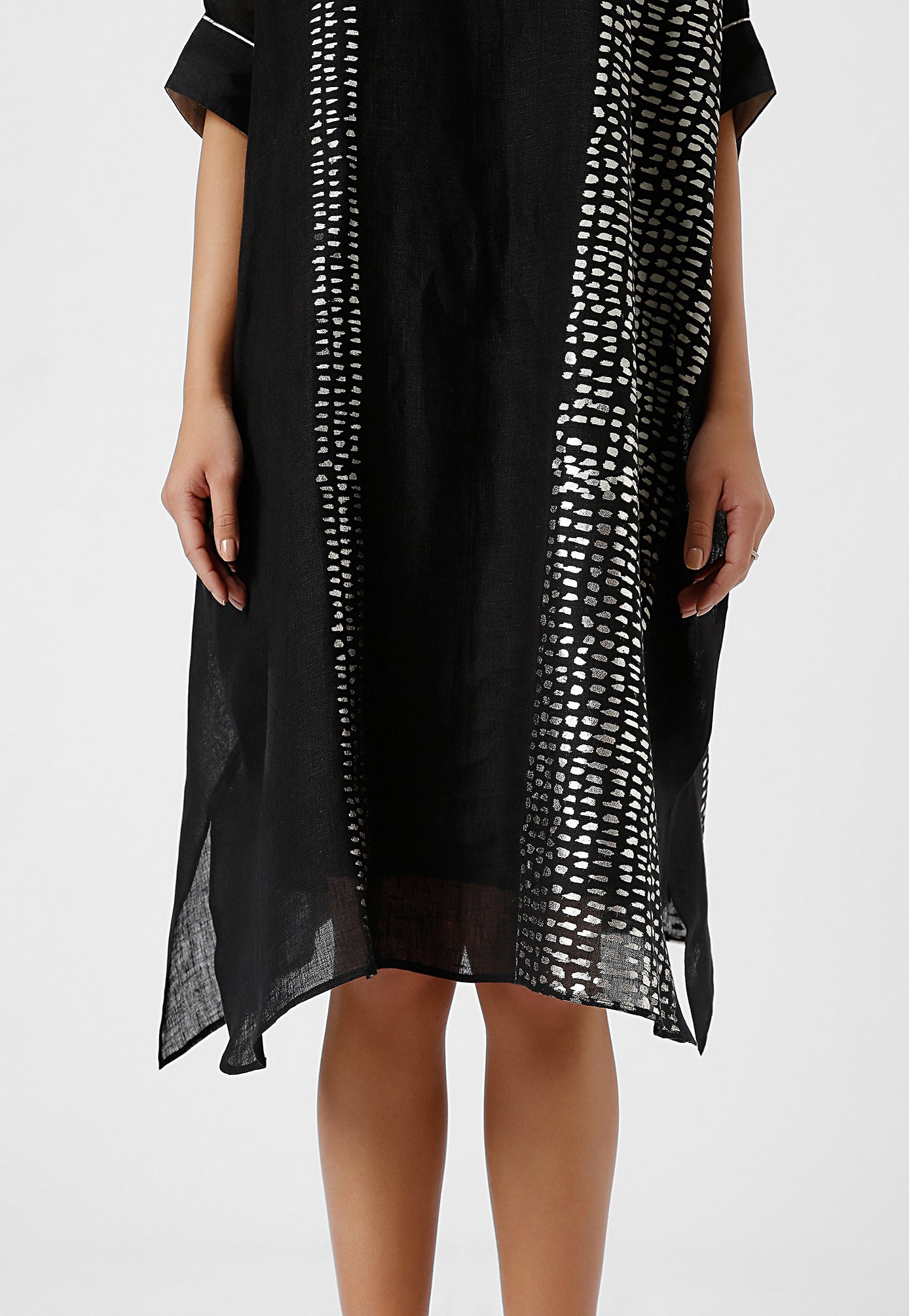Wander through the serene woods on fine linen, gleaming in gold with abstract brush strokes, textures and patterns that come to life through meticulous hand screen printing and foiling- elevating your style quotient to a new high this season.