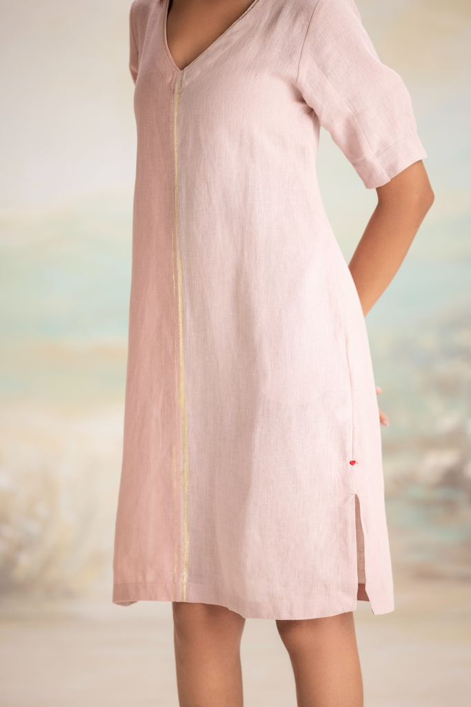 Make a shining statement with glorious linen handcrafted in a two-toned fabric that lets you stand out in style; edged with strokes of gold for a glowing finish; available in breezy and comfortable silhouettes that bode well for work or everyday. The choice is yours from an elegant palette of black & ash, off-white & natural or shadow rose & blush.