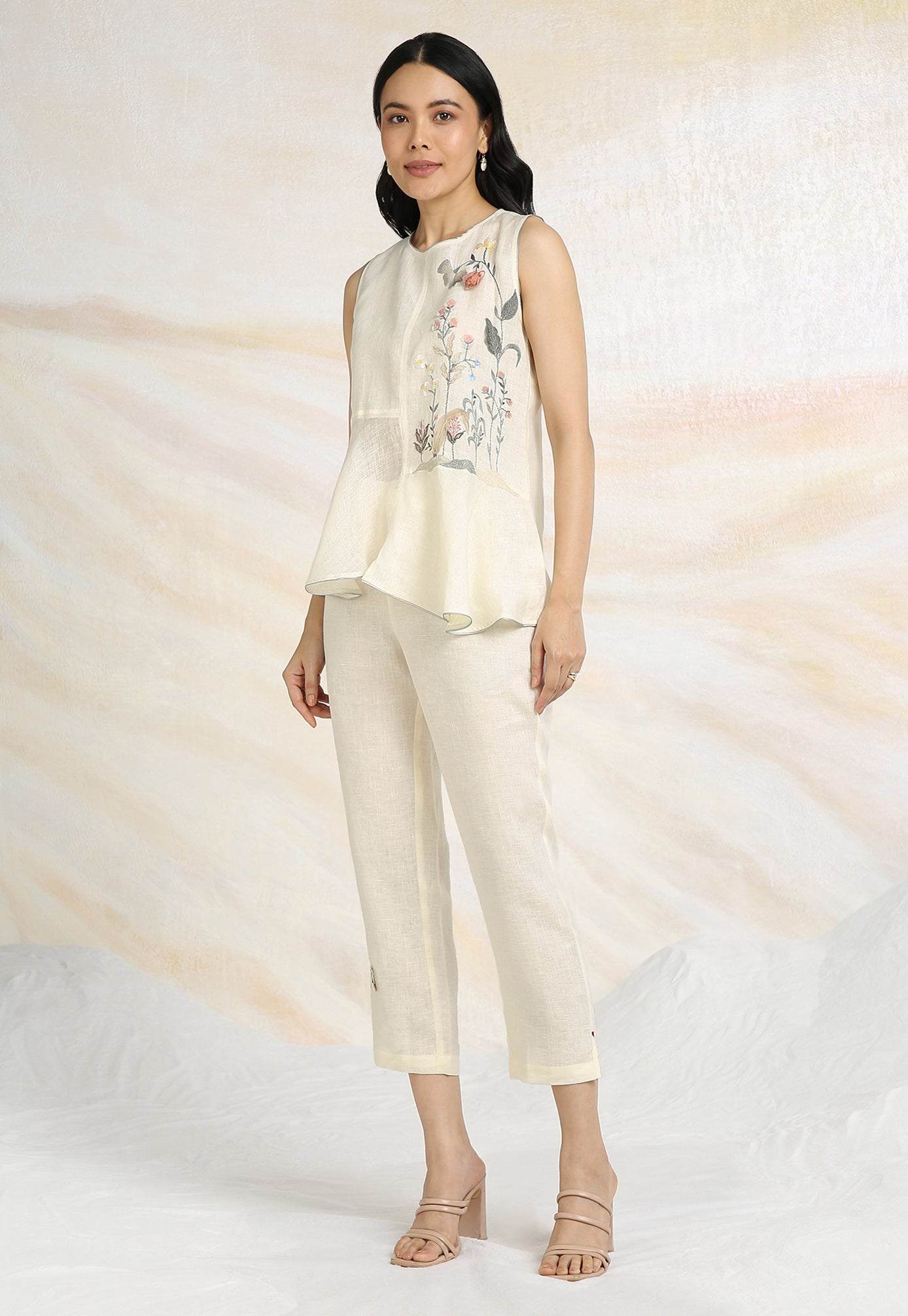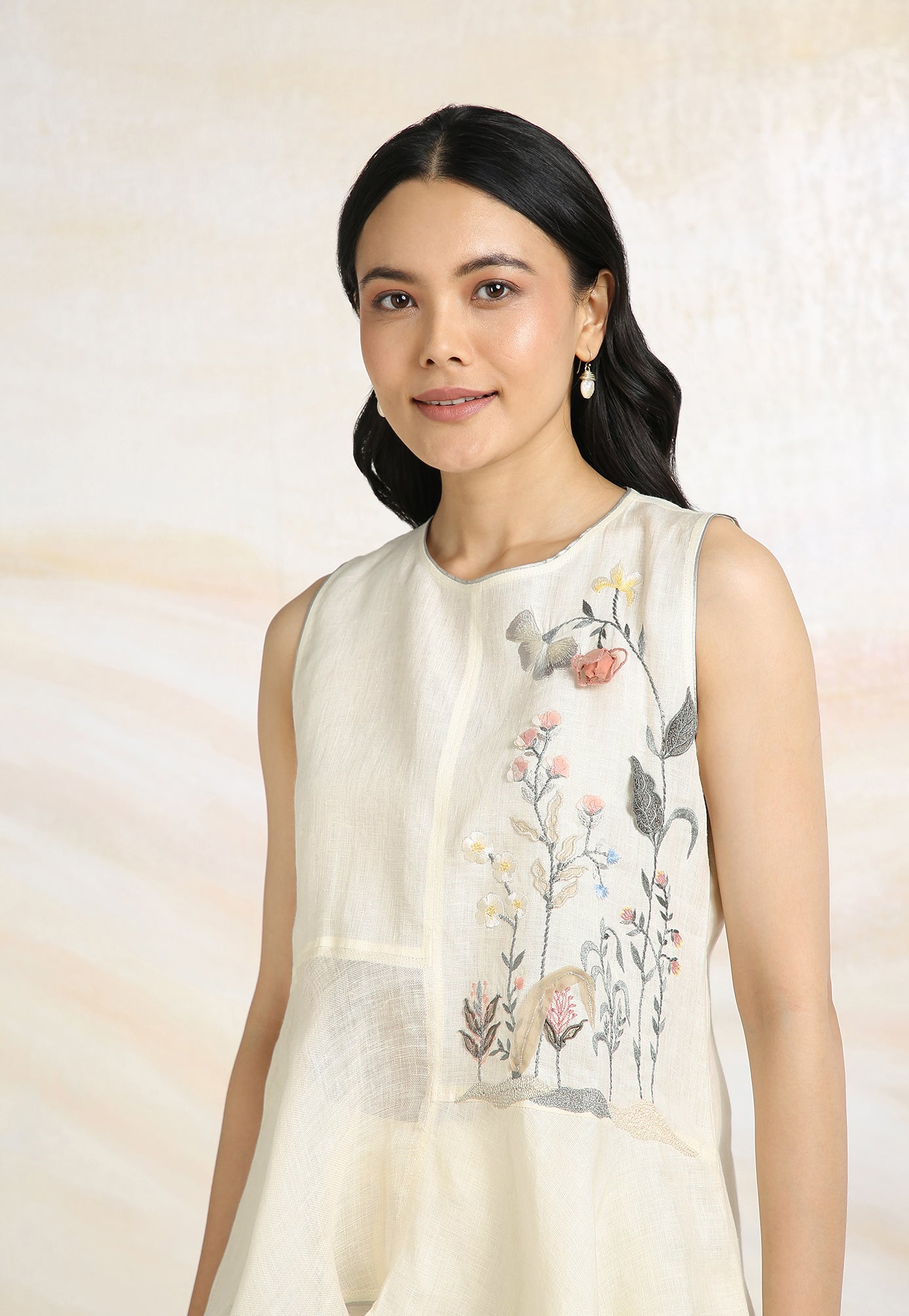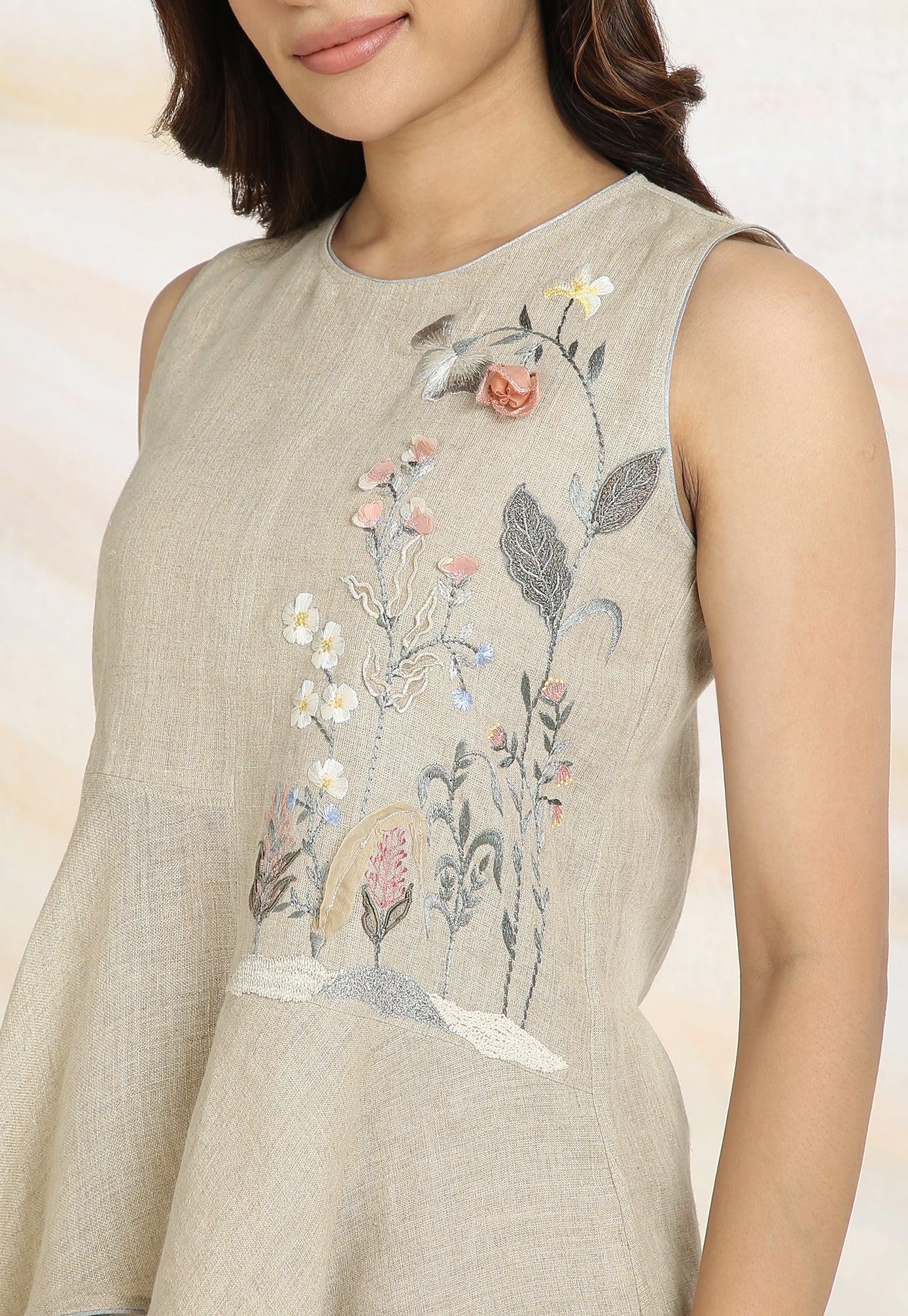 Embrace the charming wonder of the wilderness and stroll into our Prairie. A stunning work of art bringing the likeness of a captivating garden to garment. Each piece is immaculately hand-embroidered and handcrafted utilizing intricate layers of anchor thread and silk thread embroidery; adding depth with dimension to the piece while dainty elements of birds, butterflies and blooms unfurl in the forefront- individually sculpted and delicately appliquéd to the fabric. A final touch of ornate lace edging and handmade tassels finish the piece with panache bringing the outdoors in, just in time for a fresh season.