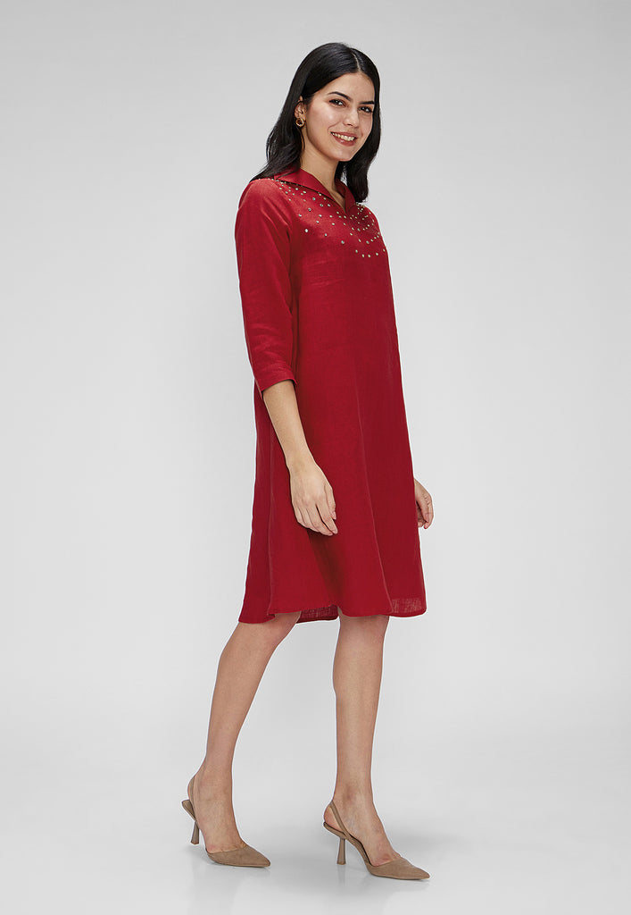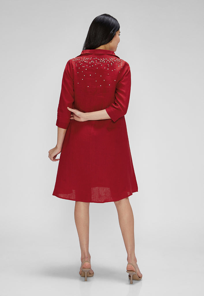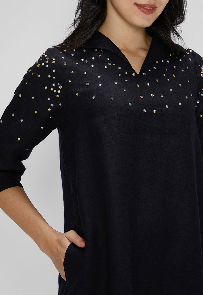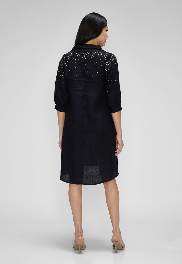 • Collared neck with continuous placket and half sleeves that come with a cuff.