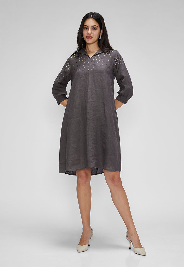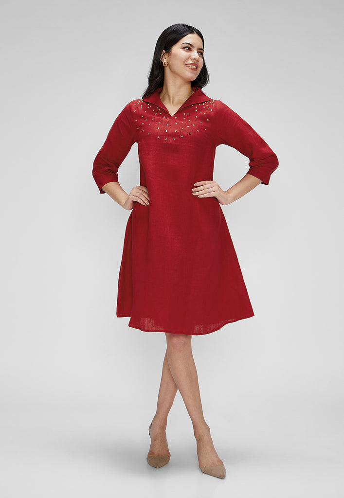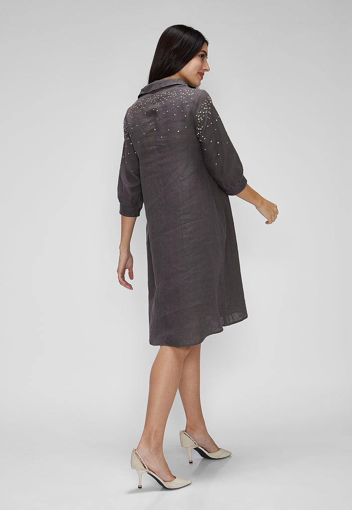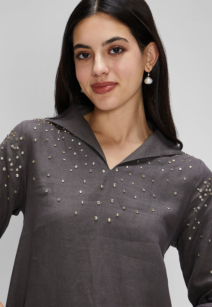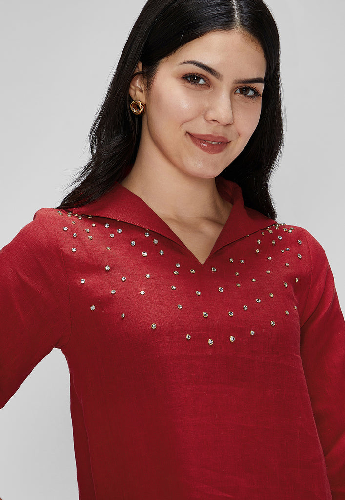 • Collared neck with continuous placket and half sleeves that come with a cuff.