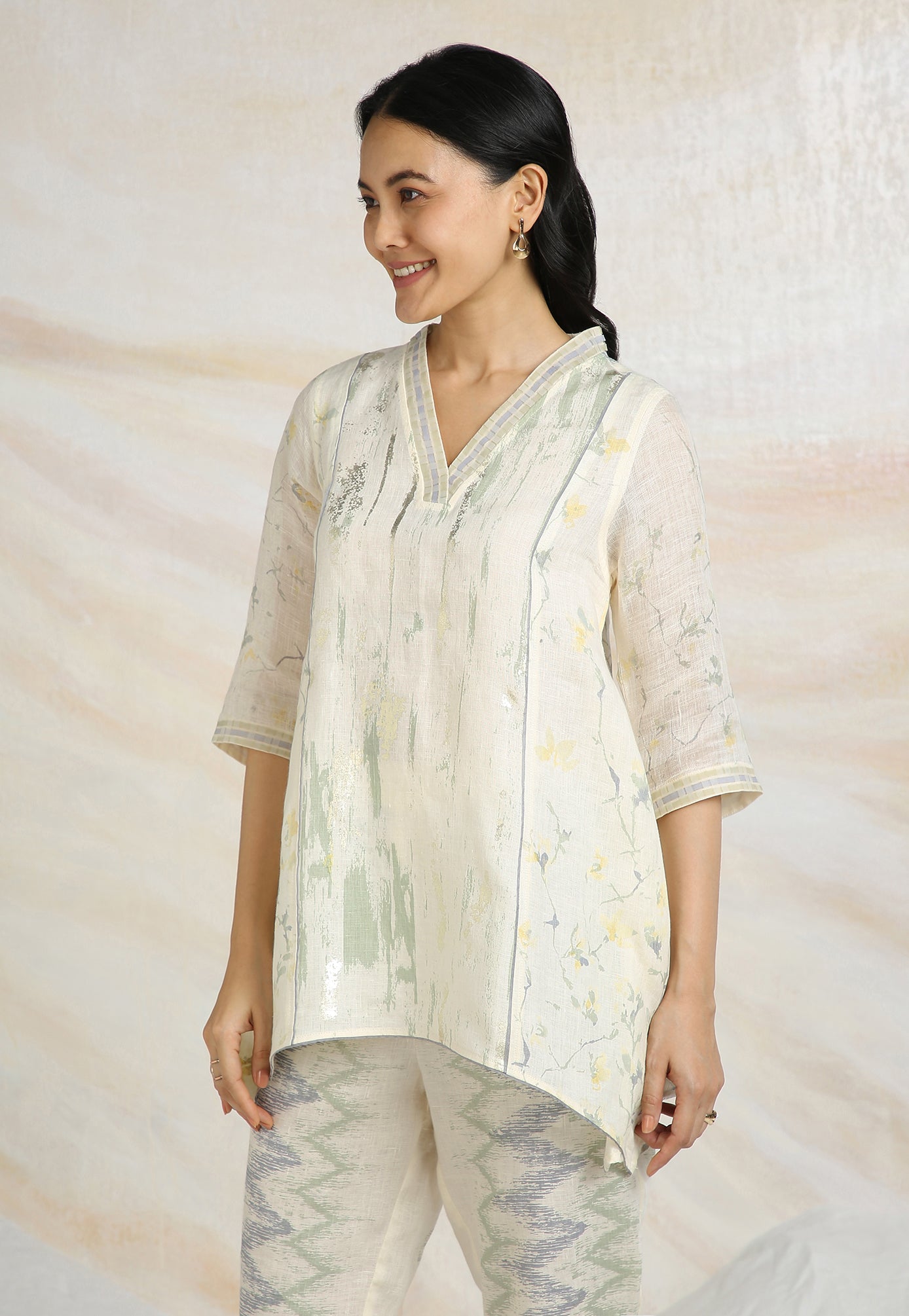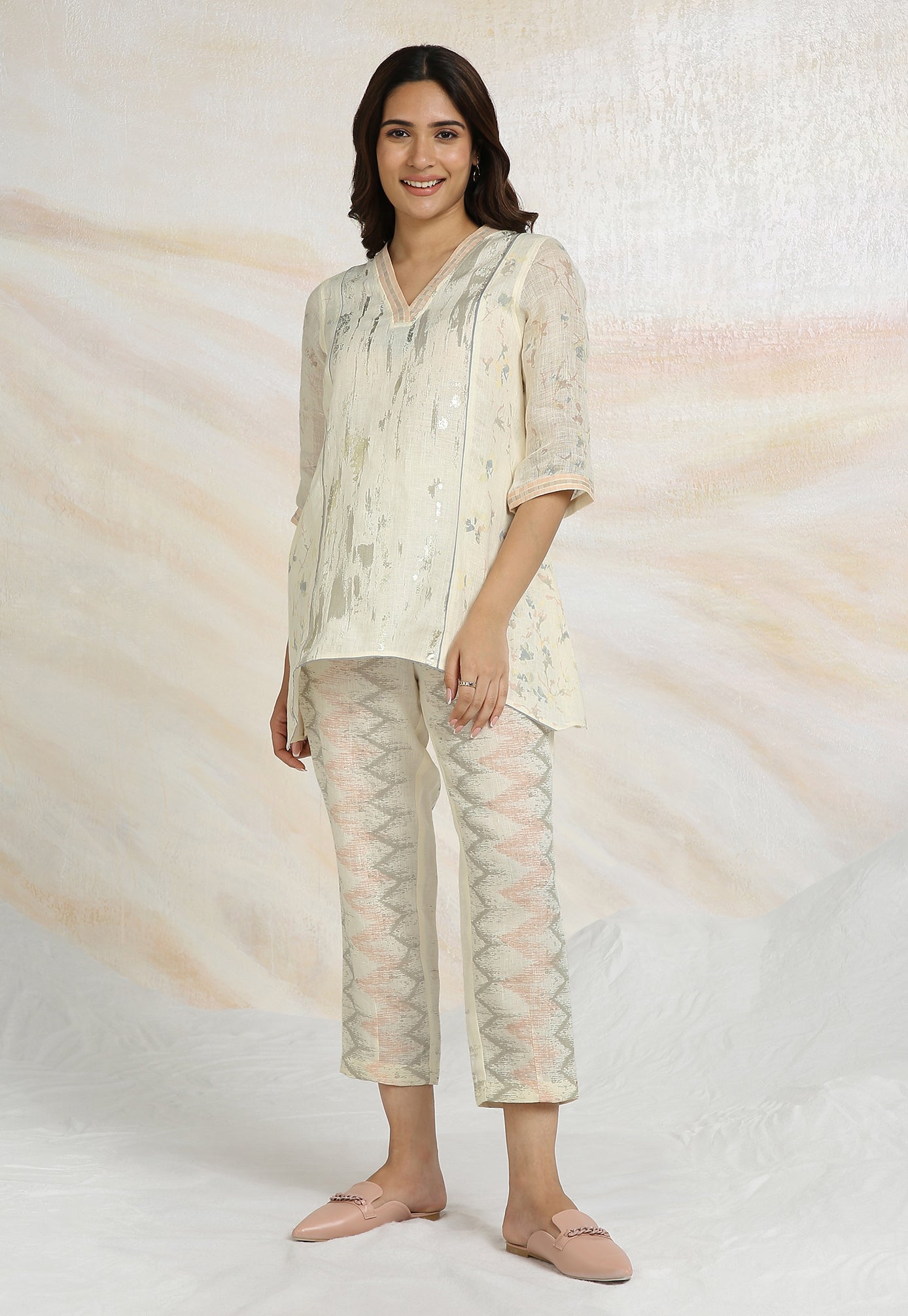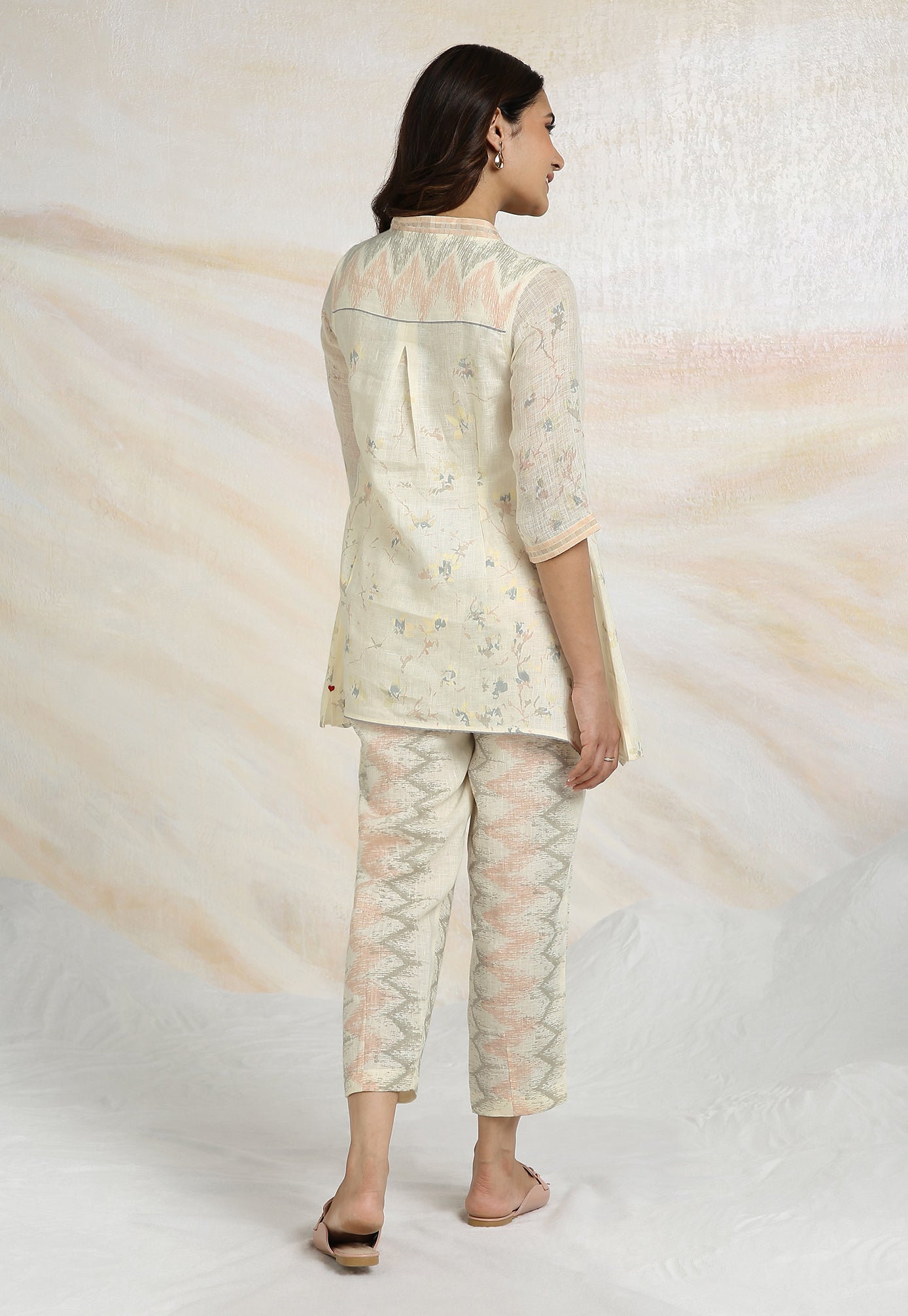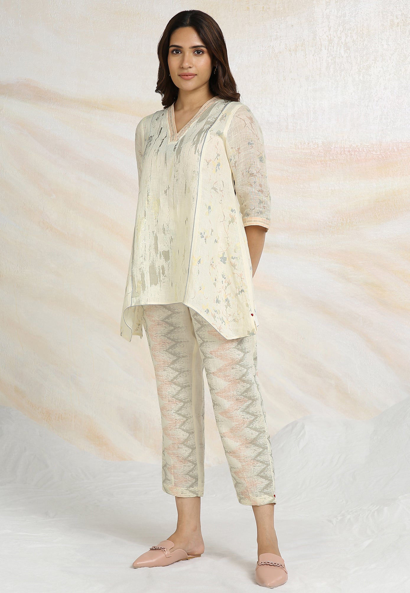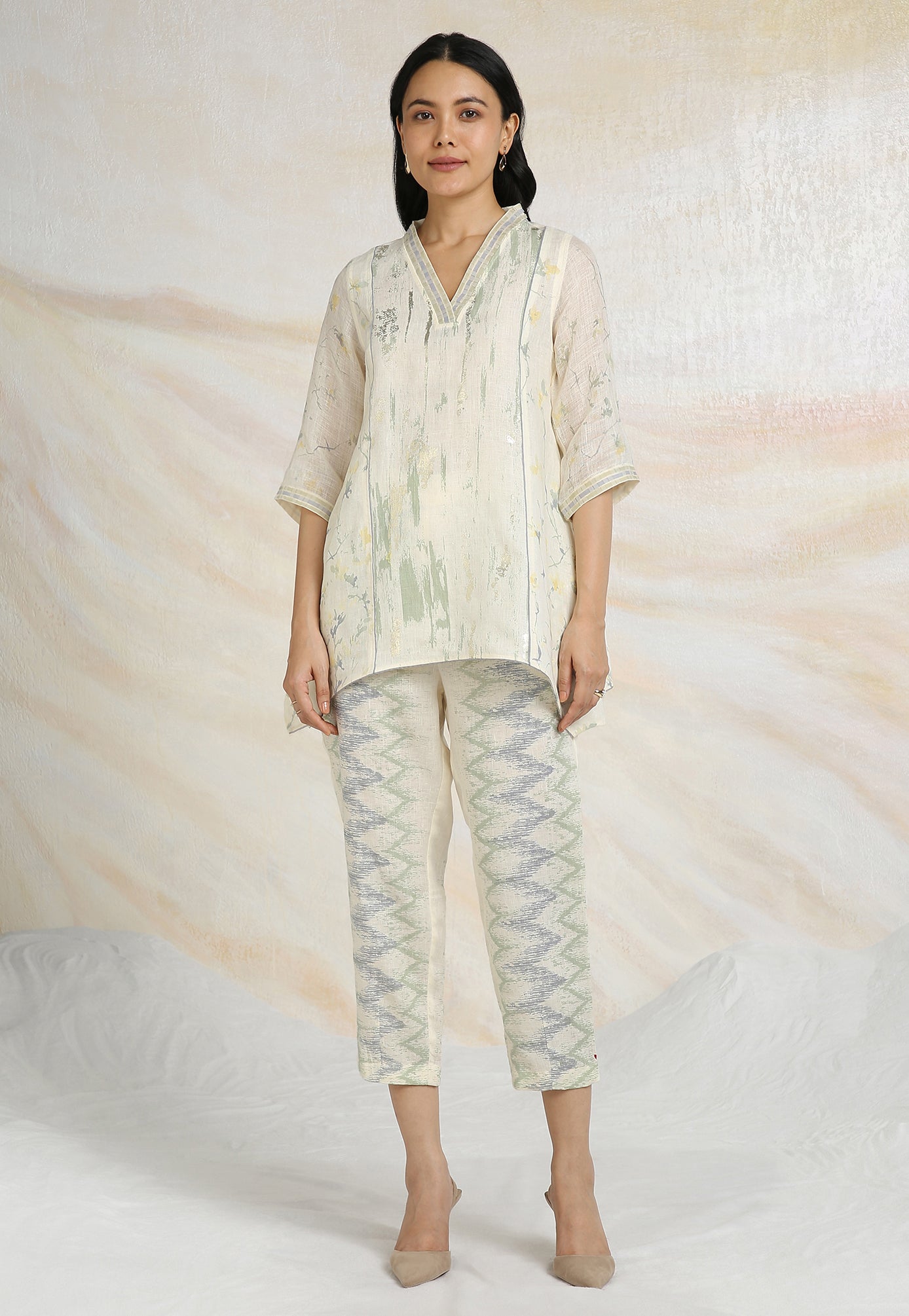 Immerse your senses into the ethereal splendour on fine linen with Samarkand- an enchanting range where each piece embraces dualistic views of screen-printed motifs from Uzbekistan alongside brushstrokes in gold with tiny floral detailing in between. Elevating the cuff and collar detailing to another level are fused organza strips- laser cut and immaculately woven by hand into the fabric to exude a dramatic checkered flair.