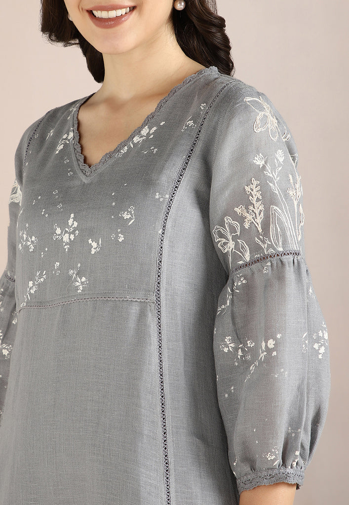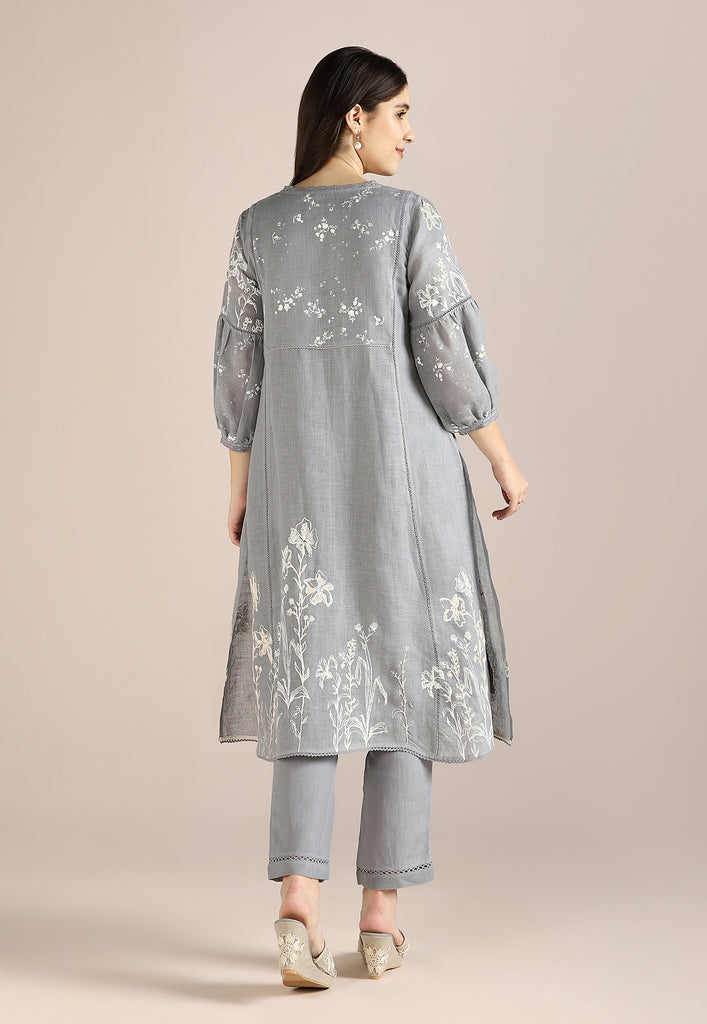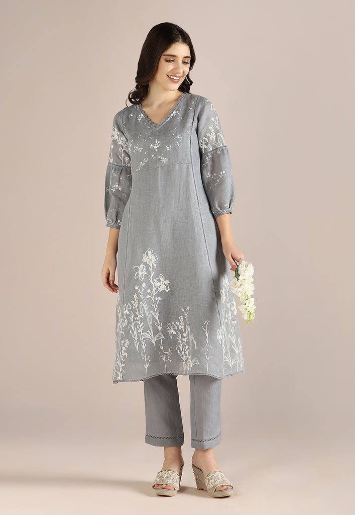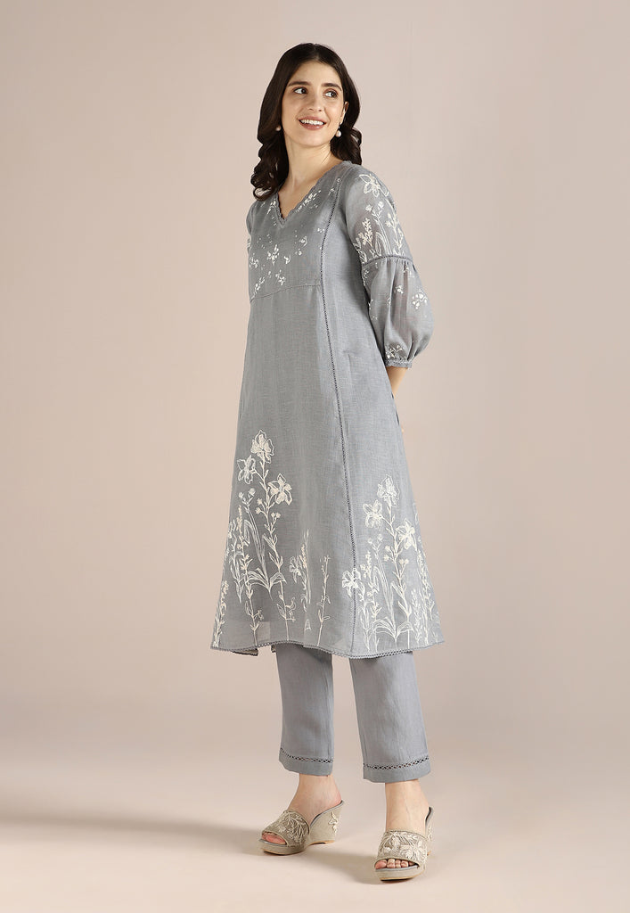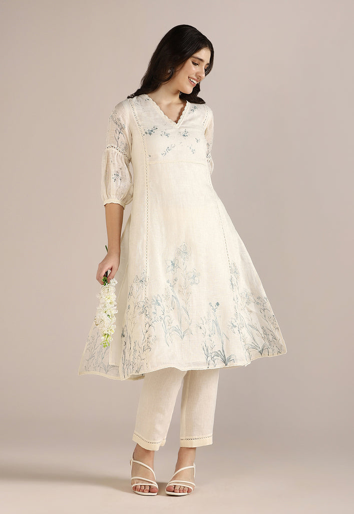 Embrace the sprawling grasslands and sunny pastures with the riveting tale of the Savanna: An exuberant range that boasts hand-drawn thin line strokes which spring to life with added depth using intricate anchor thread embroidery. Flaunting a Boho style approach, these exquisite pieces bear exaggerated sleeves, a collage of placement prints, and border prints; edged with pretty floral crochet laces to elevate your style with finesse and grace. Experience this gorgeous range in tantalising hues of shadow blue, off-white and blush.