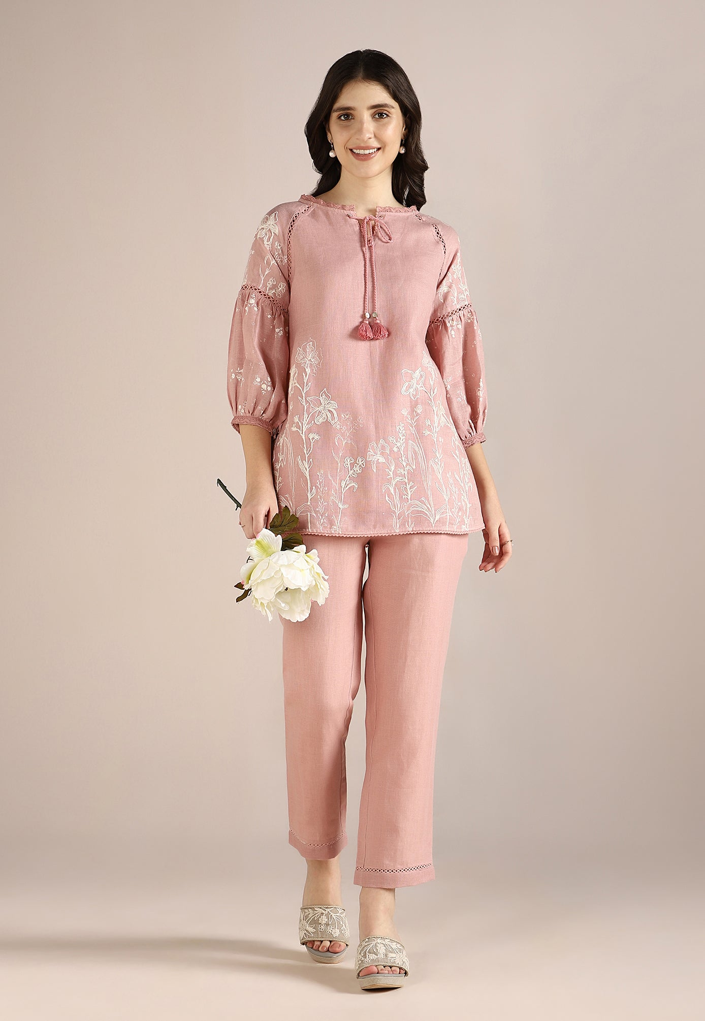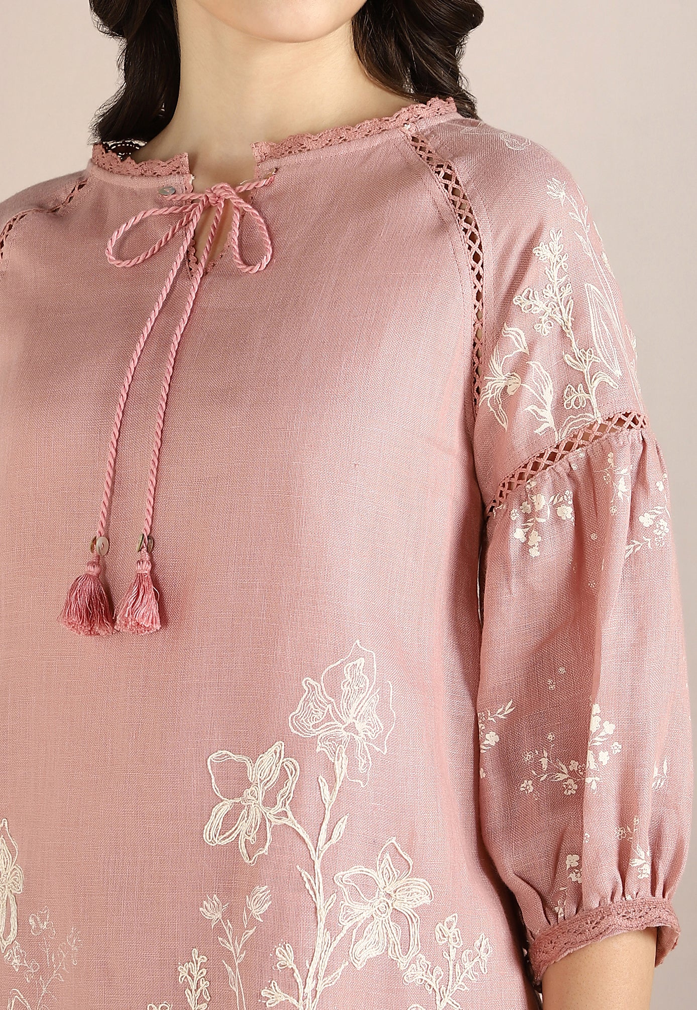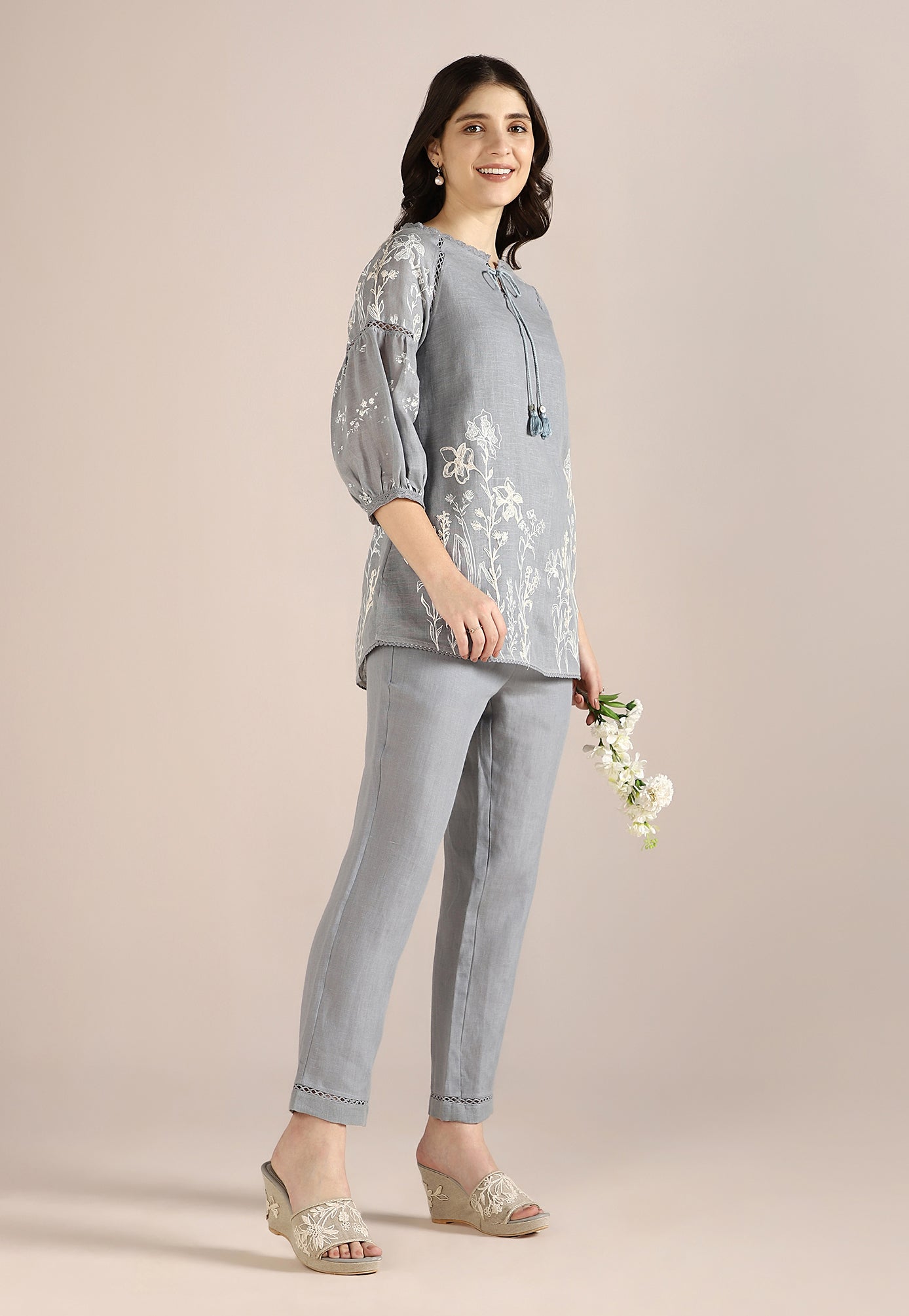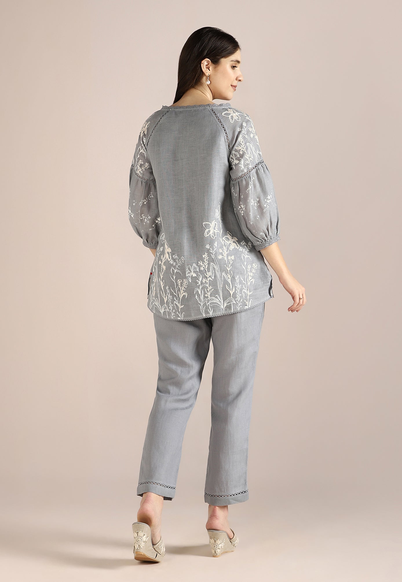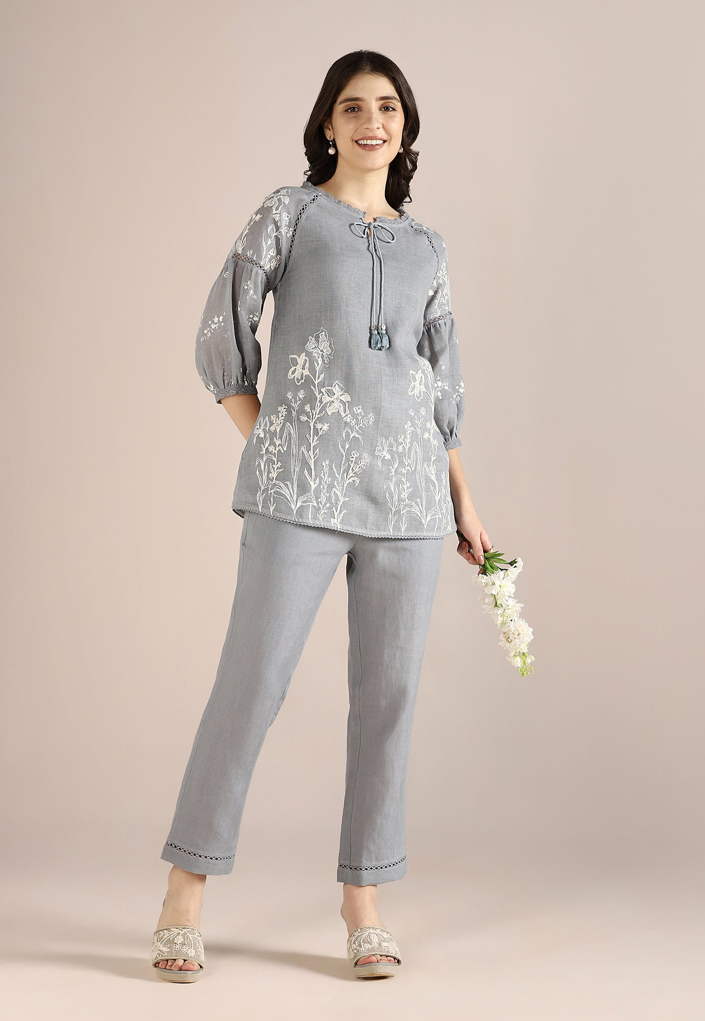 Embrace the sprawling grasslands and sunny pastures with the riveting tale of the Savanna: An exuberant range that boasts hand-drawn thin line strokes which spring to life with added depth using intricate anchor thread embroidery. Flaunting a Boho style approach, these exquisite pieces bear exaggerated sleeves, a collage of placement prints, and border prints; edged with pretty floral crochet laces to elevate your style with finesse and grace. Experience this gorgeous range in tantalising hues of shadow blue, off-white and blush.