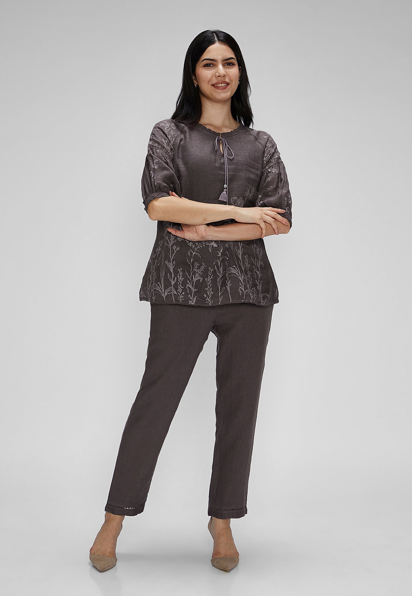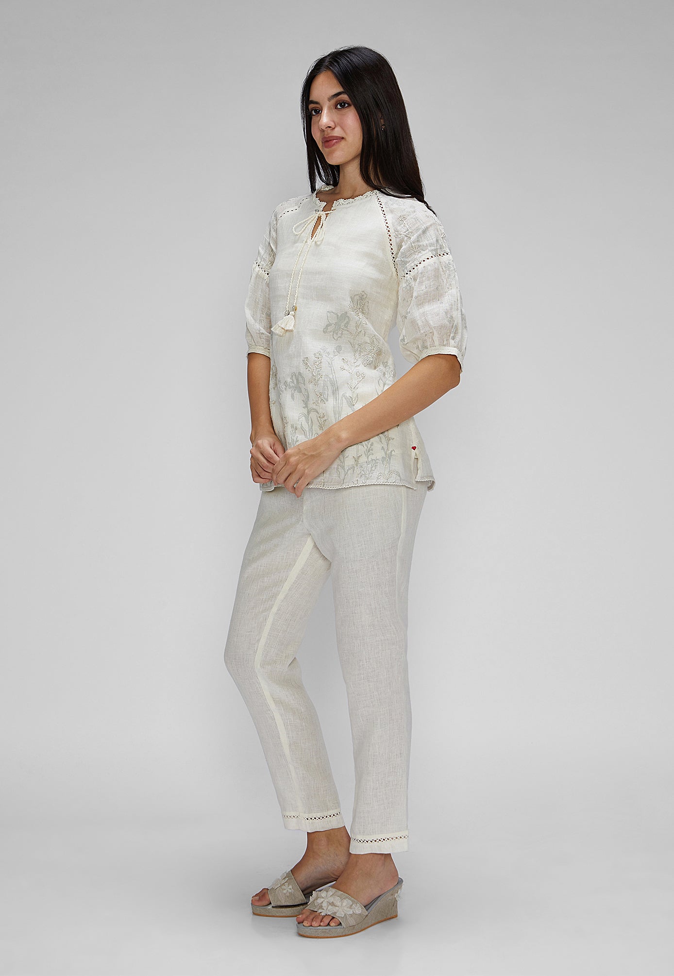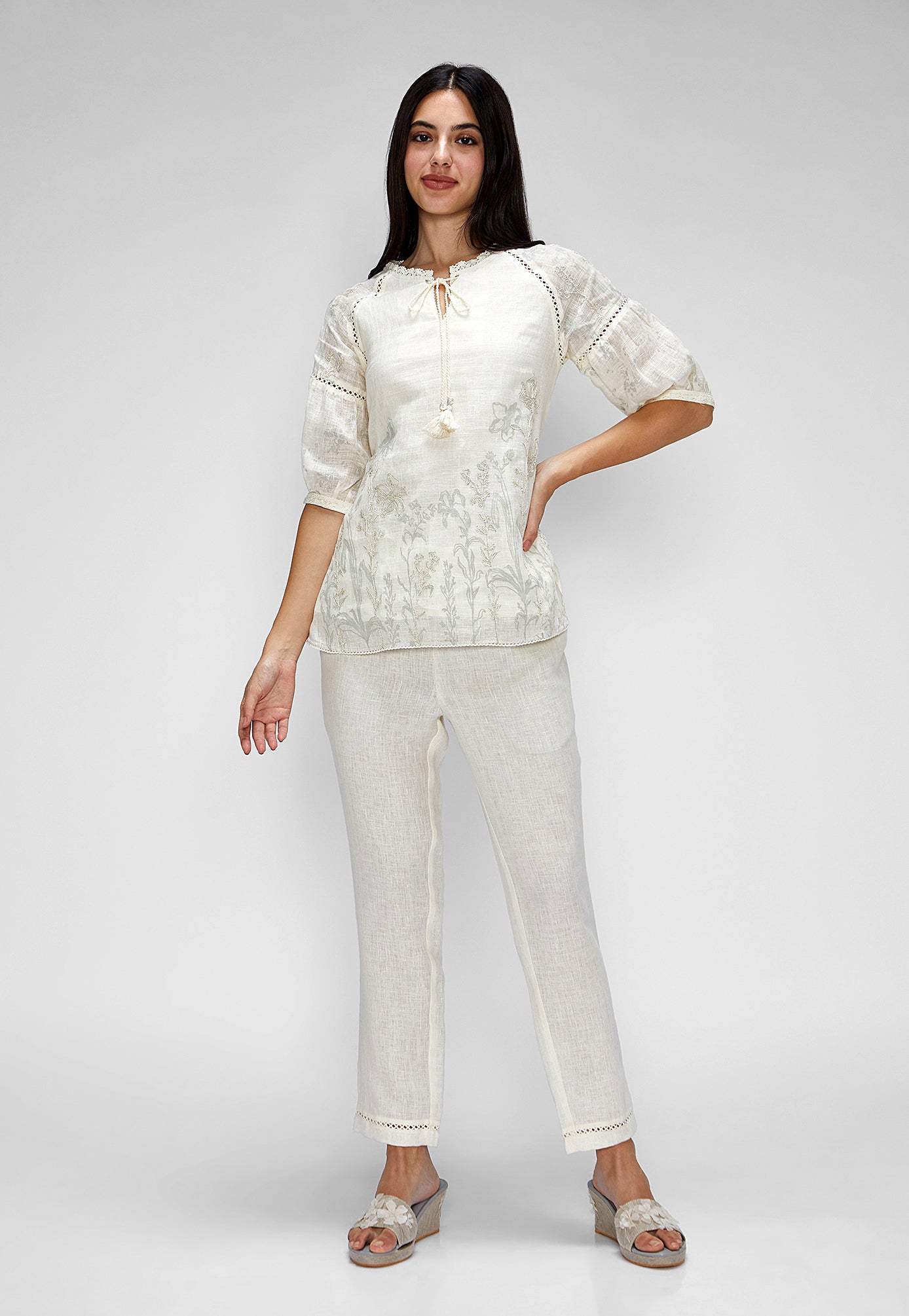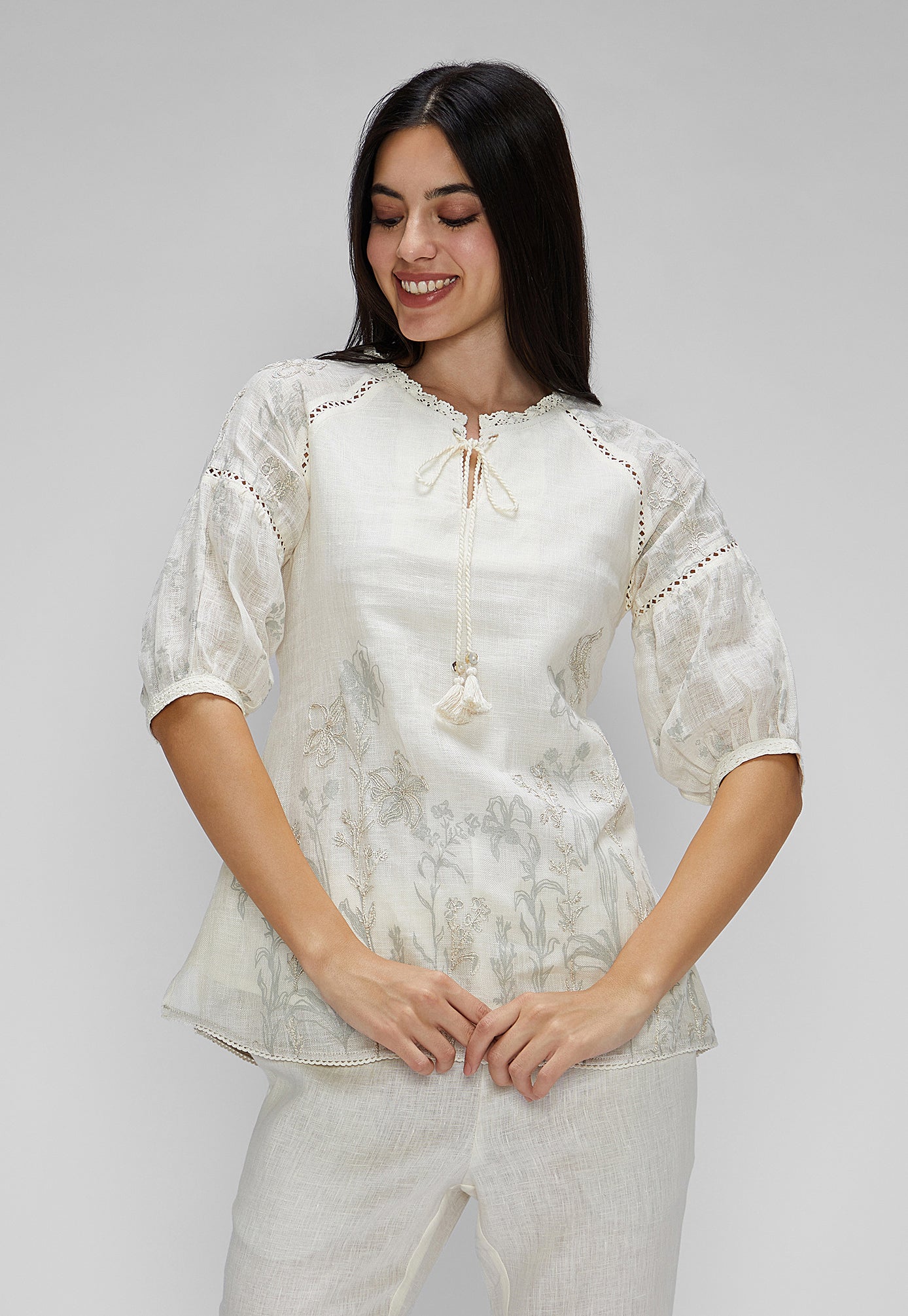 Embrace the sprawling grasslands and sunny pastures with the riveting tale of the Savanna: An exuberant range that boasts hand-drawn thin line strokes which spring to life with added depth using intricate anchor thread embroidery. Flaunting a Boho style approach, these exquisite pieces bear exaggerated sleeves, a collage of placement prints, and border prints; edged with pretty floral crochet laces to elevate your style with finesse and grace. Experience this gorgeous range in tantalising hues of shadow blue, off-white and blush.