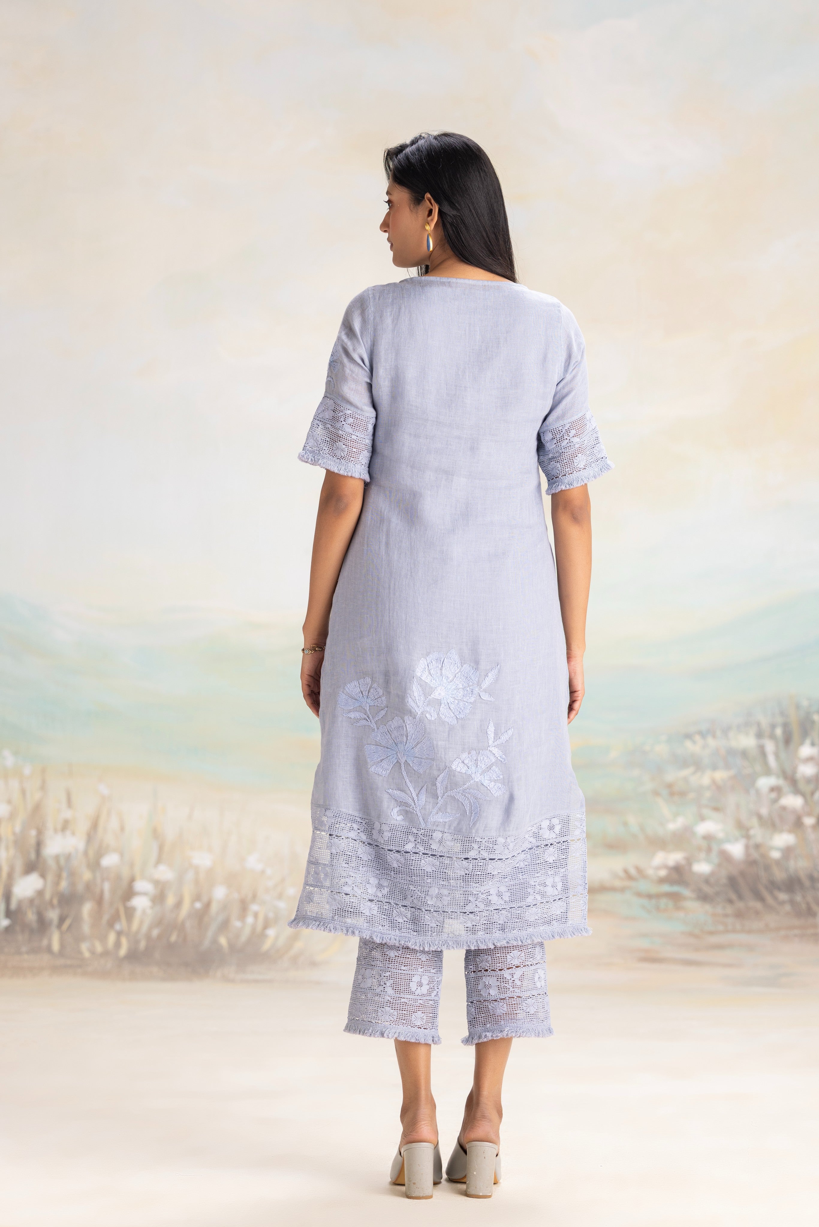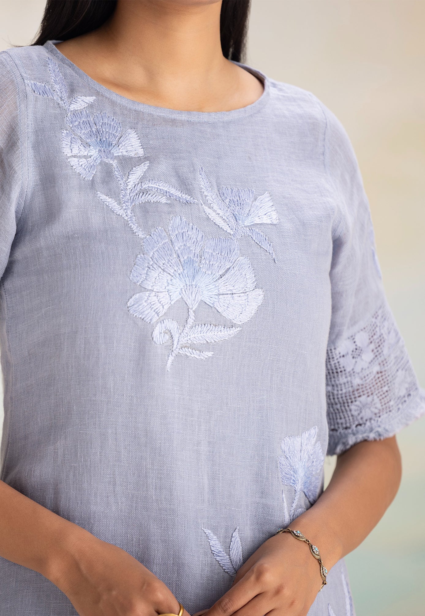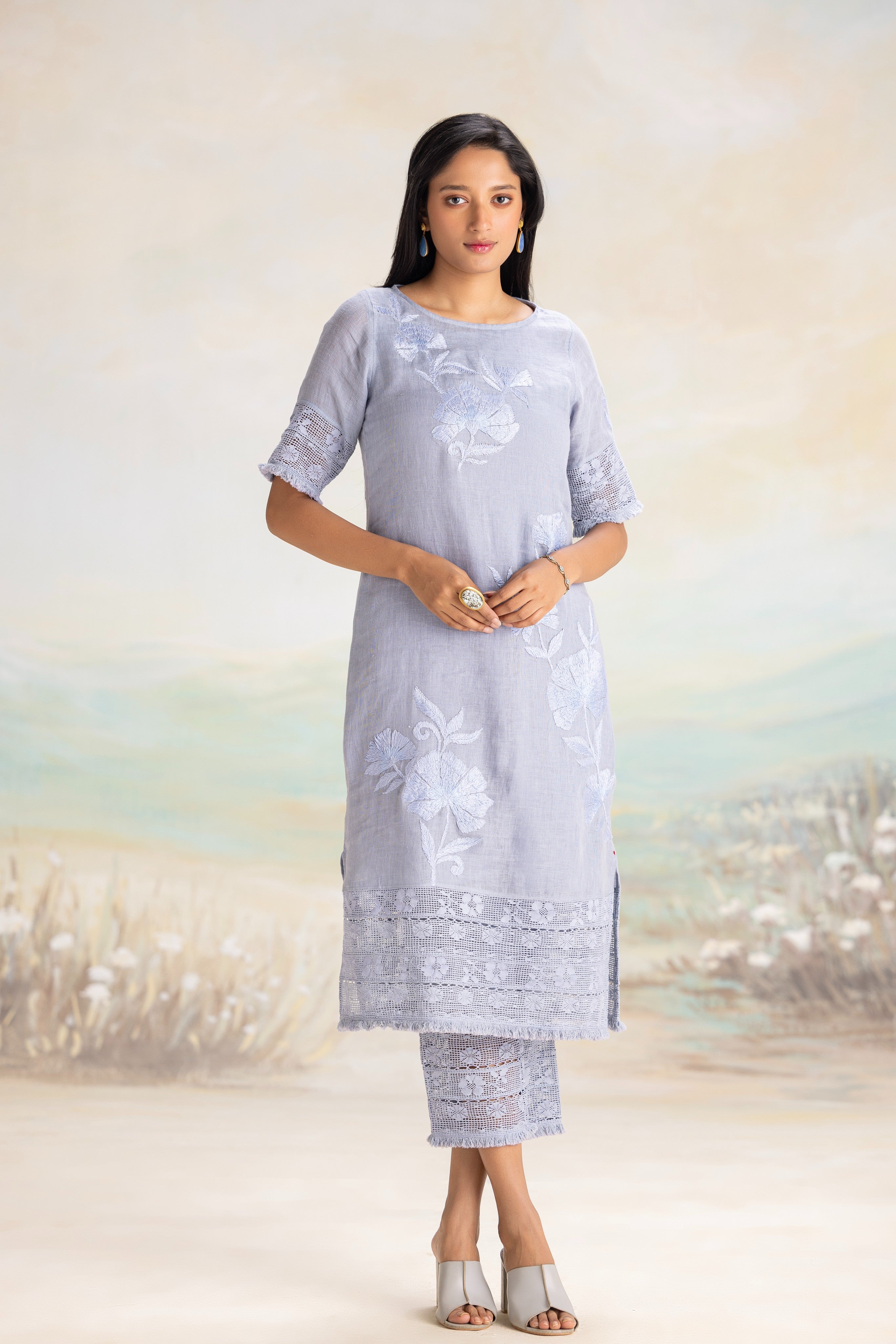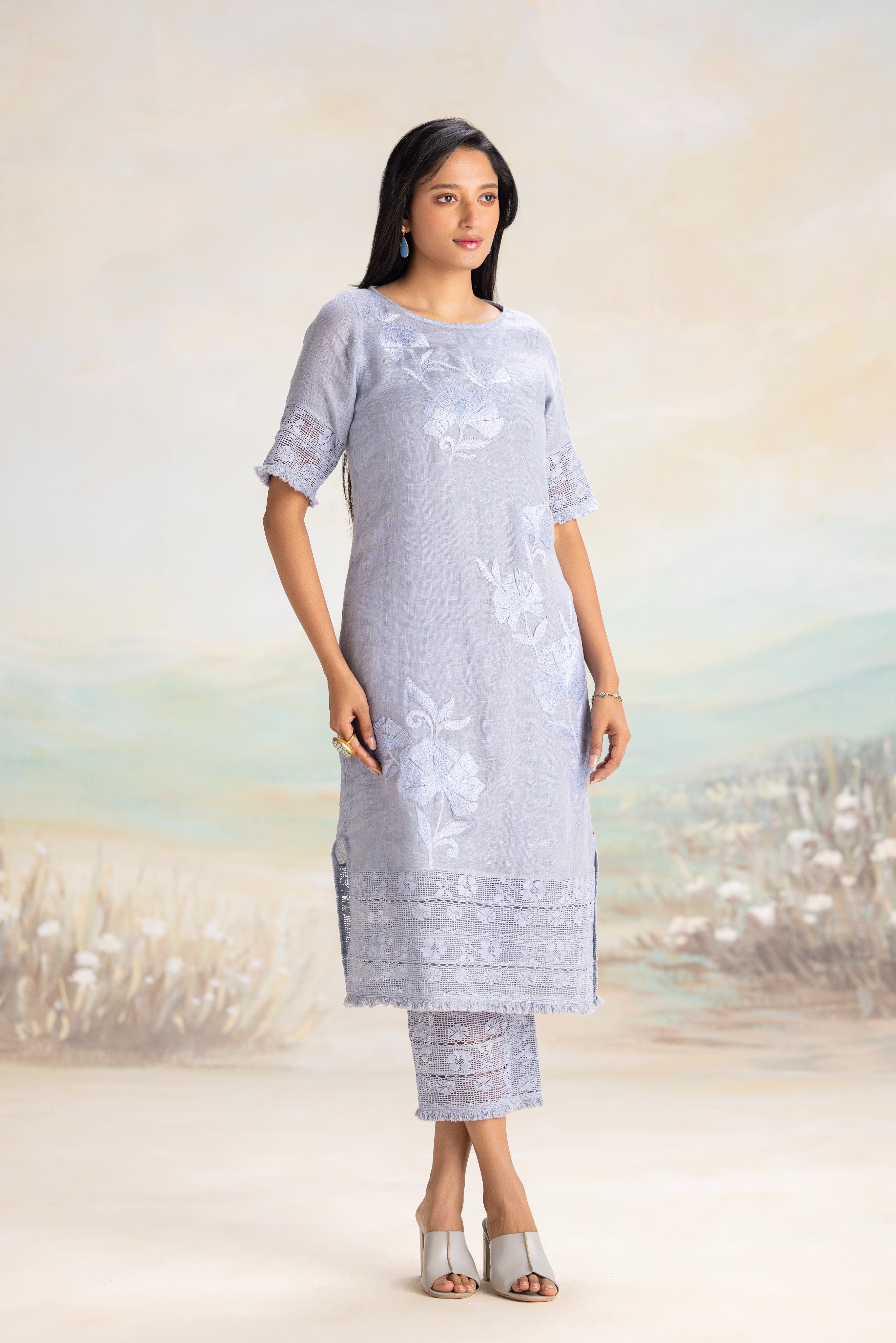 Step into the season with effortless grace in Snow Flower - a stunning collection inspired by the ethereal yet resilient White Crocus. Designed for tranquil moments under the sun for your next getaway, each piece is handcrafted from light weight breathable linen fabric, hand-embroidered with tone-on-tone placement embroidery- pervading seamlessly along the body of the fabric. A stylish testament to exquisite craftsmanship and breezy sophistication.