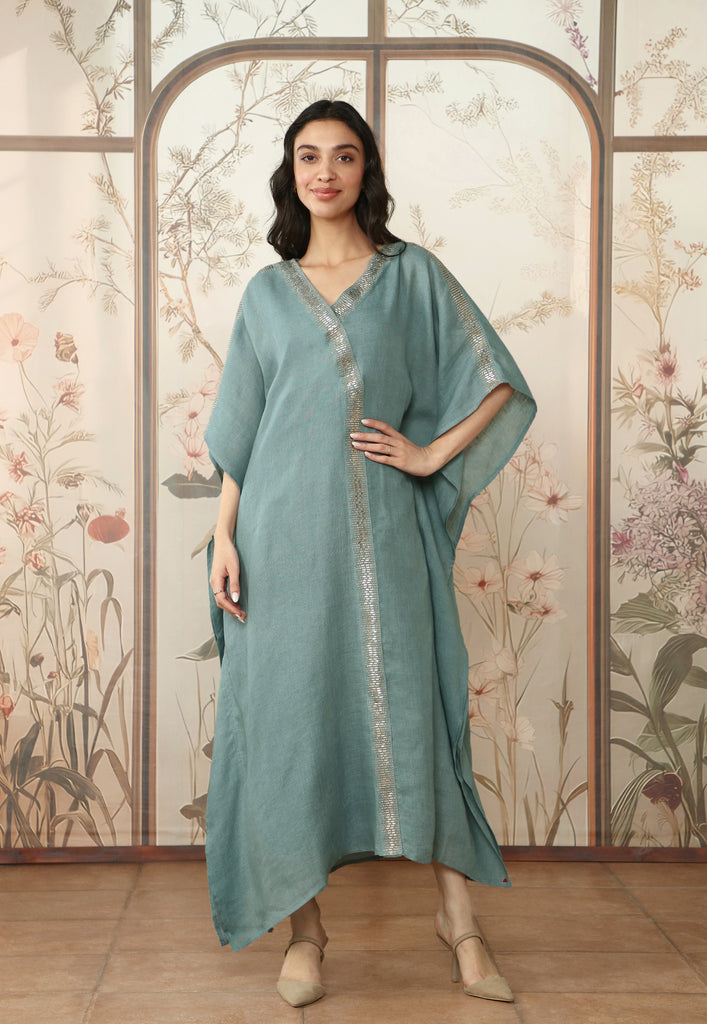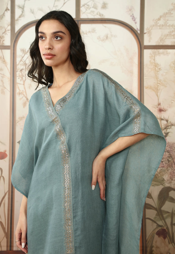 • A free-flowing boxy kaftan draping beautifully over the body, exuding elegance and comfort