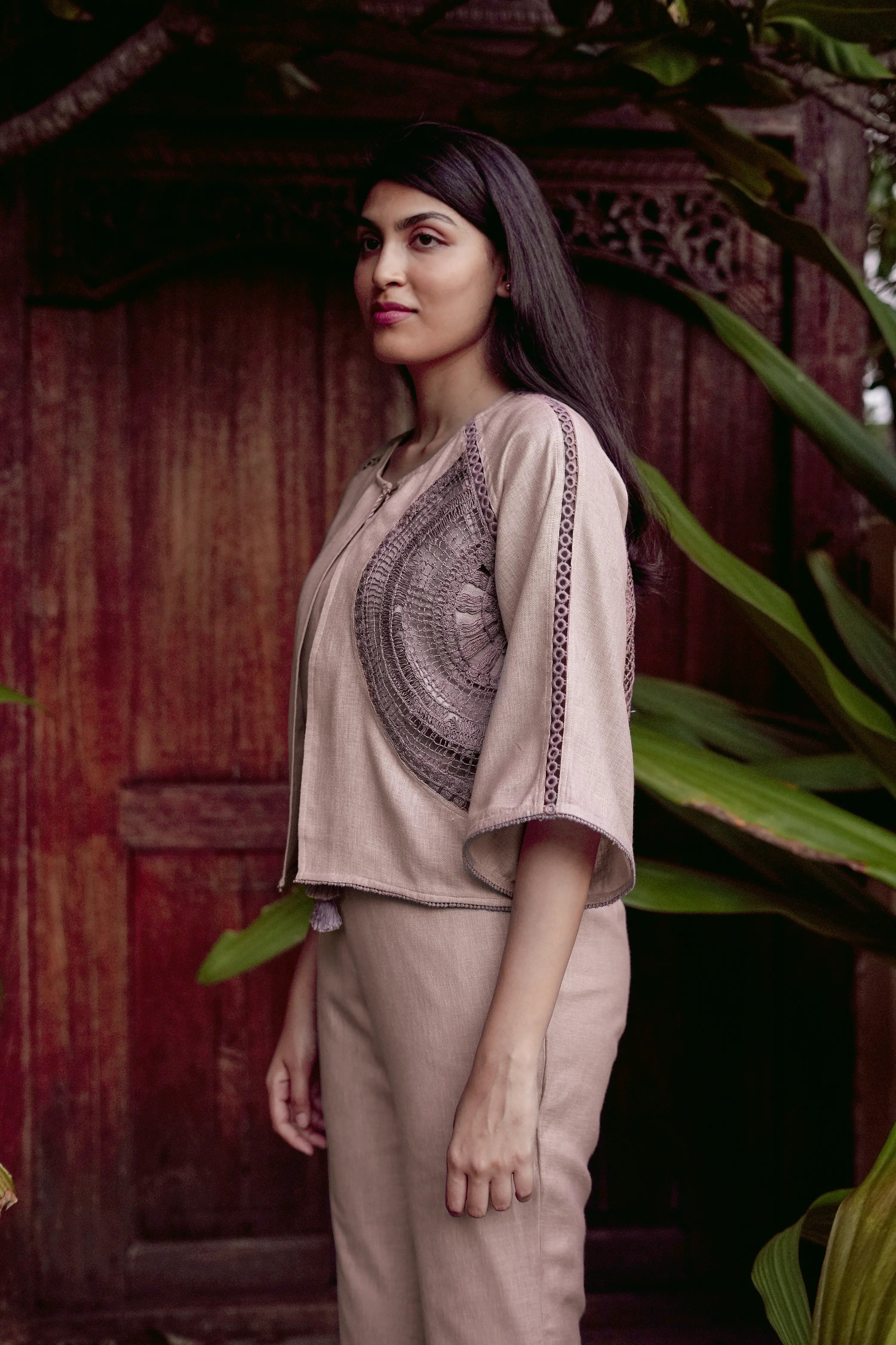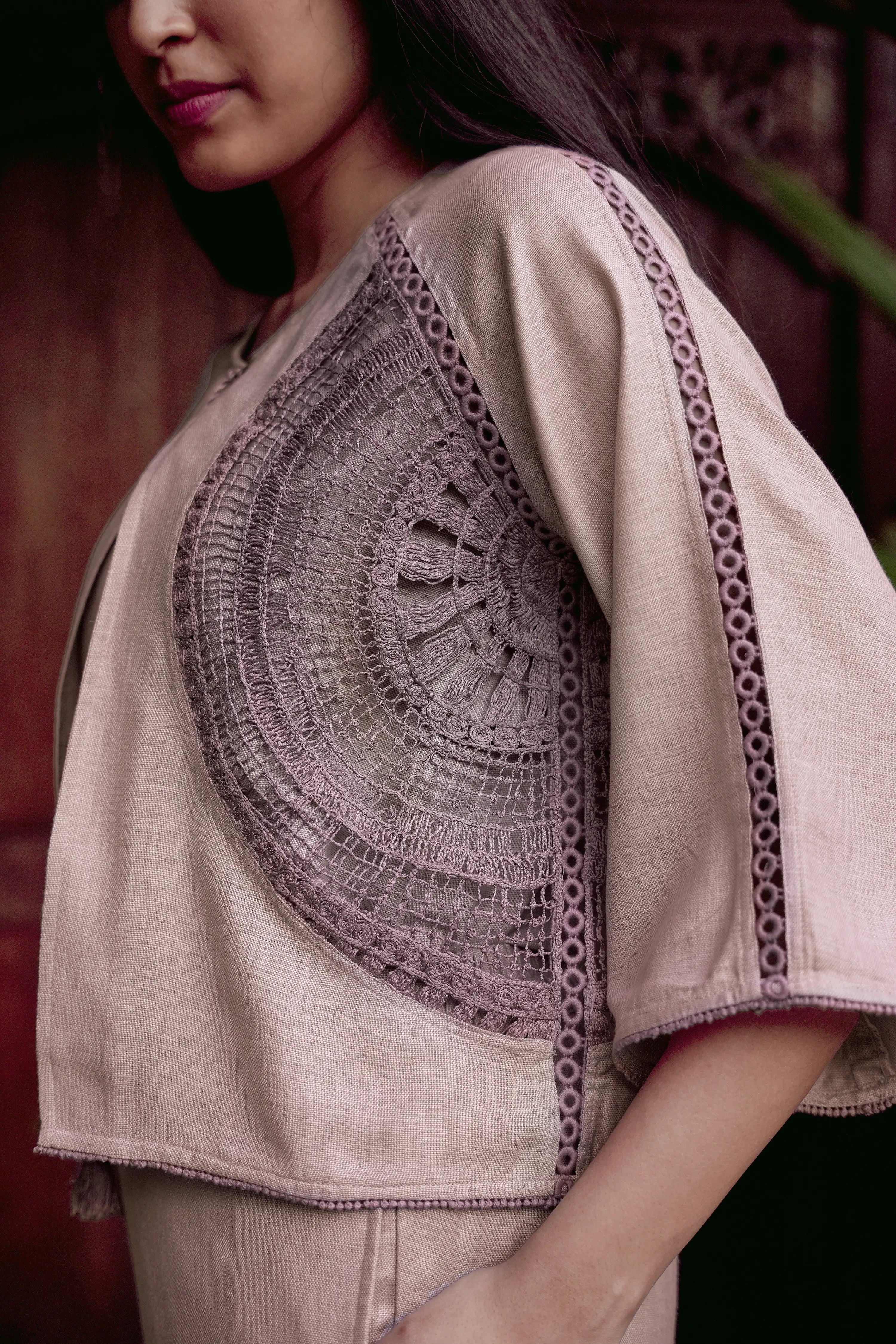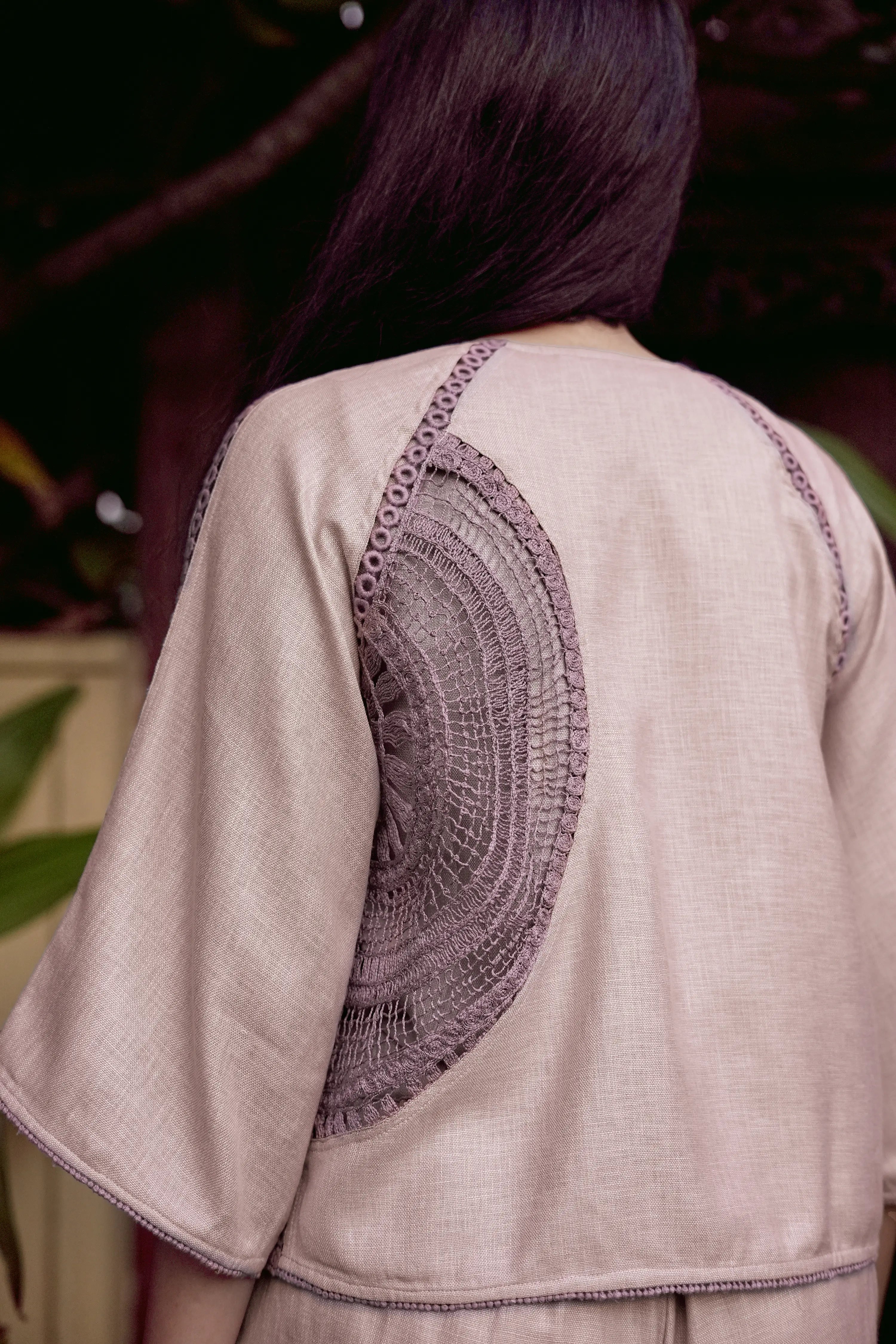 Summer Threads is a quiet celebration of craftsmanship, where elegance is expressed through the simplest of gestures. At its heart, a single thread journeys gracefully across each garment, forming abstract, symmetrical patterns that feel both thoughtful and poetic. Delicately handcrafted crochet accents trace the neckline and cuffs, adding texture and refinement without overwhelming the silhouette. Rendered in soft, sophisticated hues of Smoke and Mauve, the palette enhances the collection’s understated charm. Each piece is designed to feel light yet considered, balancing structure with fluidity. Timeless, distinctive, and effortlessly refined, Summer Threads is a rare expression of modern elegance — subtle in detail, yet quietly unforgettable.