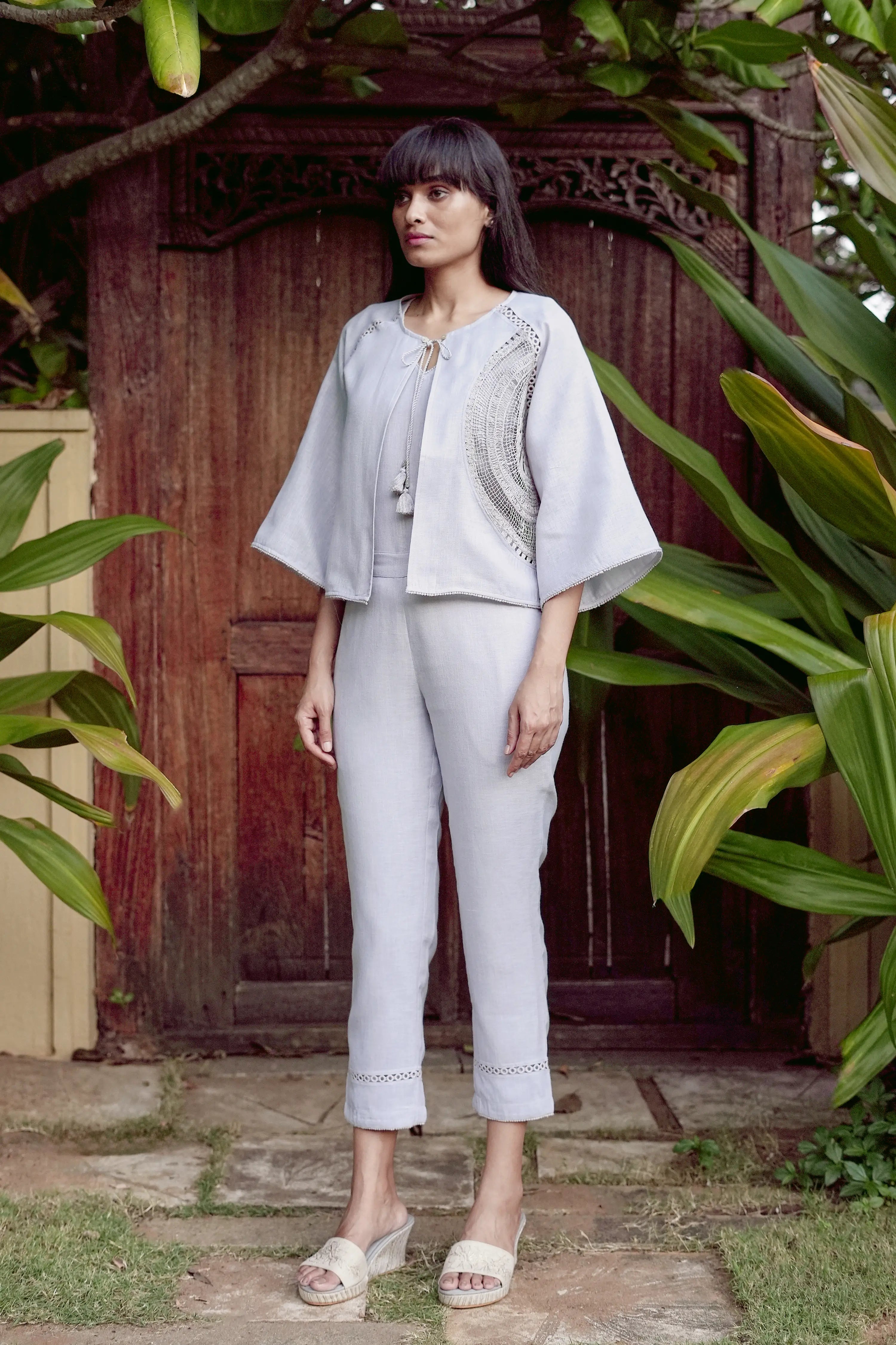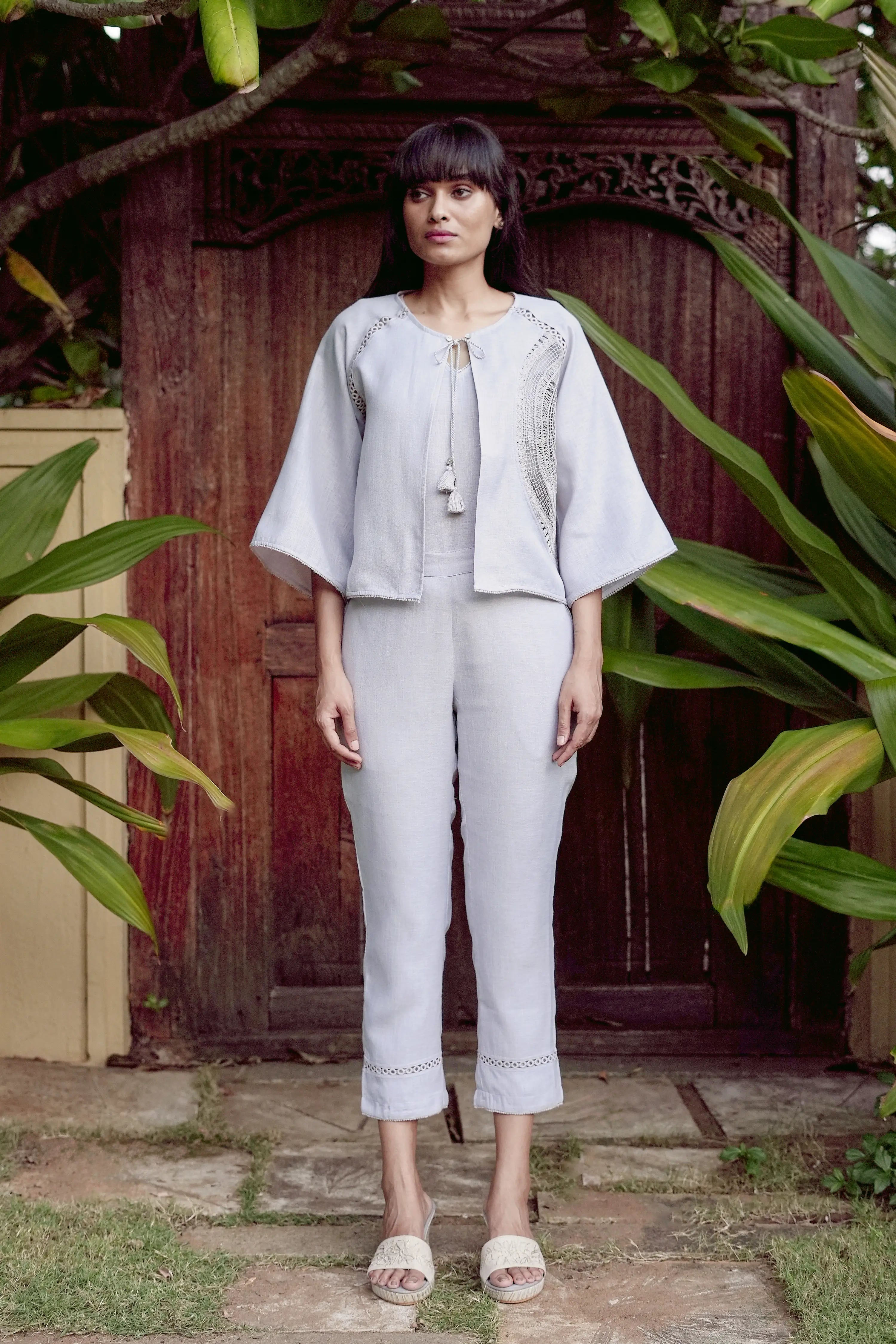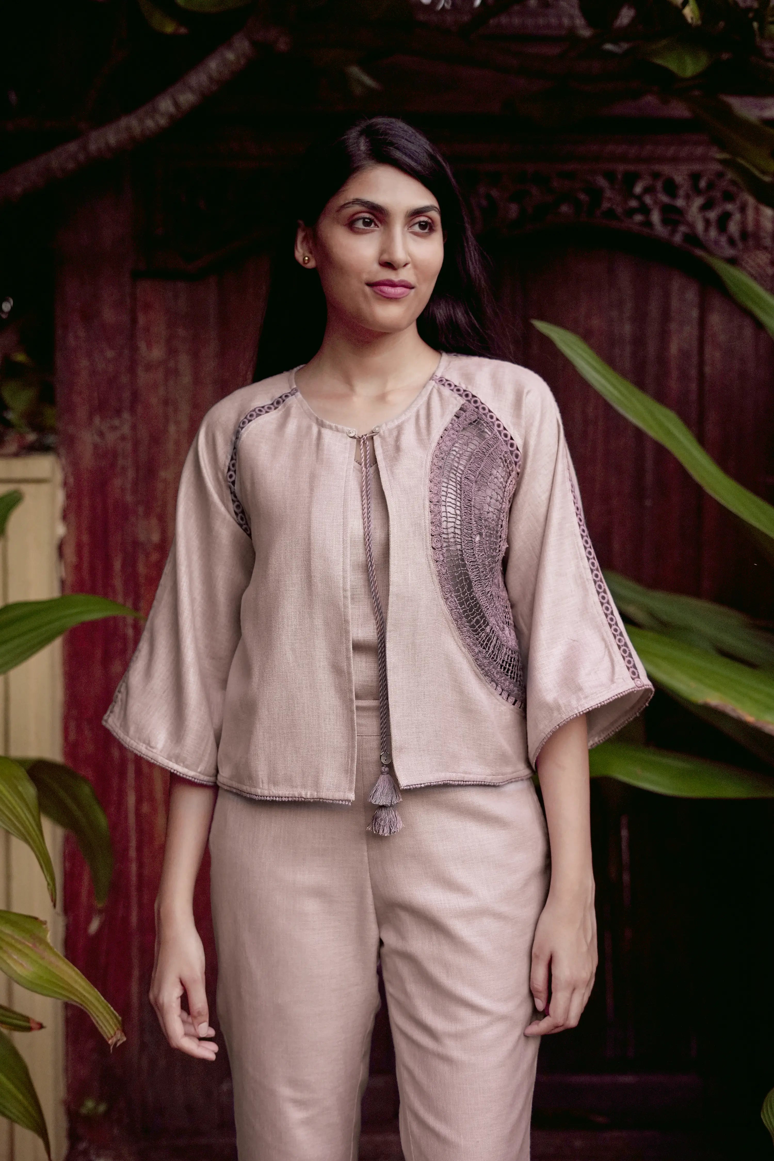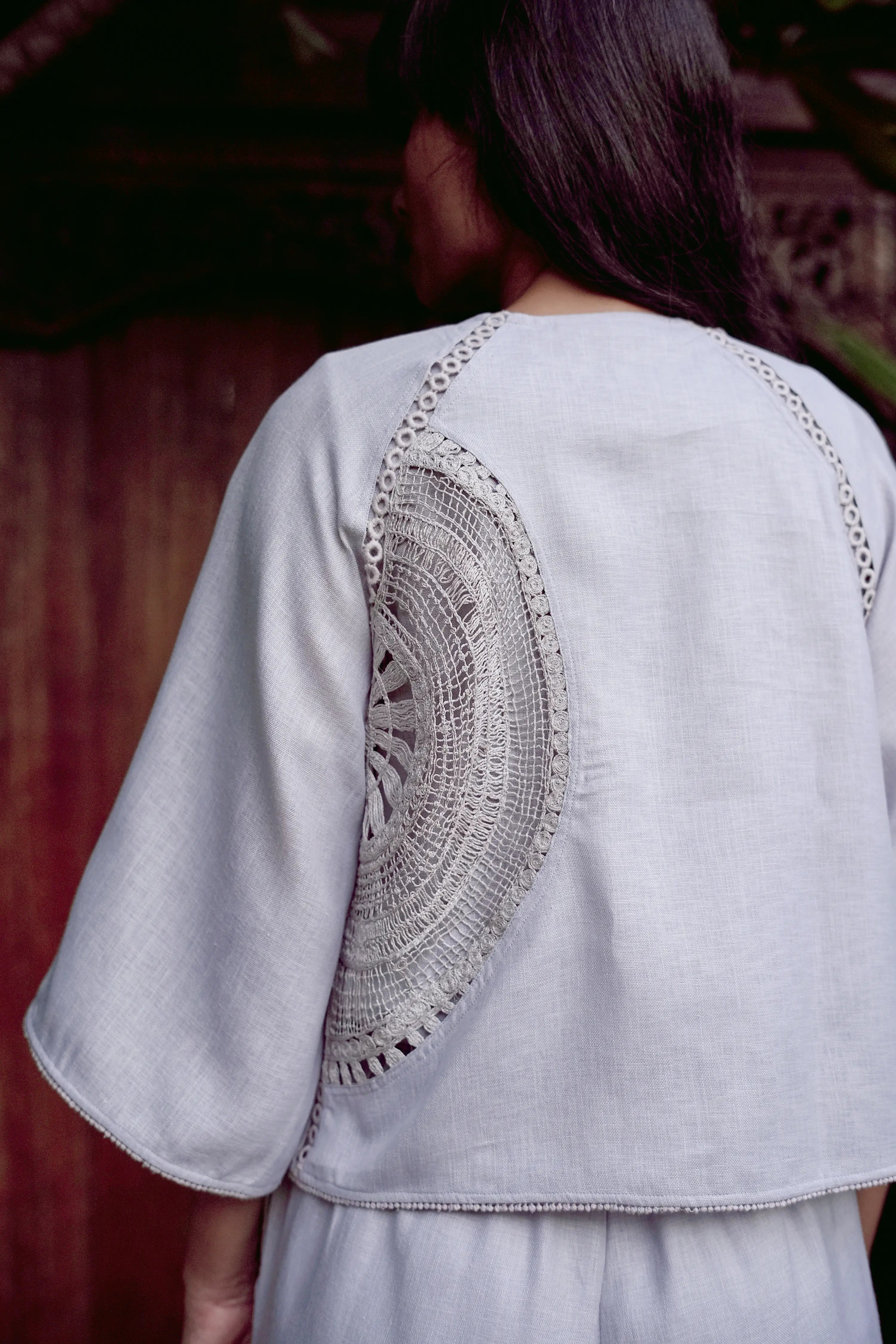 Summer Threads is a quiet celebration of craftsmanship, where elegance is expressed through the simplest of gestures. At its heart, a single thread journeys gracefully across each garment, forming abstract, symmetrical patterns that feel both thoughtful and poetic. Delicately handcrafted crochet accents trace the neckline and cuffs, adding texture and refinement without overwhelming the silhouette. Rendered in soft, sophisticated hues of Smoke and Mauve, the palette enhances the collection’s understated charm. Each piece is designed to feel light yet considered, balancing structure with fluidity. Timeless, distinctive, and effortlessly refined, Summer Threads is a rare expression of modern elegance — subtle in detail, yet quietly unforgettable.