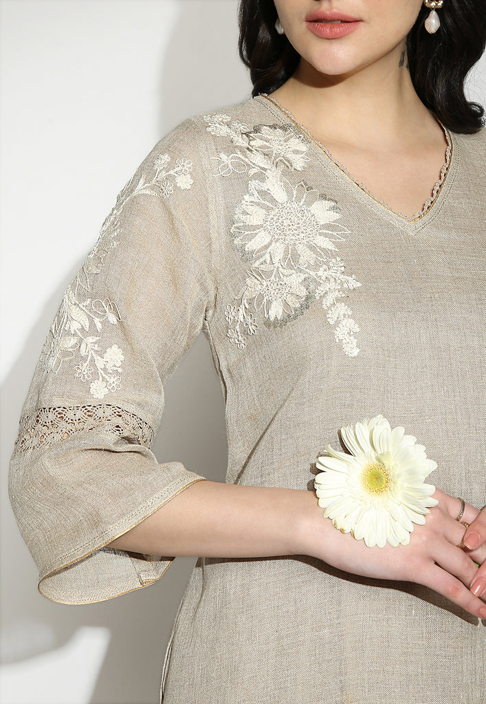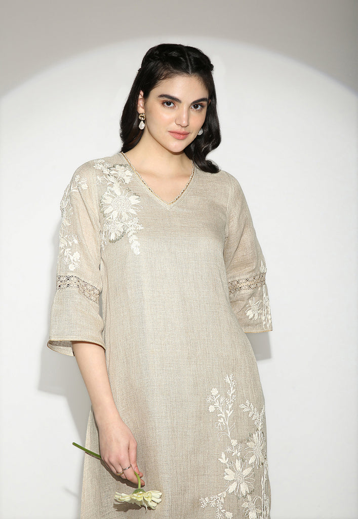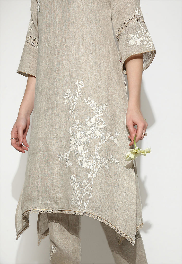 Remarkable pieces of free-flowing grace on noble linen. Available in three breathtaking hues of Natural, Sage and Blush.